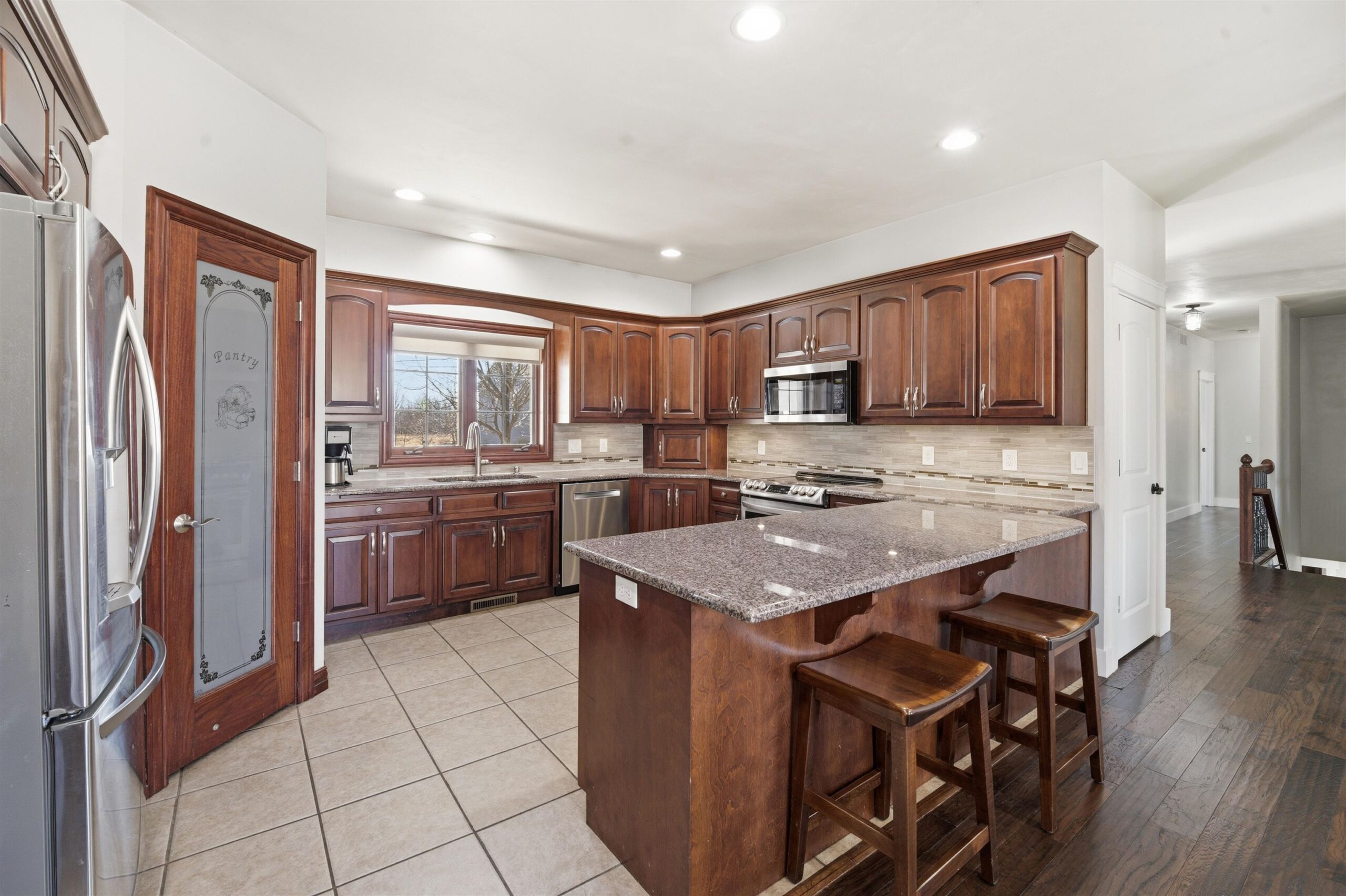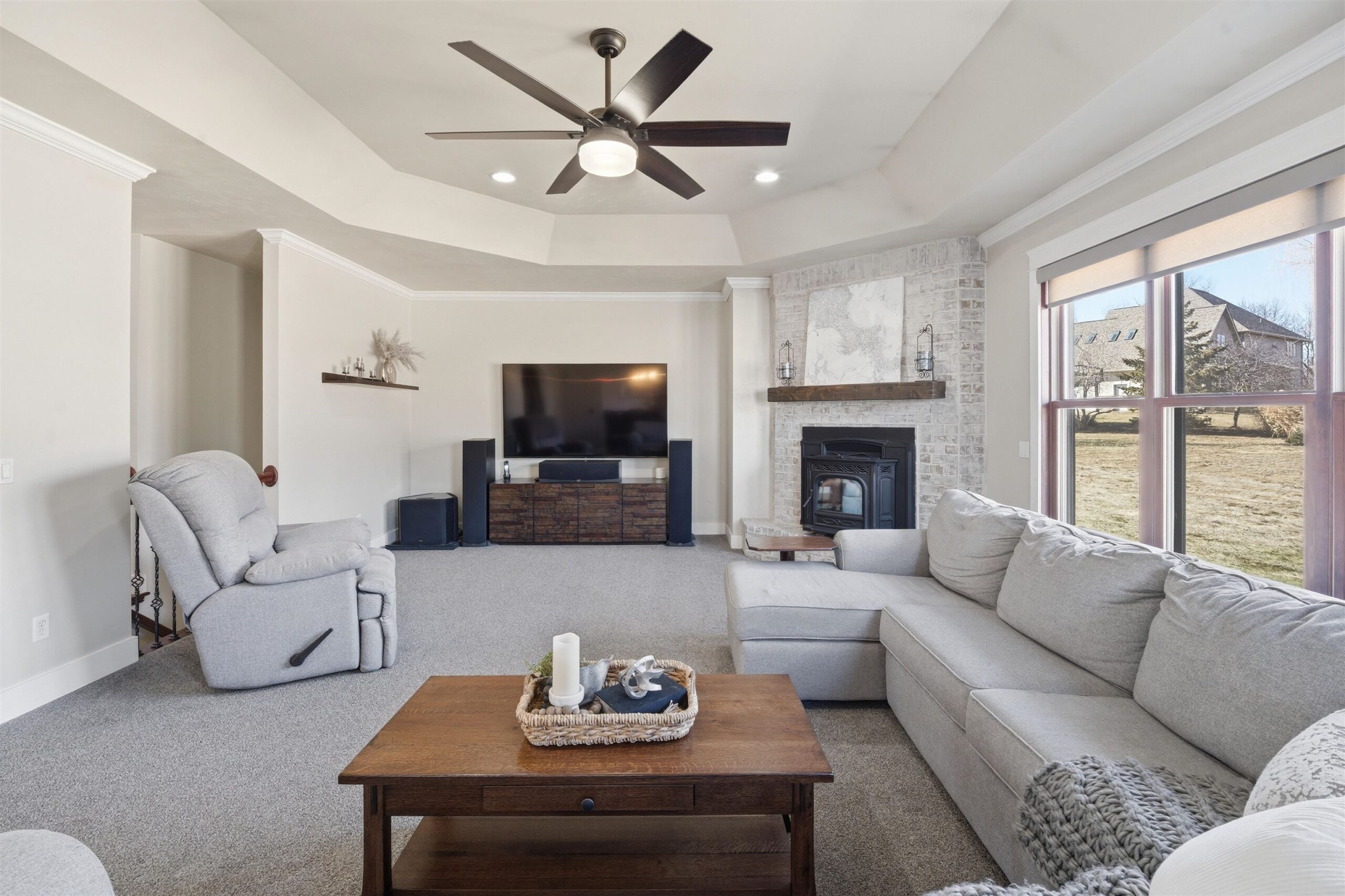 Spacious executive split-bedroom ranch on a beautifully landscaped 0.73± acre lot in coveted Warner Estates. Oversized covered porch & front patio welcome you to a light, bright main-level plan w/foyer open to home office, wood floors flow to arch doorway GR w/abundant windows & anchored by decorative pellet-stove FP. Chef’s kitchen offers extensive cabinetry, SS appliances, walk-in pantry, & breakfast bar that open to sunny DA w/glass doors to stamped patio. primary suite has tray ceiling, dual vanities, jetted tub, walk-in shower & walk-n closet. Mudroom w/lockers, laundry, & ½ bath. LL includes 4th bdrm, 3rd bath, oversized FR w/dry bar, flex space, ample storage &interior stairs to a finished 4-car garage & a 1/2 basketball court. This home is the ultimate retreat!