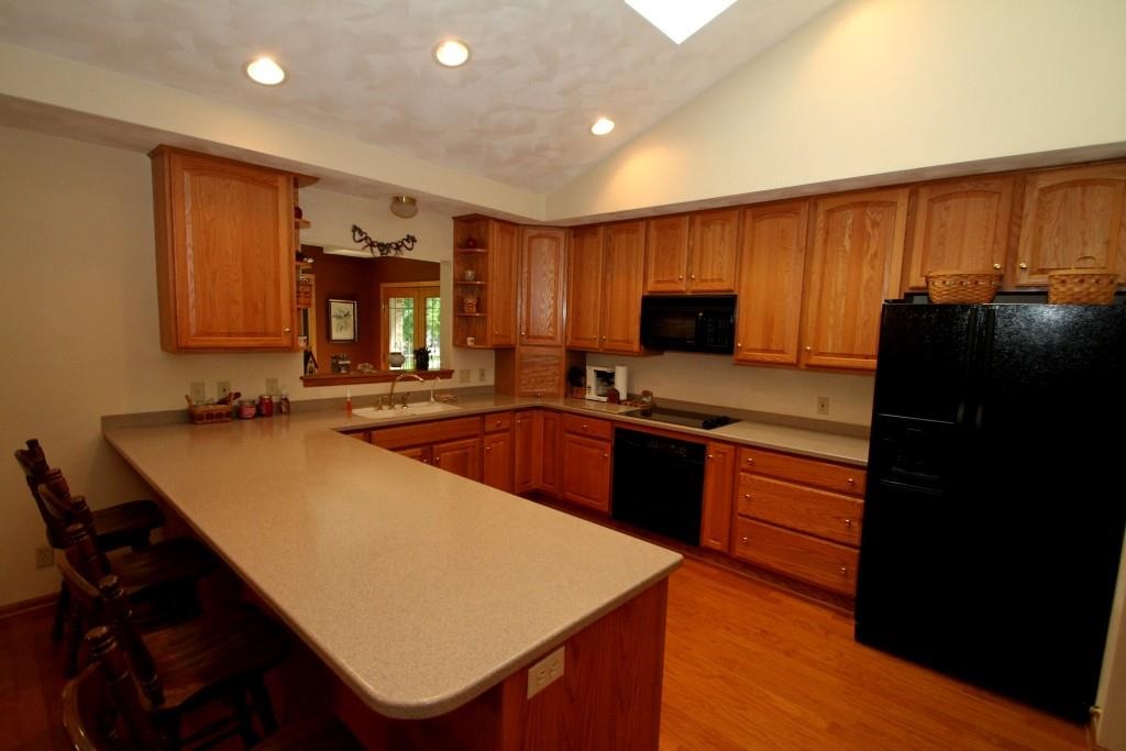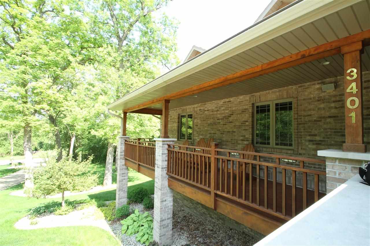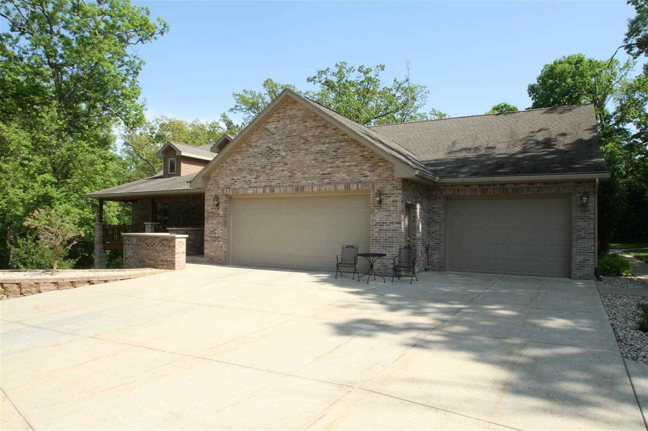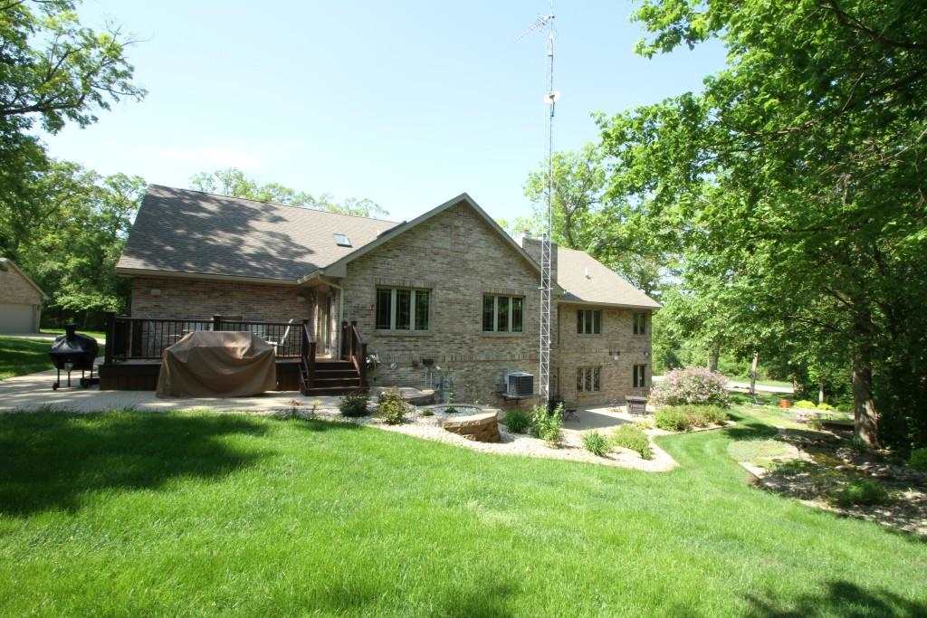 Beautiful all brick home nestled on 3 + private acres adjacent to city park land. This home has much to offer - Open floor plan, Large Oak kitchen with solid surface counter. Spacious sunroom overlooking deck and private yard with waterfall & pond. Master suite w/ bath & WIC. Skylights through out. Lower level boast second fireplace, 2nd Hickory kitchen w/ island 4th BR & sauna. In floor heating in lower level. Attached 4 car heated gar & detached heated 2 car. Private patio and maintenance free deck