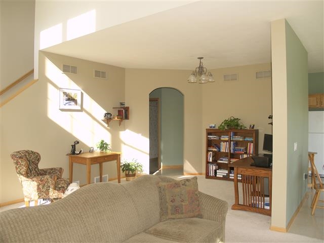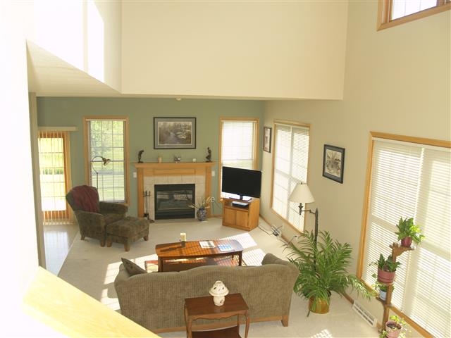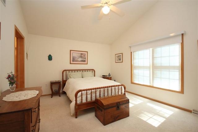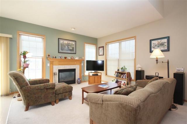 Sun-filled south facing townhouse condo overlooking Country Grove Park. Abundant oak cabinentry in eat-in kitchen with sliding doors to patio. Large living room with gas fireplace. Formal Dining area is presently being used as office. Upper level offers 2 bedrooms and 2 baths. Master has vaulted ceiling/decorative shelf. Bath has double sink vanity and walk-in closet. Main floor laundry. Direct access from 2 car garage. Full unfinished basement. Near shopping, busline and bike path. UHP Warranty