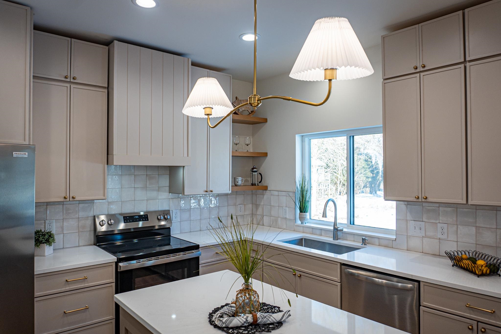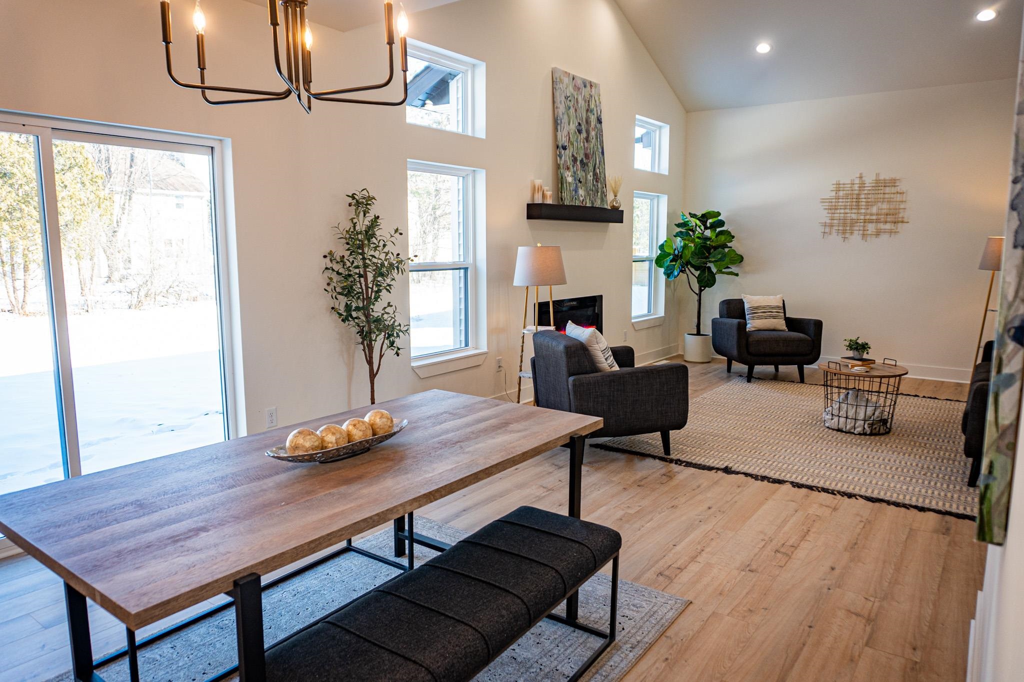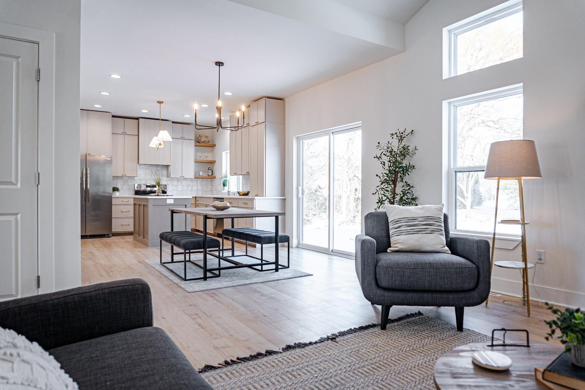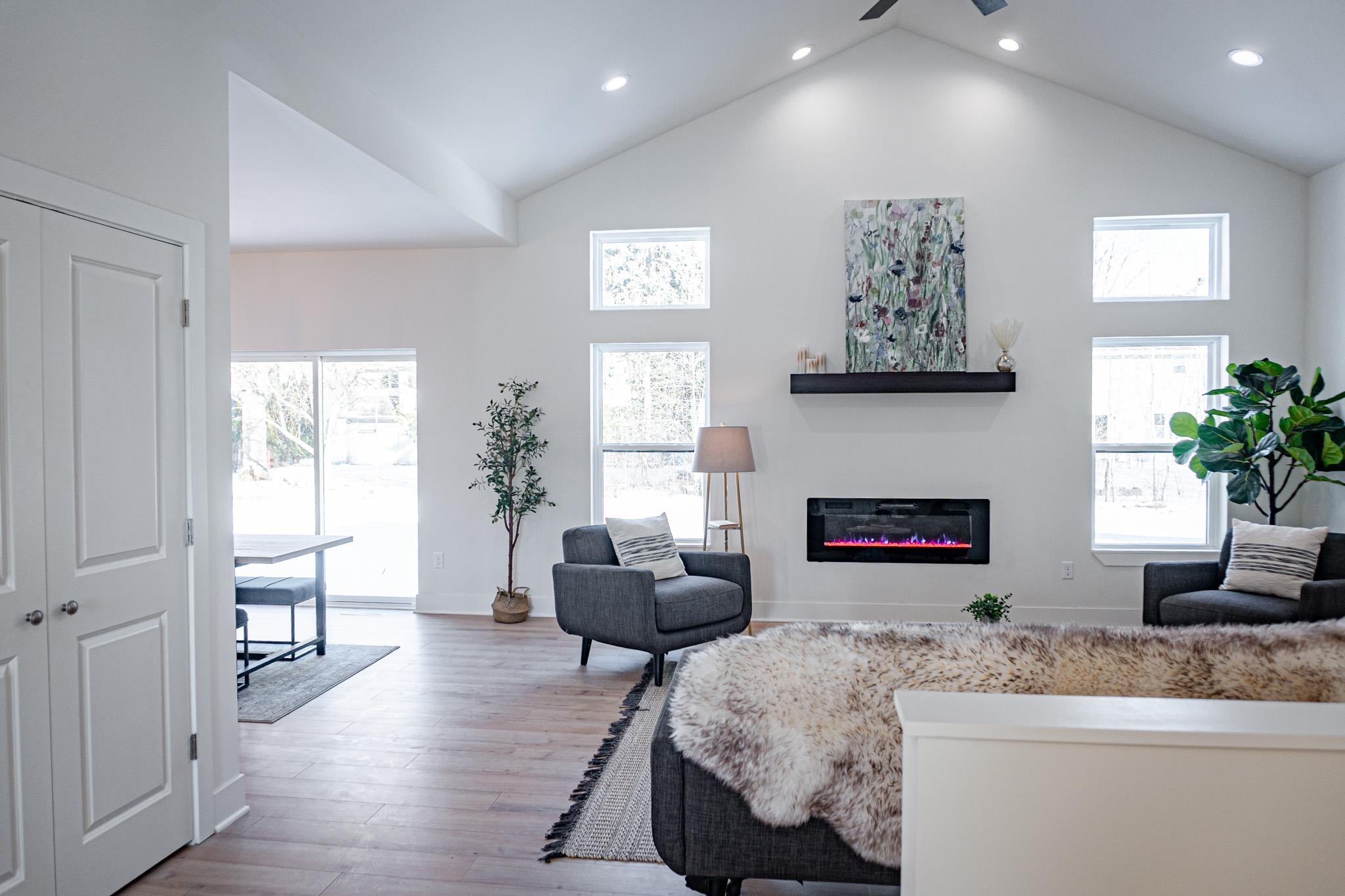 Beautifully designed 3 bed, 2 bath new construction home with a 3-car garage in the highly coveted Red Smith school area. This open-concept home features cathedral ceilings, luxury finishes, and a sleek modern fireplace anchoring the living space. The kitchen offers quartz countertops, Custom Range Hood, stainless steel appliances, custom cabinetry, and a large walk-in pantry. Full Appliance Package including washer and dryer included in Sale. Enjoy a customizable primary walk-in closet and a 1,674 sq ft unfinished basement with potential for an additional bedroom and bathroom. Concrete driveway, sidewalk, and right-of-way to be completed in spring. Close to schools, parks, and local amenities—an exceptional opportunity in a prime location.