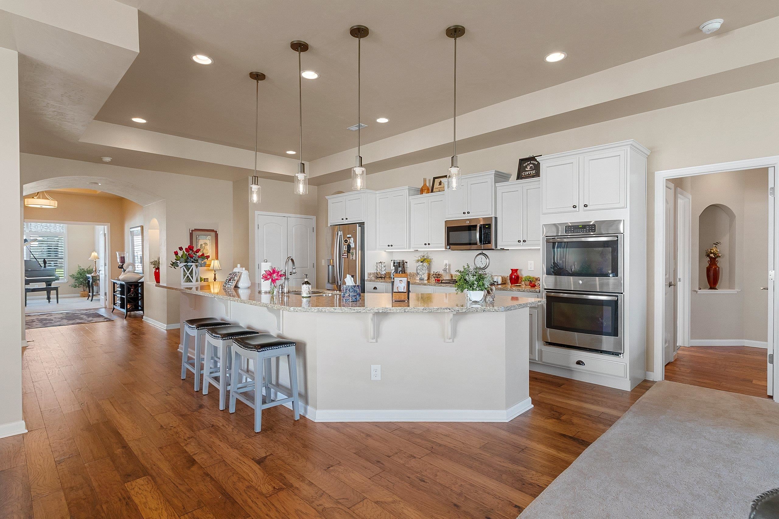Exceptional quality 2365 sq ft ranch in The Preserve at Baird Creek! Chef's kitchen boasts large quartz island, custom cabinetry, premium SS appliances & 10 ft ceilings. Beautiful hardwood floors, carpets & high-end finishes throughout. Front music room/office could be 3rd bedroom. Tranquil sunroom works great as a home office. Transom style windows with Hunter Douglas shutters provide openness & privacy. Primary bedroom with beautiful ensuite bath, California closets & views of Baird Creek conservancy. Guest bedroom with attached full bath. Formal dining area. Inviting living room with gas fireplace & patio access. All storage rooms on the main level (no basement.) HOA $250/mo for clubhouse, pool, lawn care & snow. Easy access to Door County, Star Bucks & Uncle Mikes!