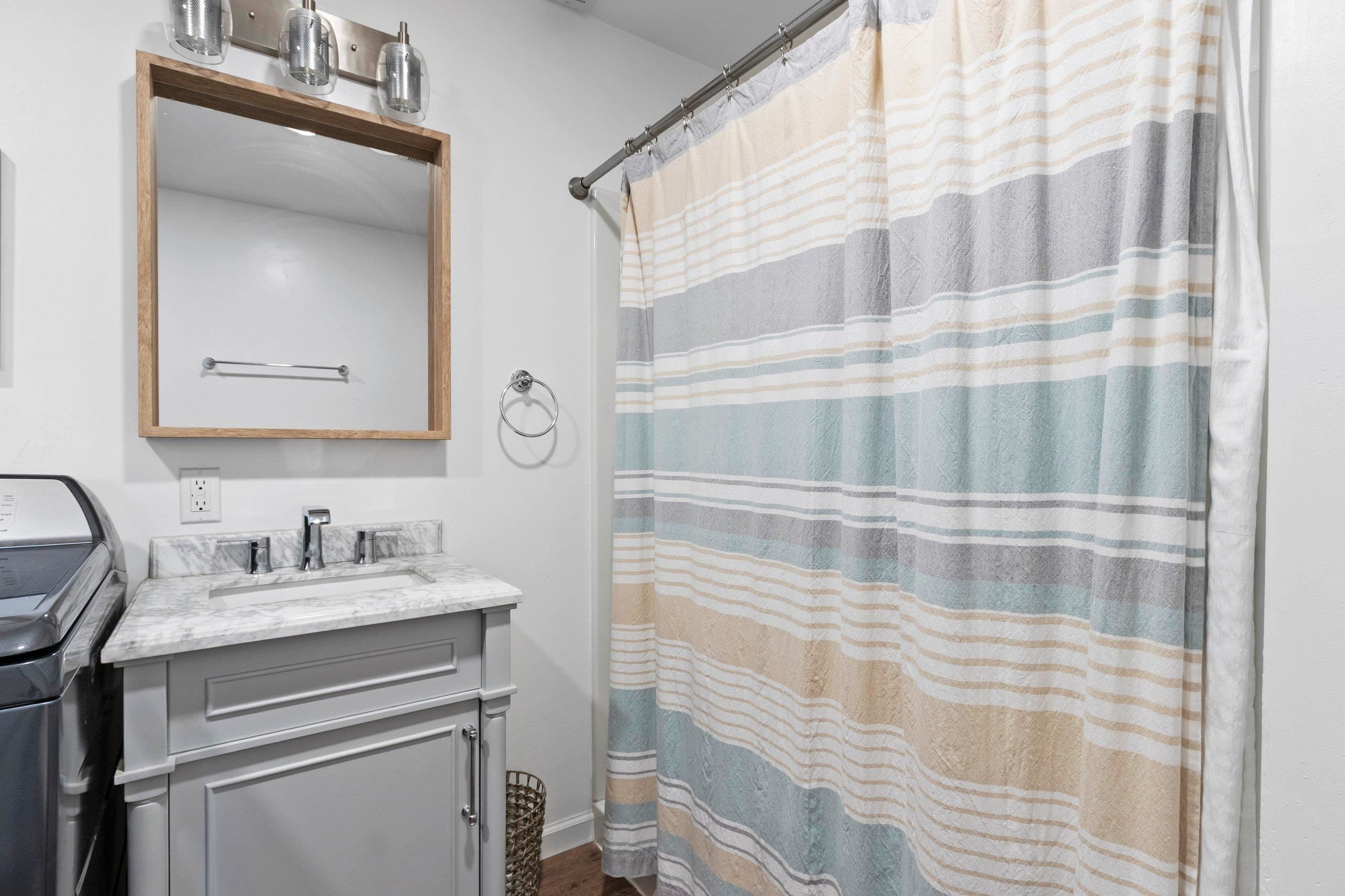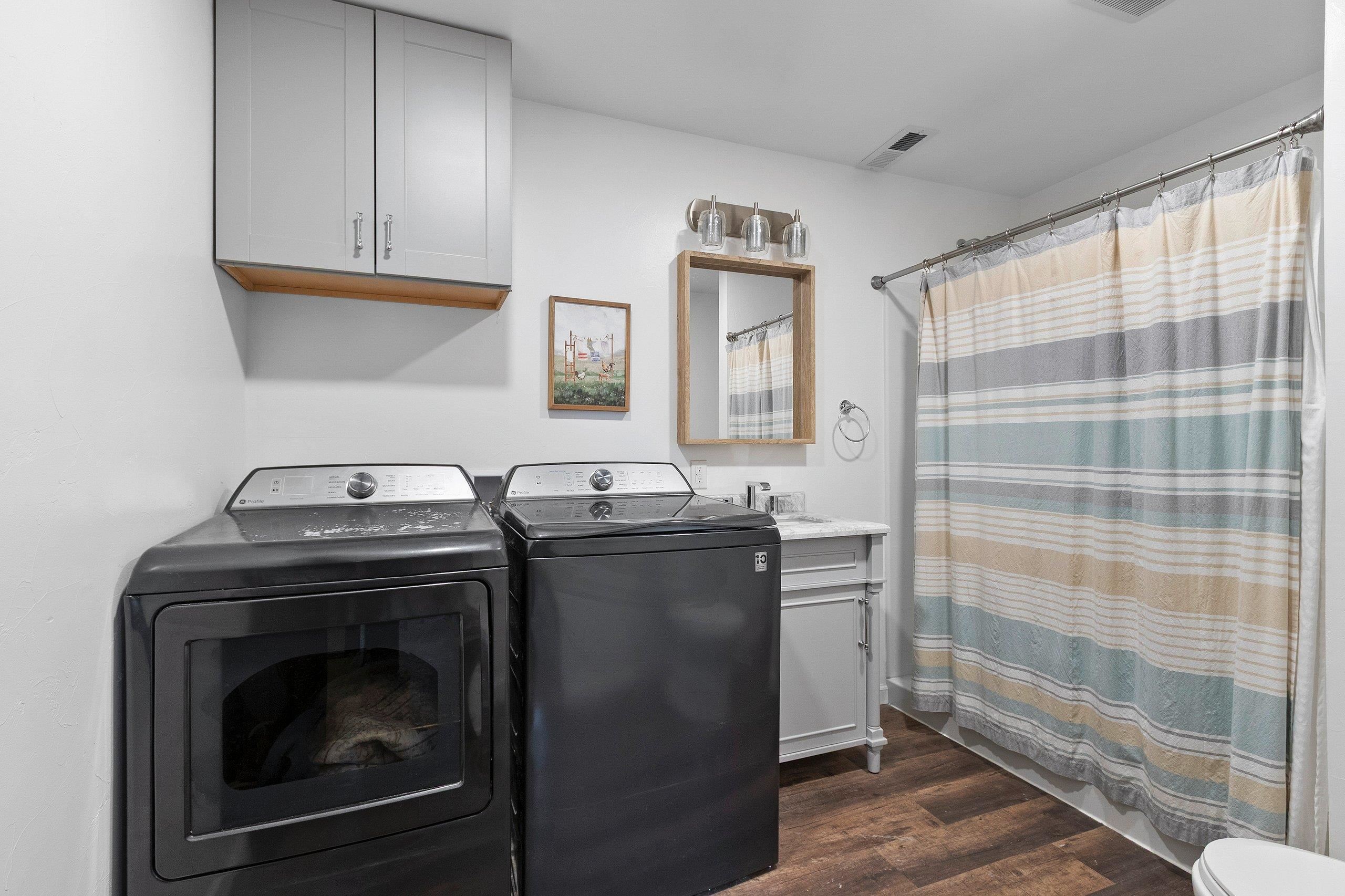 refrigerator, dishwasher, oven/range, microwave, washer and dryer