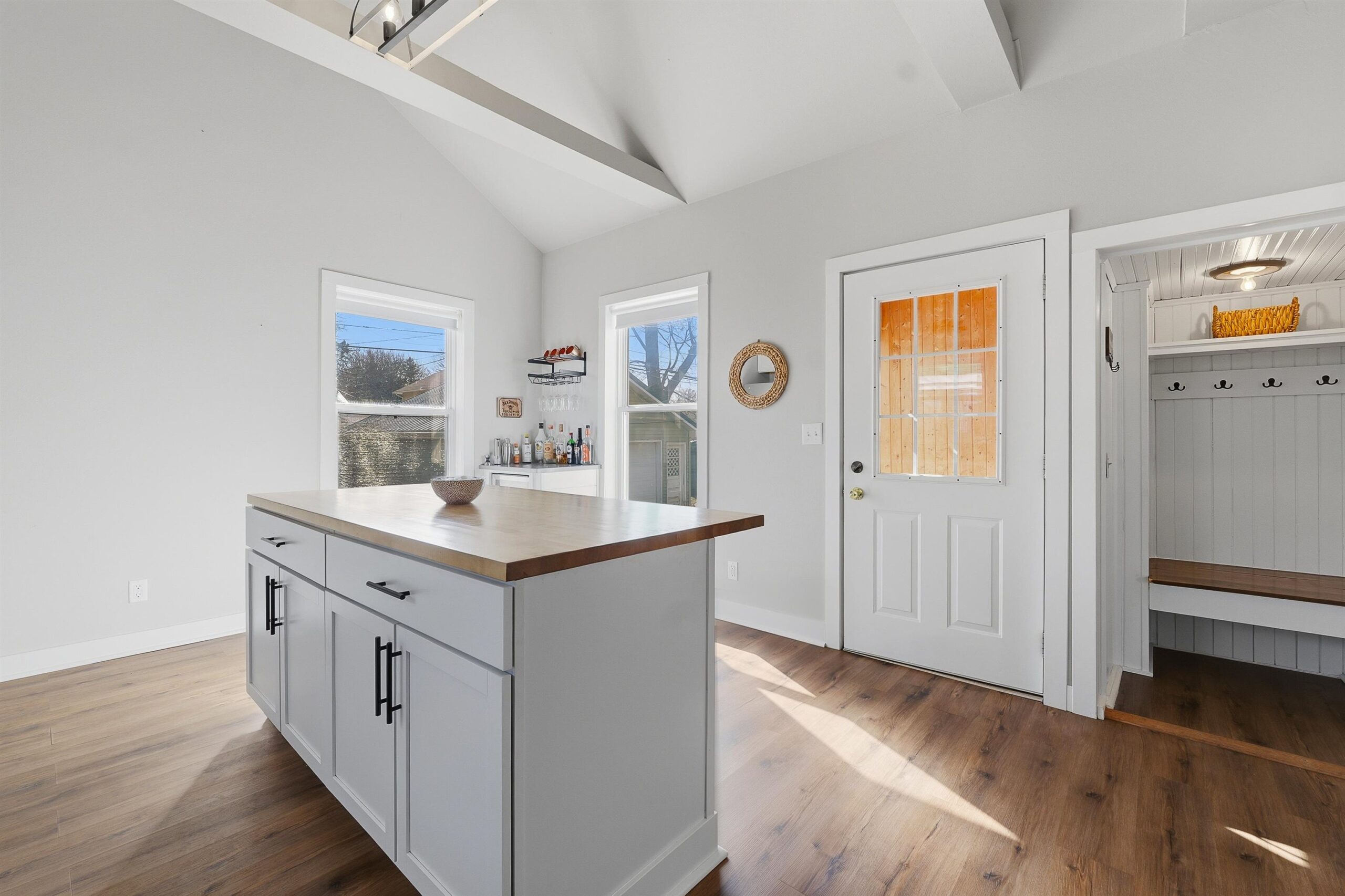 So much curb appeal with this 1.5 story home starting with the open porch and swing! Expect to be completely surprised with a kitchen that will knock your socks off complete with island and modern amenities! Seriously, this quality of kitchen is typically found in a much more expensive home! Layout offers large dining and living room on the main with 2 bedrooms and a full bath up. Newer shed in back with newer fence. Full basement for storage. A must see if you are tired of renting! Put your money in an investment that will pay off! All offers due by 12PM on Monday March 16th.