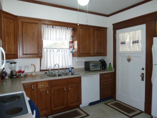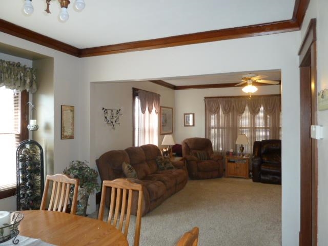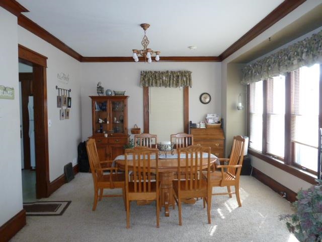 A MUST SEE HOME! All the work has been done for you! South side two-story home with all natural oak woodwork, oak crown molding, oak split French doors. Remodeled oak kitchen. 3 nice sized bedrooms, 2 baths. Large living room opens to a large formal dining room. Hardwood floors throughout the home can be found under the carpeting. Features both front and back 3 season porches, fully used basement with 7.5' ceilings, full walk-up attic. Large yard with detached garage. Close to schools. Everything you need!