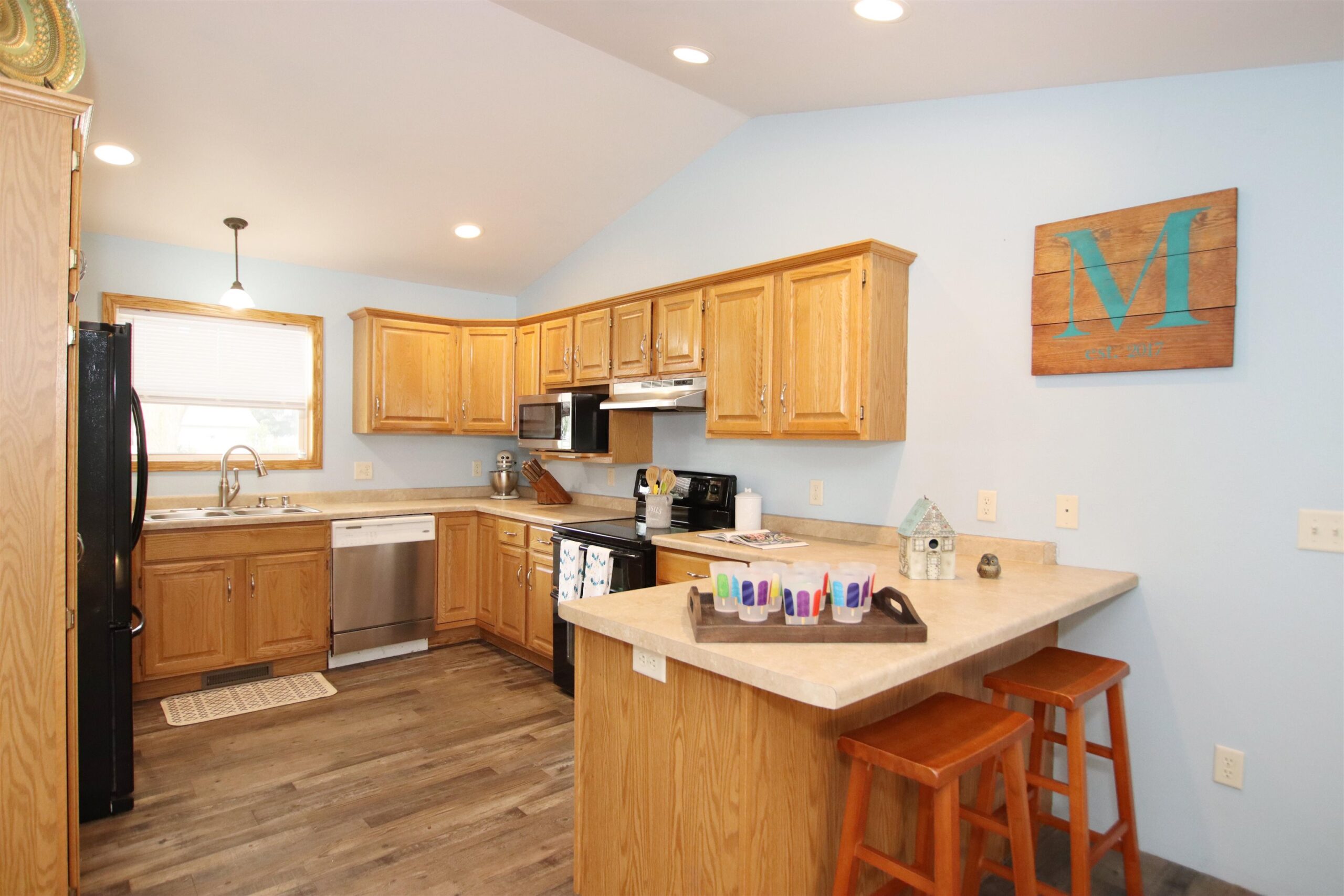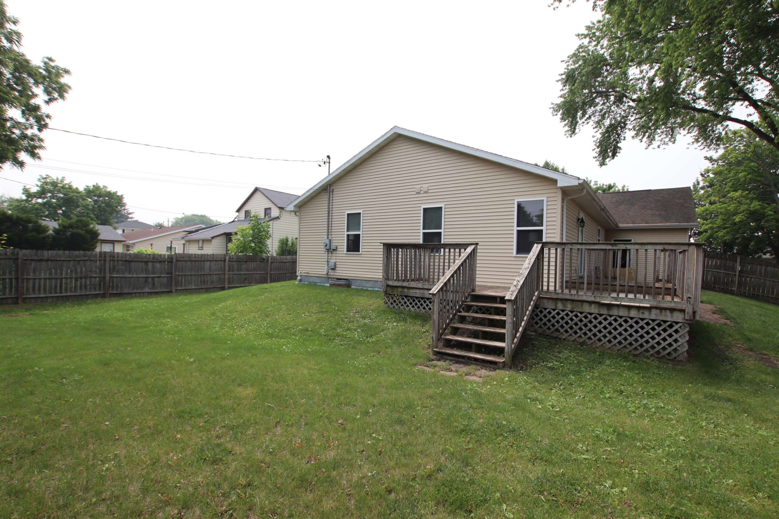 Just a few blocks away from Buttermilk Creek Park is this SE open concept ranch w/so much to offer. Front door opens to large LR w/tiled gas fireplace & large sitting area. Kitchen has great food prep space & huge peninsula. Primary bdrm features updated private bath & walk in closet. Easy main floor laundry right as you step in from the attached 2.5 car garage. Basement is stubbed for a 3rd bath & could be additional living space for the next buyer so bring your plans! Sellers are including +6000 worth of matching flooring for bedrooms & steps down to basement. Enjoy your morning coffee off the deck from your bdrm leading to your large fenced yard! Great house in a very convenient location. Look for the Adirondack chairs on the welcoming front porch! Offers due 7/3 noon. Presented 5pm.