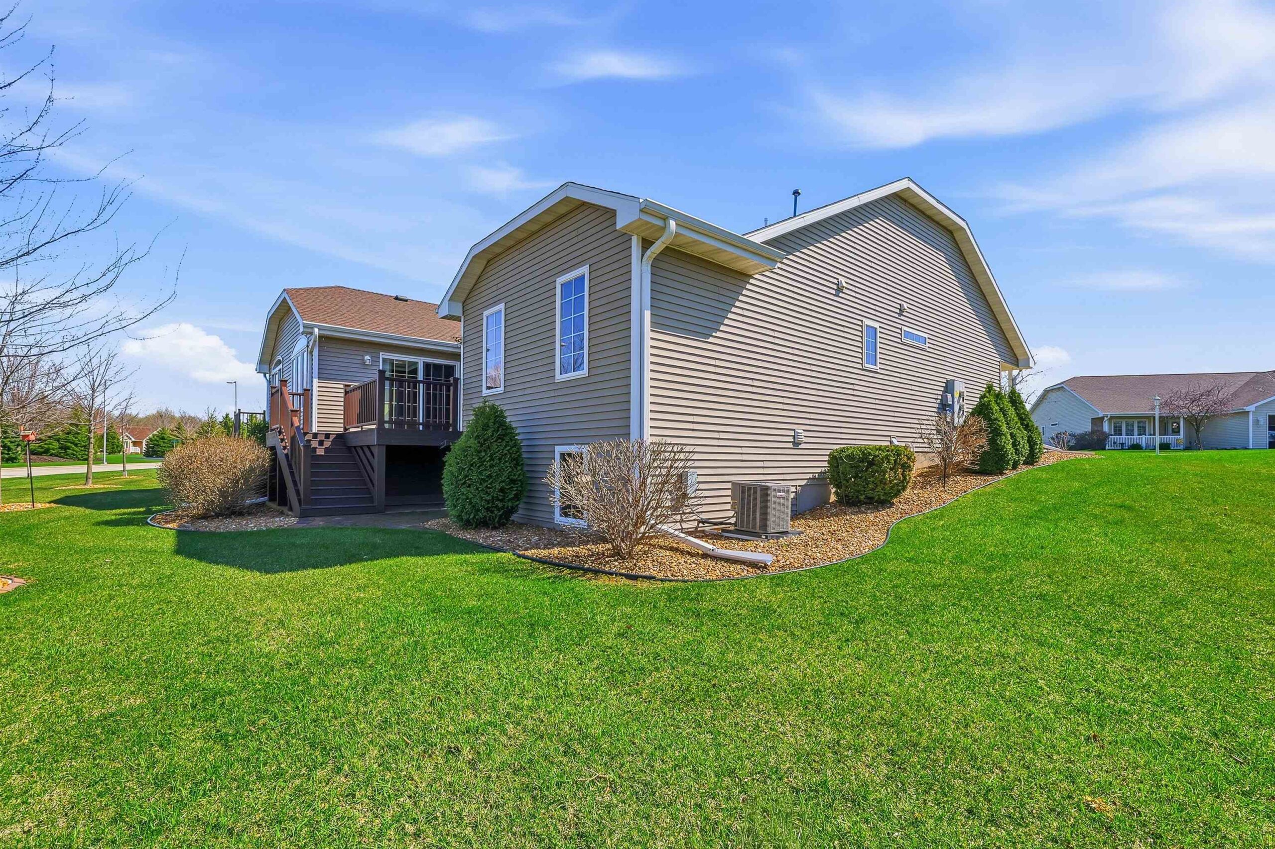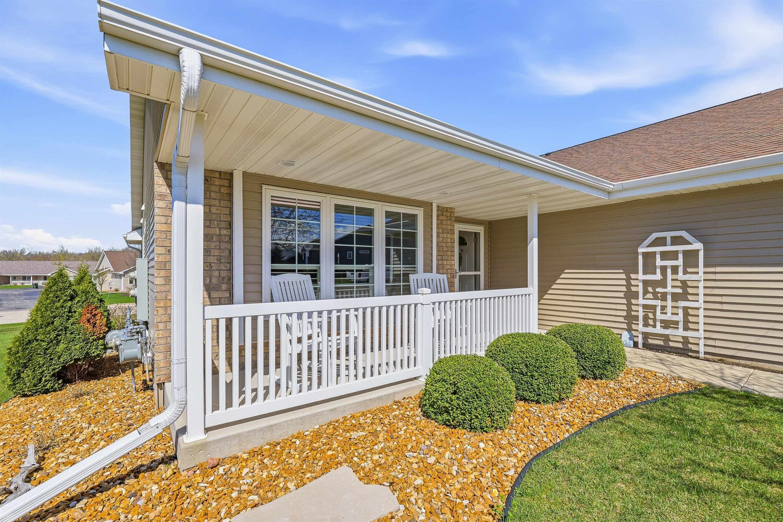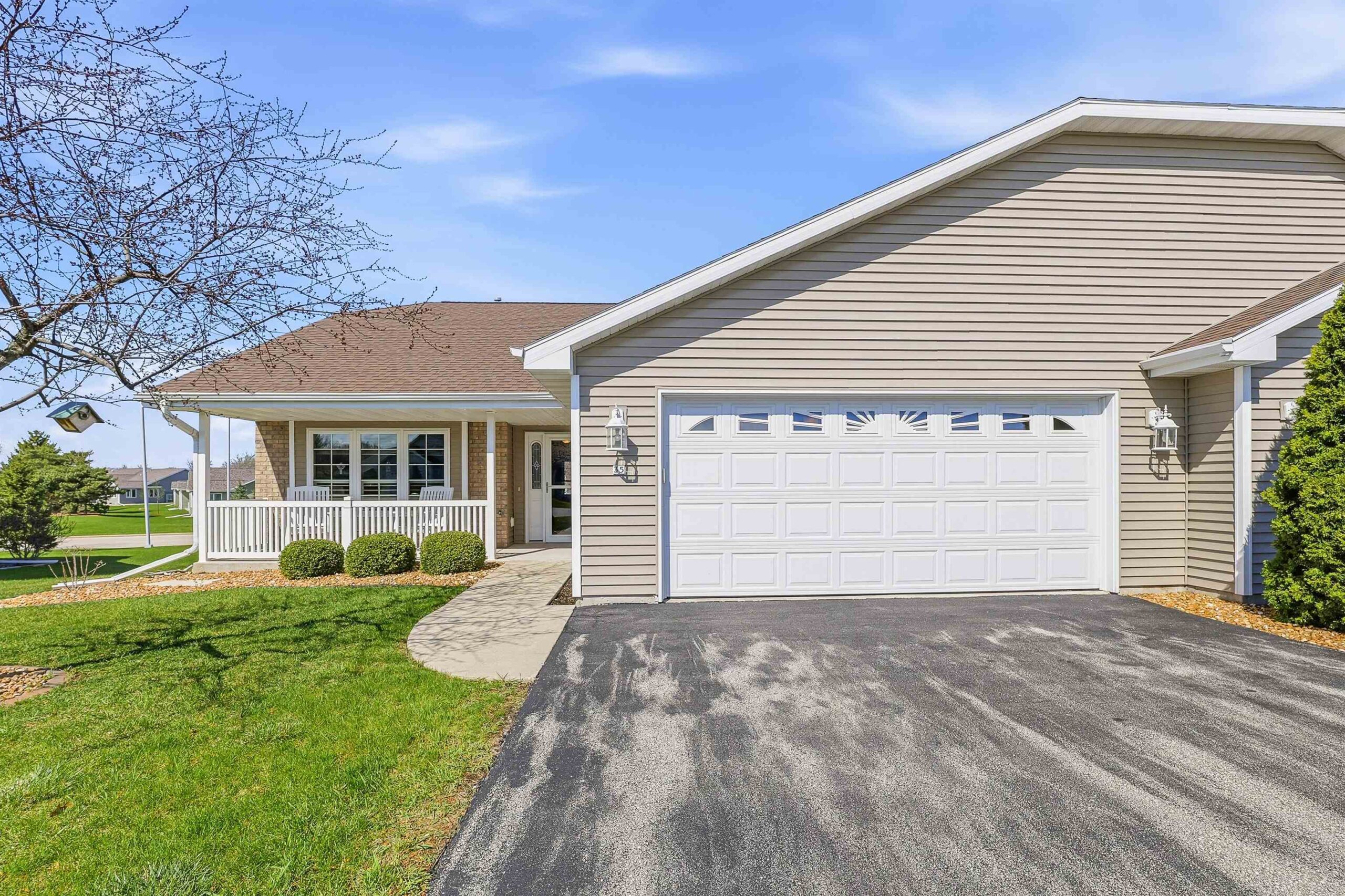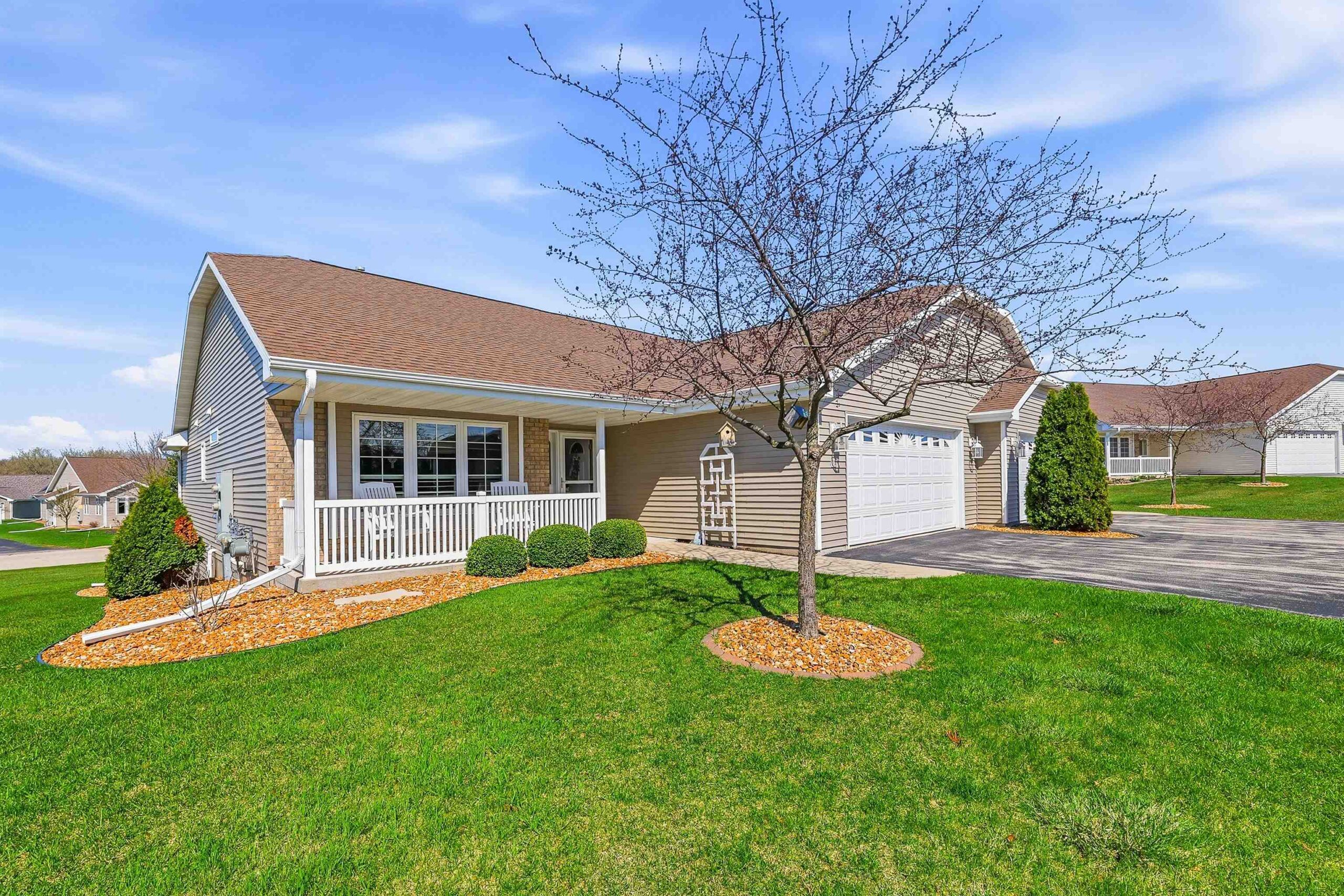 Well maintained open concept 2 bed/3 bath condo with lots of natural light. This sun filled unit has 2600 sq ft of living space with vaulted ceilings, gas fireplace, kitchen with quartz counter top, deluxe pantry and a cheery, cozy sunroom. The lower level has a large family room, exercise room, full bath and another room seller uses as a bedroom. Perfect for guests. Features include zero-entry access, an abundance of storage, first floor laundry and an attached 2 car garage. Enjoy the outdoors on the front porch, relax on the composite deck, or walk the nearby trails around the pond. Measurements are approximate and should be confirmed by buyer if material. Offers to be presented Friday, 04/24/26. Schedule your showing today!