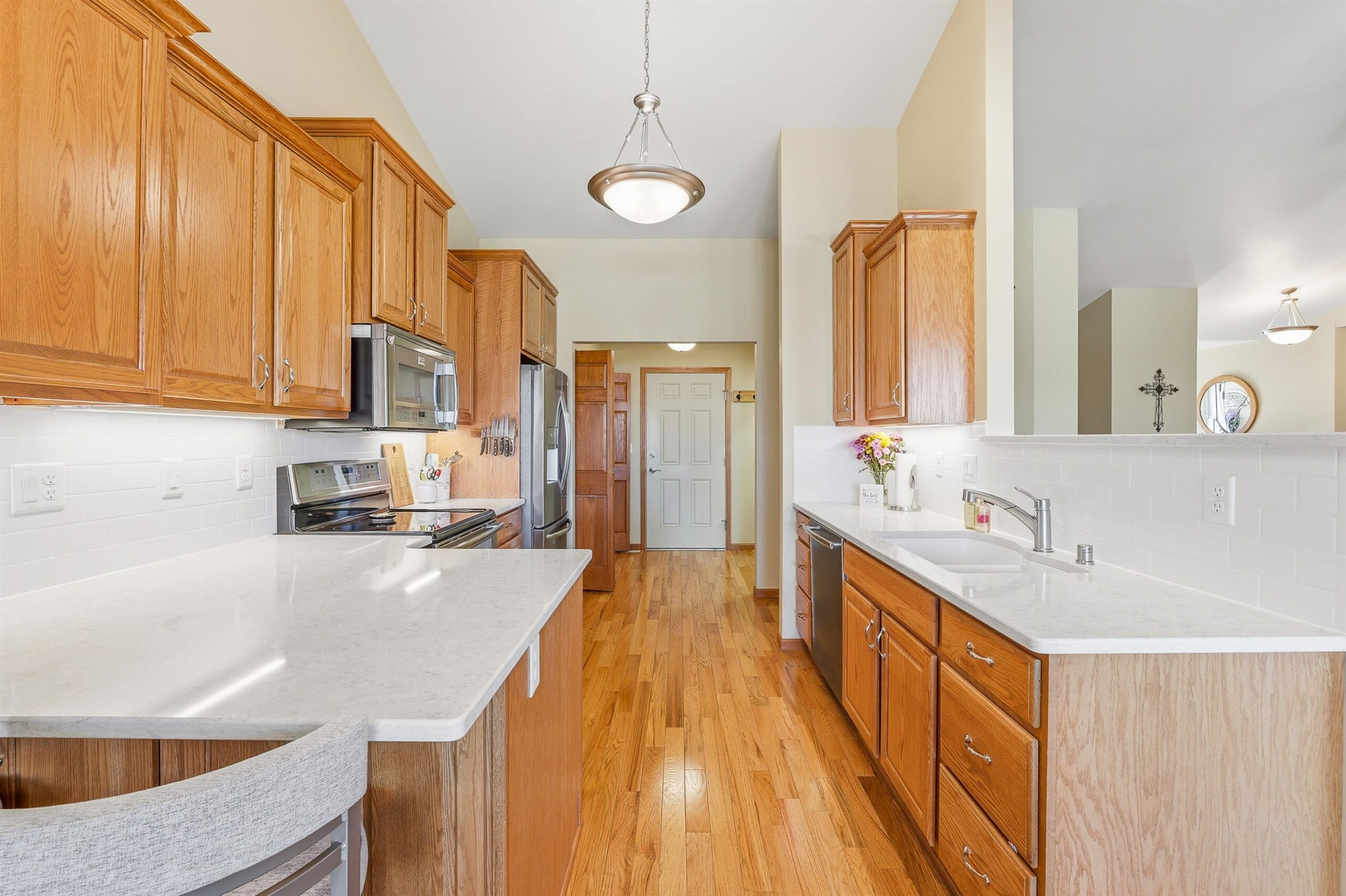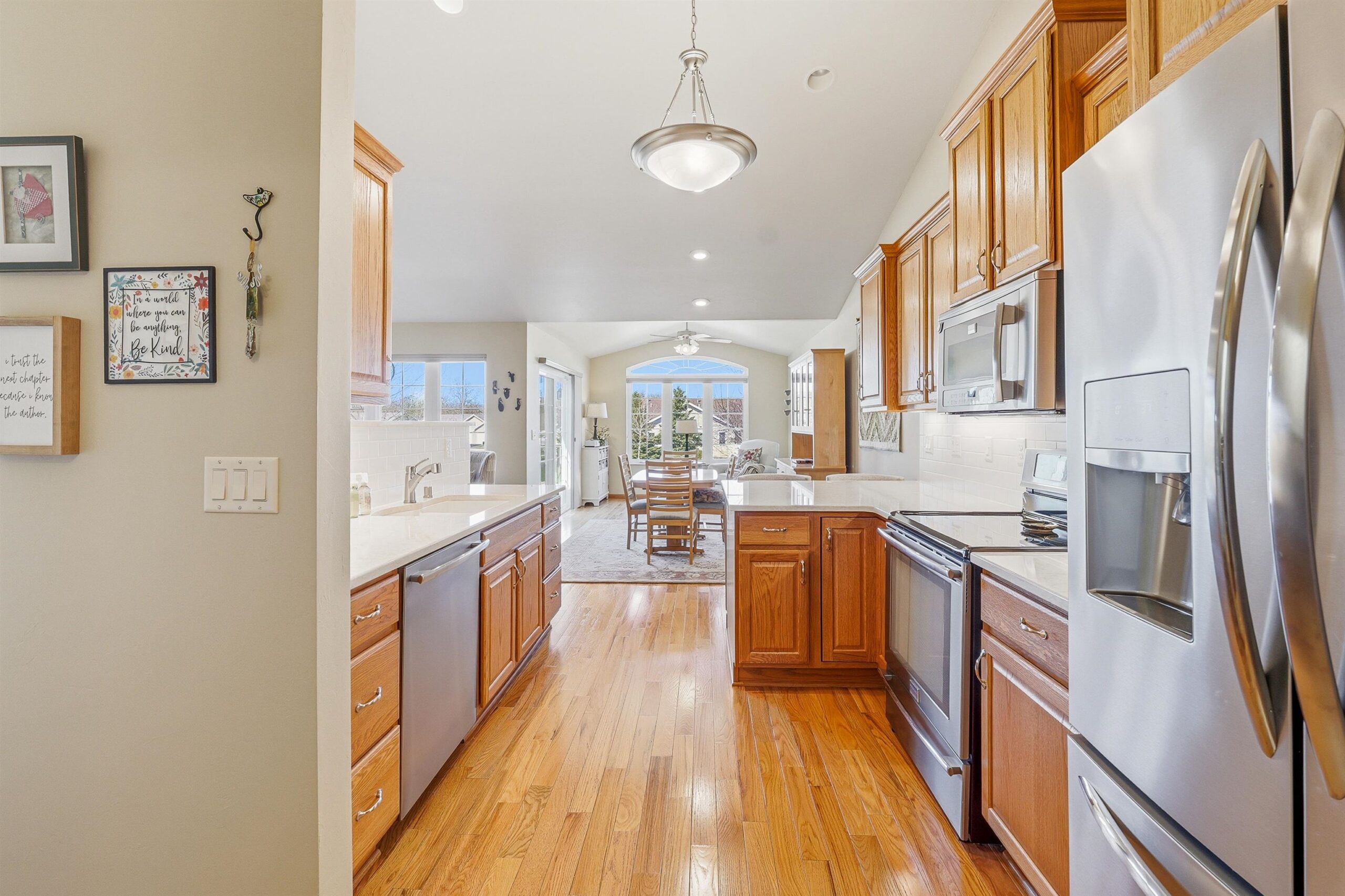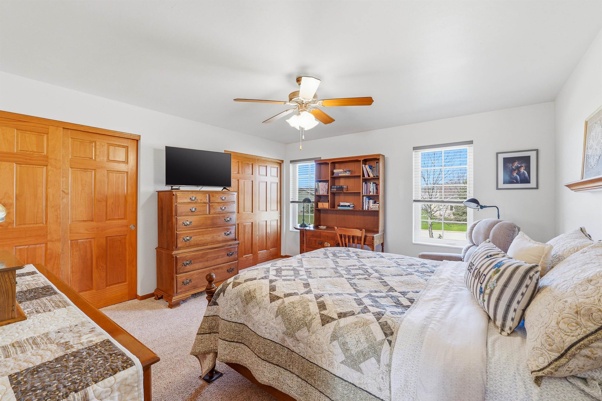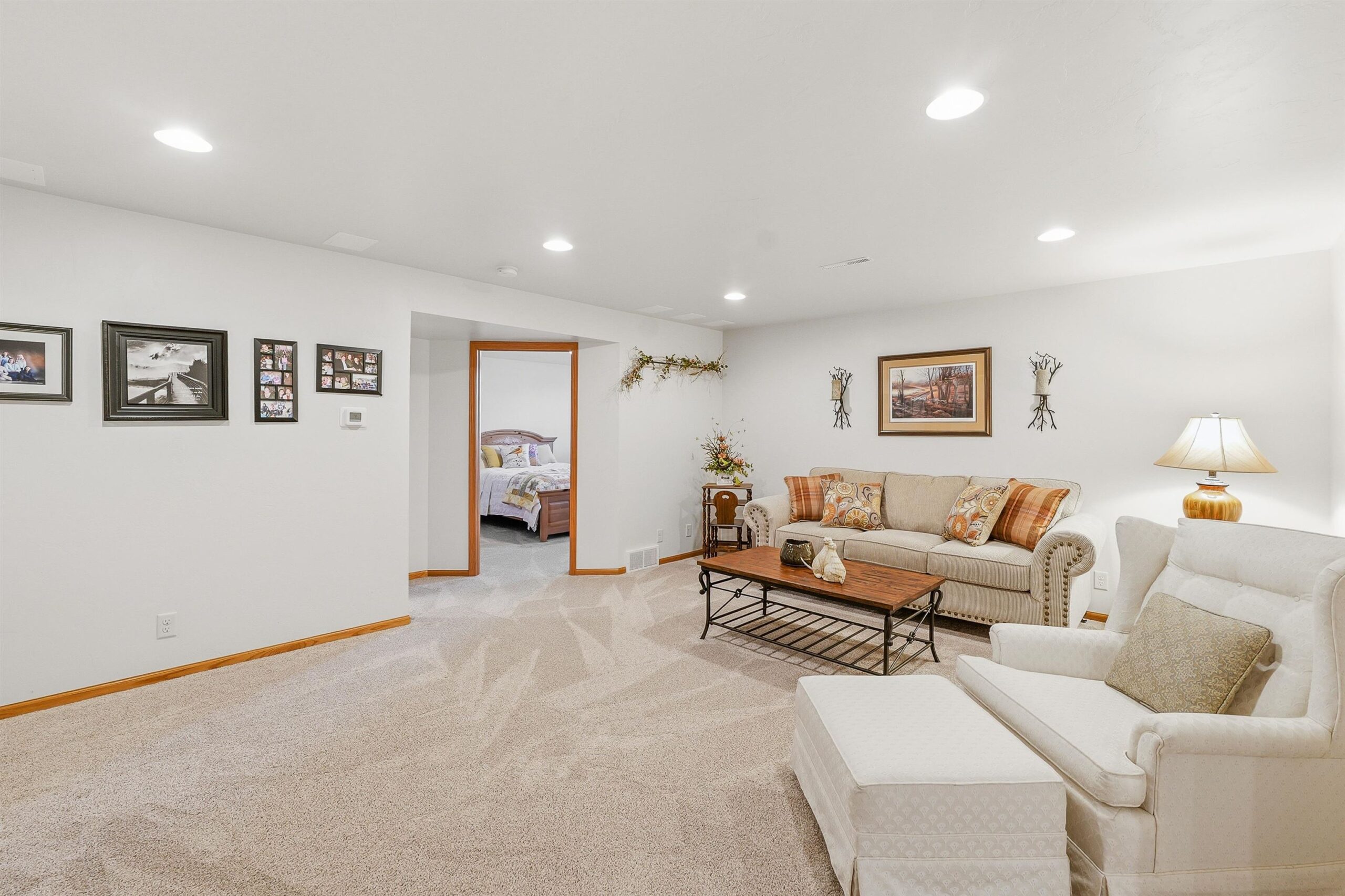 Well maintained open concept 2 bed/3 bath condo with lots of natural light. This sun filled unit has 2600 sq ft of living space with vaulted ceilings, gas fireplace, kitchen with quartz counter top, deluxe pantry and a cheery, cozy sunroom. The lower level has a large family room, exercise room, full bath and another room seller uses as a bedroom. Perfect for guests. Features include zero-entry access, an abundance of storage, first floor laundry and an attached 2 car garage. Enjoy the outdoors on the front porch, relax on the composite deck, or walk the nearby trails around the pond. Measurements are approximate and should be confirmed by buyer if material. Offers to be presented Friday, 04/24/26. Schedule your showing today!