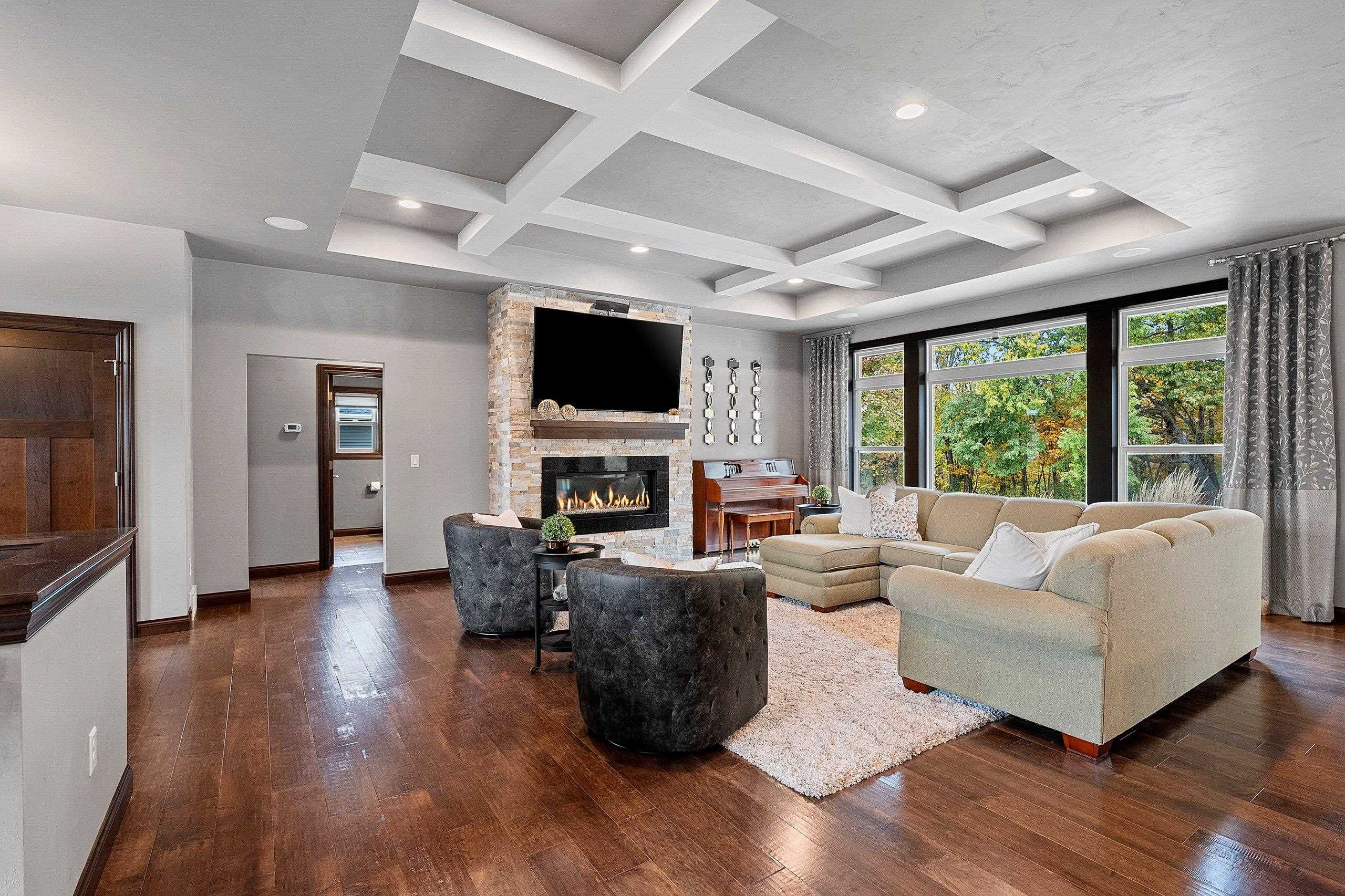 Stunning custom-built ranch nestled on serene, wooded lot! Step inside to bright & airy open concept living space where lrg daylight windows illuminate the elegant LR featuring a coffered ceiling & stunning stone/gas FP. Kitchen is a chef's dream showcasing custom cabinets, beautiful granite countertops, engineered HW floors, oversized island & Bosch appliances. Escape to spacious primary ste that boasts a luxurious tile shower, dual sinks & custom closet. Step outside to experience a backyard paradise! Custom gas FP, inground pool & paver patio make it an ideal setting for summer fun. Professionally landscaped w/ sprinkler system & concrete curbing. Finished garage includes half bath & bsmt access. LL offers potential for future expansion w/egress windows & stubbed for wet bar, full bath.