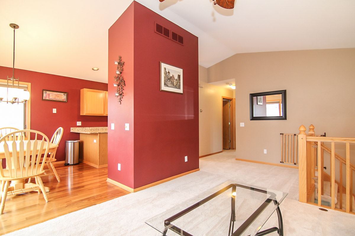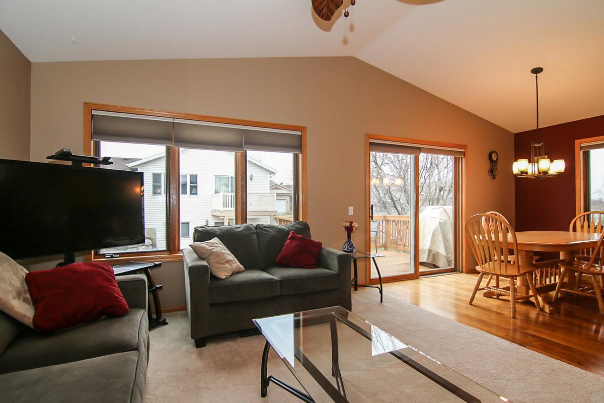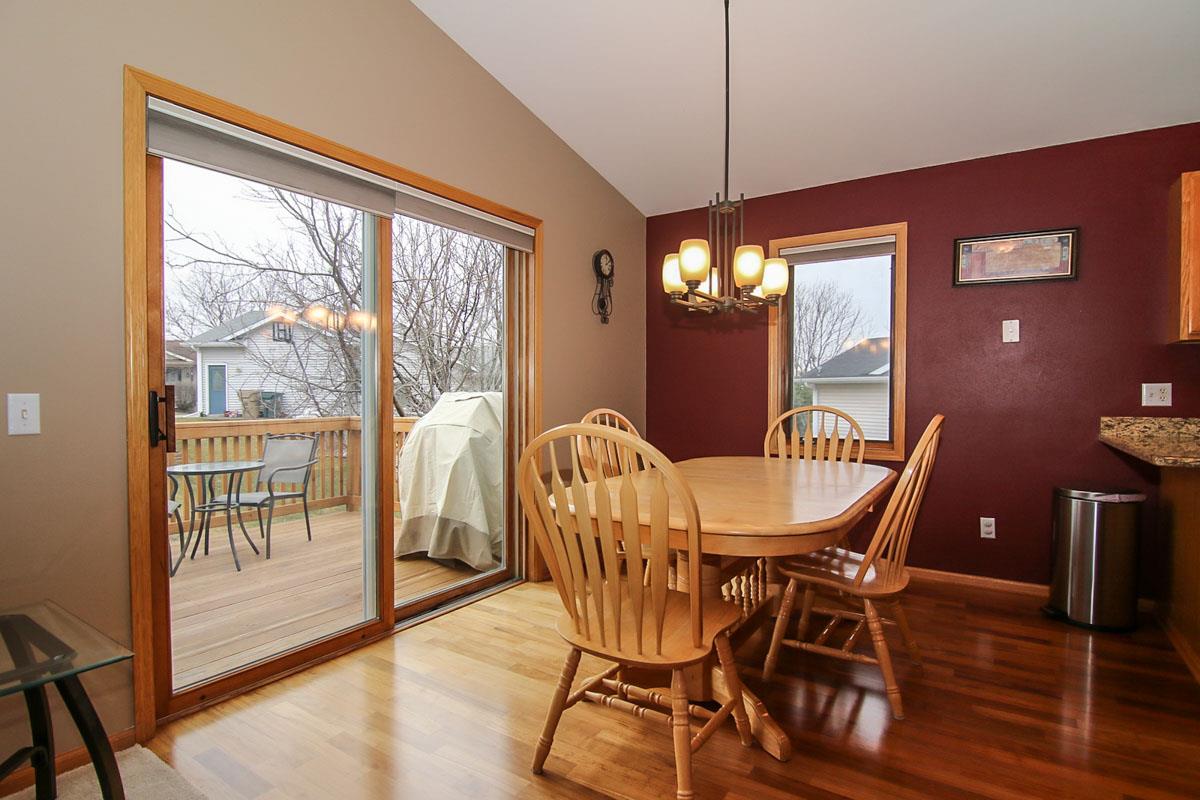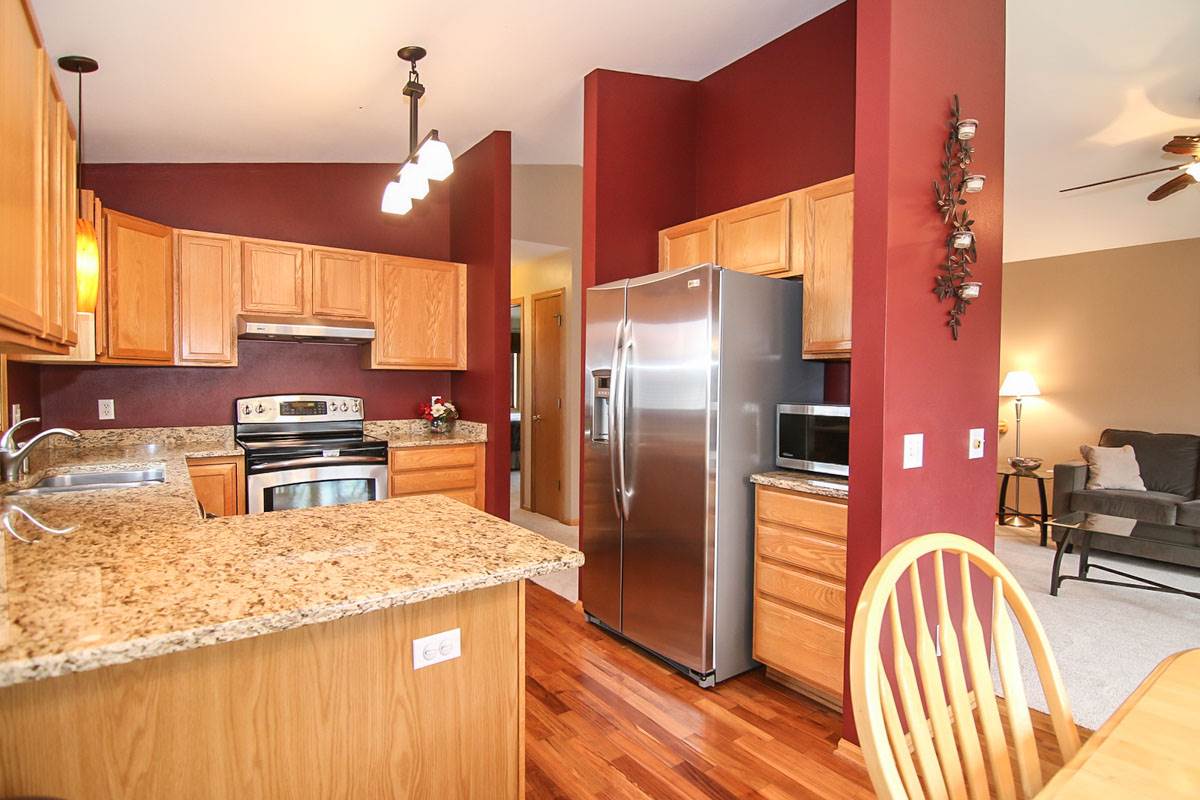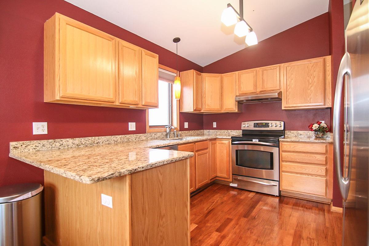 Spacious & sunny 4 bedroom, 2 bath split level home in Sandstone Ridge. Main level features gorgeous Brazilian cherry floors, granite counters, stainless appliances, new carpet, fresh paint and new deck. Step into the lower level and you will find a family room with a gas fireplace & walk-out to a patio in addition to two bedrooms and another full bath. Two car garage with epoxy floors, workbench and storage. Close to two parks, restaurants & shopping. Tastefully landscaped! UHP Warranty included.