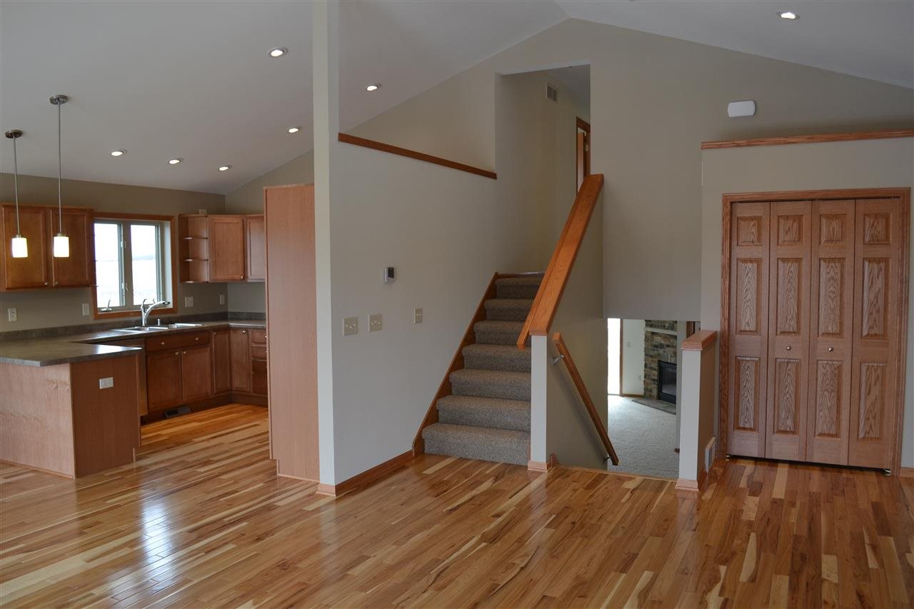 Home is completed. Spacious new multi-level has 4 bedrooms, 3 baths, large family room with floor to ceiling stone fireplace. Media/bonus room with surround sound. Gorgeous hardwood flooring, 6 panel doors, master bath w/ceramic tile walk-in shower and double vanity. Builder will take your current home in trade. This is a "Focus On Energy" home. Picture is of similar home.
