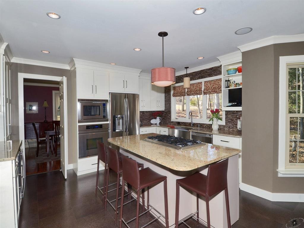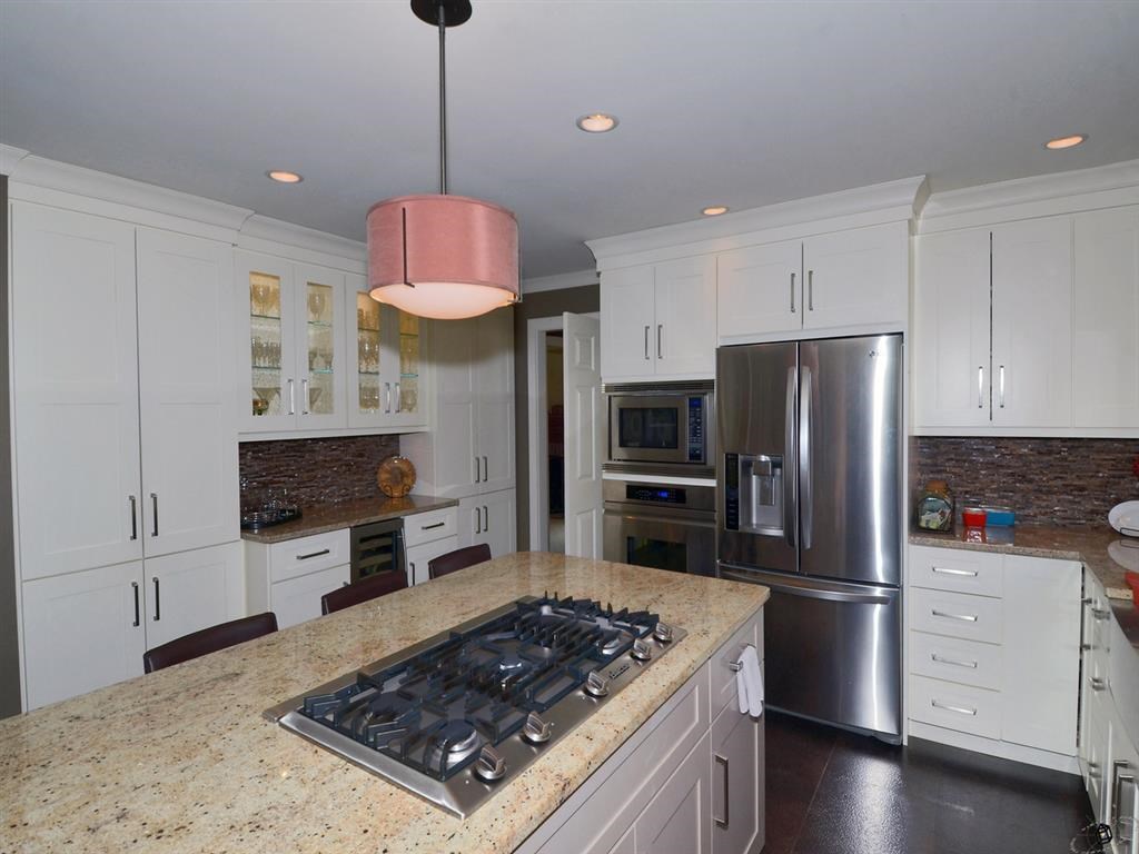 Exceptional 4 bedroom 2 story with countless amenities! Formal dining + fabulous high-end new kitchen features cork flooring, granite counters & island, tile backsplash, ss appliances, wine chiller. Spacious master suite w/fireplace in sitting area, walk-in closet & beautiful brand new bath! Living rm w/french doors, fireplace & built-ins. Warm family rm w/cherry floors, fireplace, crown molding. Large above garage rec room. Brick paver walkway, brick patio, screen porch. A must see property!