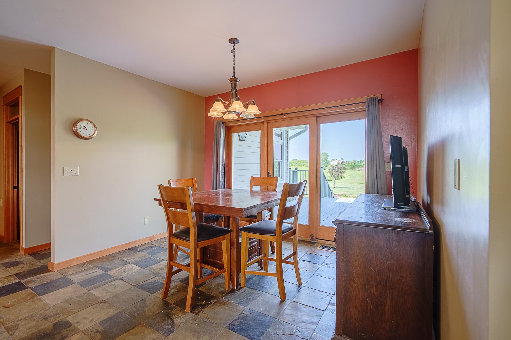County living at it's finest!! Beautifully designed custom home nestled back on more than 11 acres in the town of Eaton. Home features 4,829 square feet, with towering 9' ceiling on the main and lower level, 5 bedrooms and 3.5 baths. Enjoy the morning sun in the kitchen and the afternoon sunsets on the back deck overlooking the ponds and sprawling 11.6 acres. Custom built kitchen cabinets out of Birdseye maple. The primary bedroom en-suite features a custom walk-in tile shower and large WIC. Down the hall you'll find a staircase to an upper theater room. In-floor heating throughout the main and lower levels. Enjoy the convenient 1st floor laundry or the expanding lower level with an indoor sauna. Home also features a dog bath and a 40x50' detached heated garage.