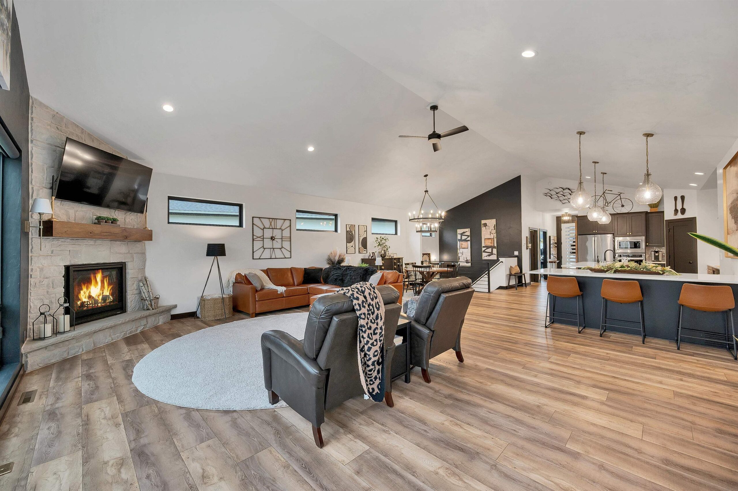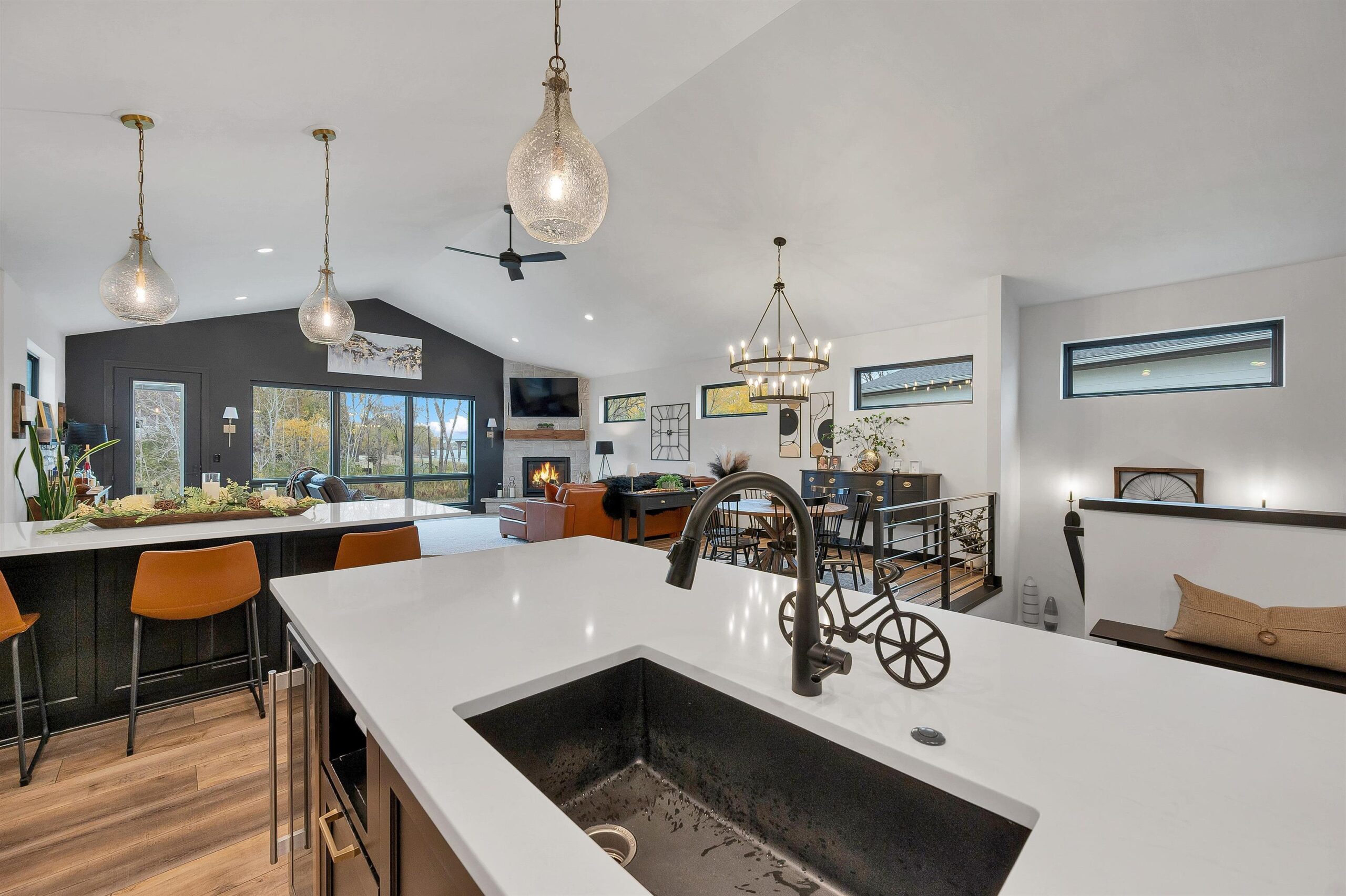 This beautiful water front, three-bedroom, open-concept home offers many desirable features. Water front home with boat slip on the Fox River! The kitchen flows seamlessly into a spacious living room with gorgeous river views and a cozy fireplace. The primary bedroom includes a large walk-in closet, full bathroom, and convenient access to the laundry room. The lower level features additional living space, complete with a bedroom and full bathroom. Enjoy the outdoor living area with a private backyard, patio, and easy access to walking trails. Includes a boat slip. Aldon Station has a clubhouse with pool, workout room, and gathering space. Has shared wall for the zero lot line.