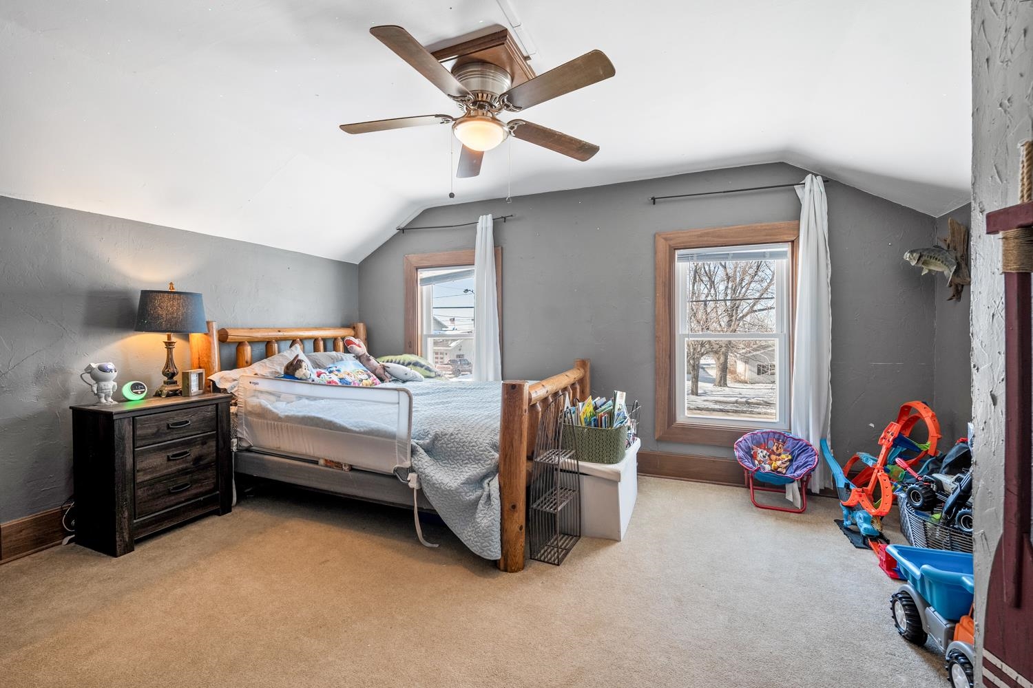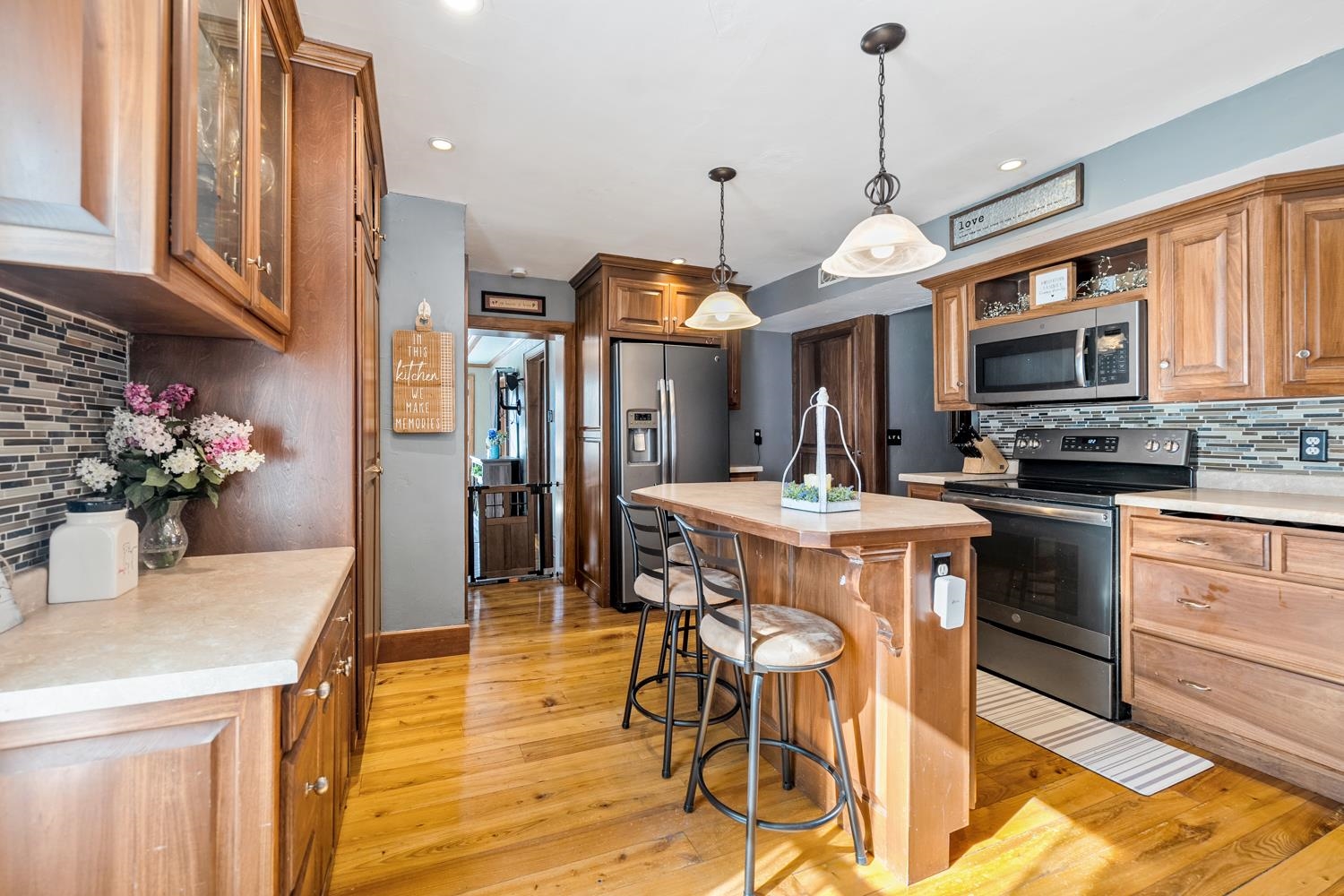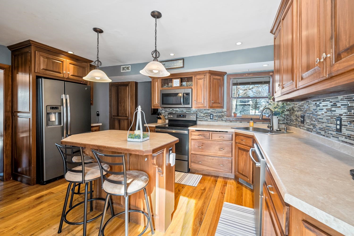 Welcome home! Historic wing & gable 3BR/1.5BA 1.5 story on a corner life blends old-world charm & modern convenience! Enter through a new front door ('24) to a spacious LR w/ vaulted ceiling & wide-plank pine floor continuing throughout most of the main level. Fully-equipped kitchen w/ suite of stainless appliances, solid cabinetry, and isle with seating. 1st floor laundry w/ included washer+dryer! Primary bedroom w/ impressive coffered ceiling & walk-in closet. Main bath w/ walk-in shower ('17) and large vanity. Upper level offers a large 2nd bedroom, 3rd bedroom & convenient half-bath. 1.5 stall detached garage w/ epoxy floor & insulated closed walls. Desired closing date is 4/16/26 or sooner, and occupancy through 4/21/26. Reviewing offers on 3/2/26, all offers due by 3/1/26 8 pm.