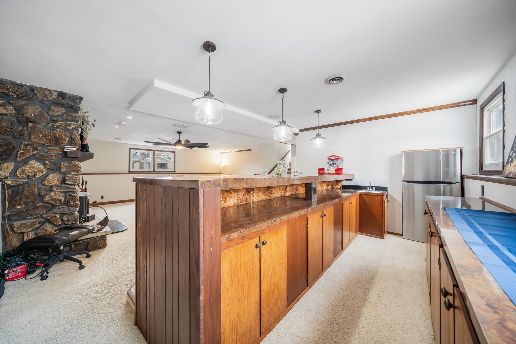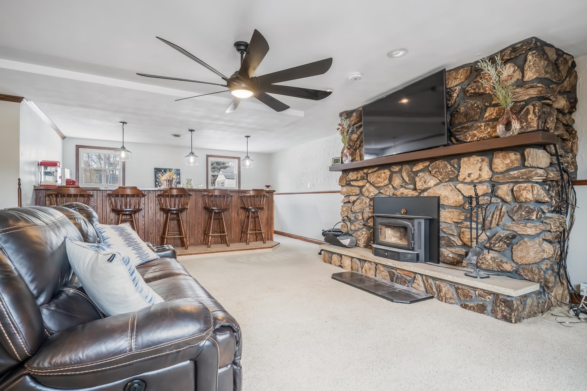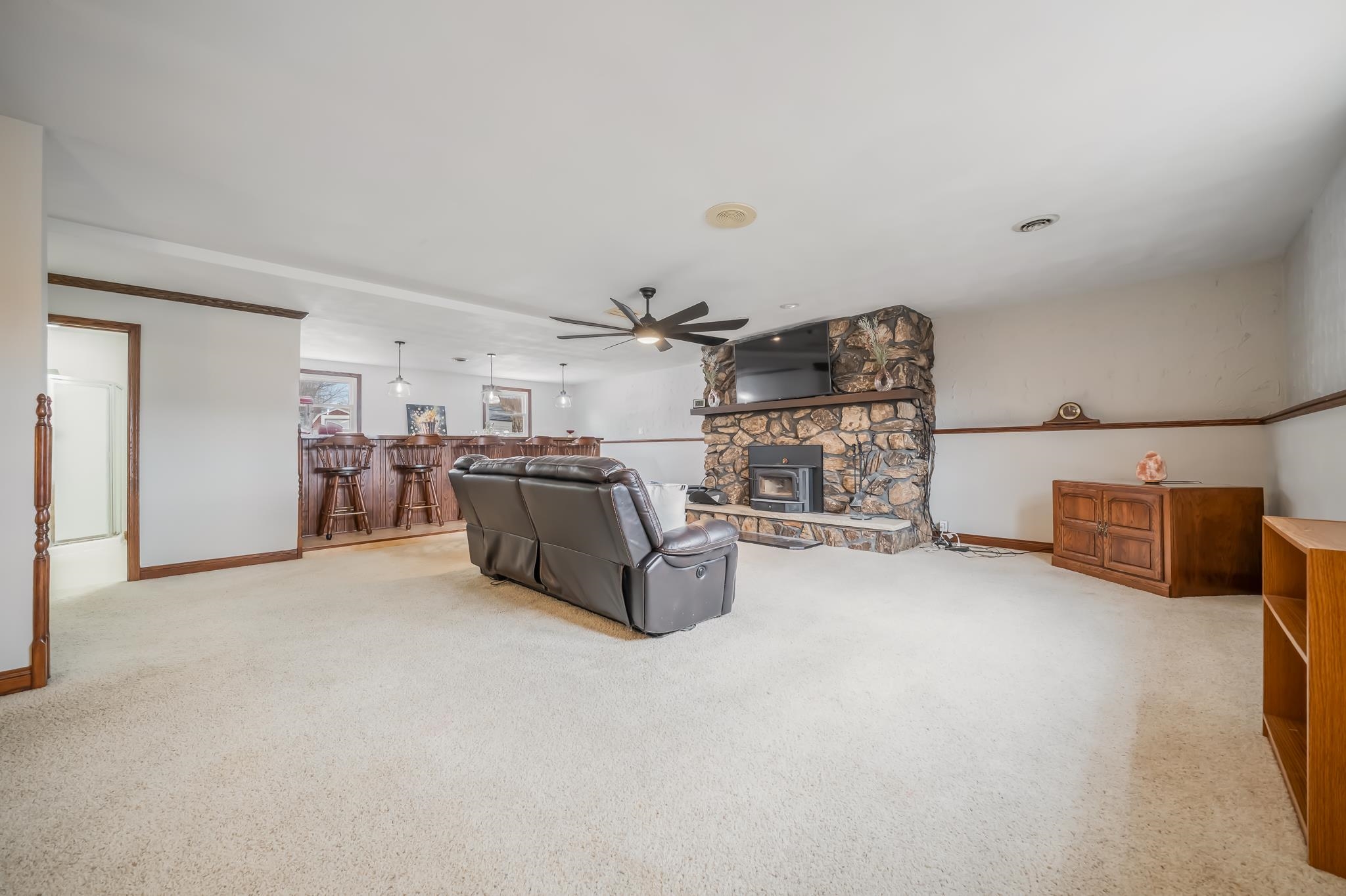 Exciting value! Near Prairie Hill Park...sledding, biking, exploring. Can you make use of 3 bedrooms, 3 full baths? 1st floor laundry hookups! Formal dining room for special gatherings; hutch fits perfectly for precious collectibles. Bright & airy updated kitchen, space to extend the table, room for all to eat together. Lower level features a theater room, wood burning fireplace, bar/stools, 2 bonus rooms, refrigerator for refreshments; make the popcorn, sit back & enjoy! Vinyl/chain link fence, red storage shed. Flowers: bleeding hearts, lilacs, irises, clematis & more. Private well for watering lawn. Room for a swing set, sand box, yard entertainment. Helpful neighbors, great location. Near Fox Valley Technical College, schools and shopping.