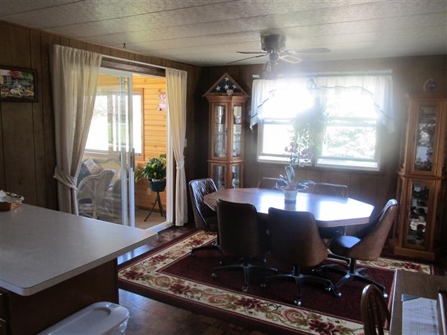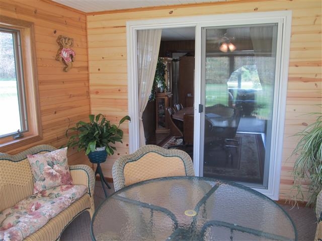 This 4 bdrm 2 ba home has it all! Open floor plan, kitchen opens to dinette & living room. Enjoy quiet time in the bright airy sunroom. Main level laundry. Step downstairs to a great bonus room w/wood burning fireplace surrounded in stone. Great kitchenette setup downstairs with existing bed and bath perfect get-a-way with storage room for a pantry/freezer. 2 car detached garage and 26x32 bonus garage & 8x12 garden shed. All sitting on 1.6 acres walking distance from WI River.