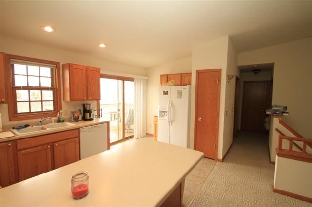 Located close to shopping with easy interstate access this condo features an open floor plan, cathedral ceilings, large oak kitchen. master with walk through bath. The exposed lower level has large family room, third bedroom and second bath. Other feature include two car attached garage deck and fence yard.