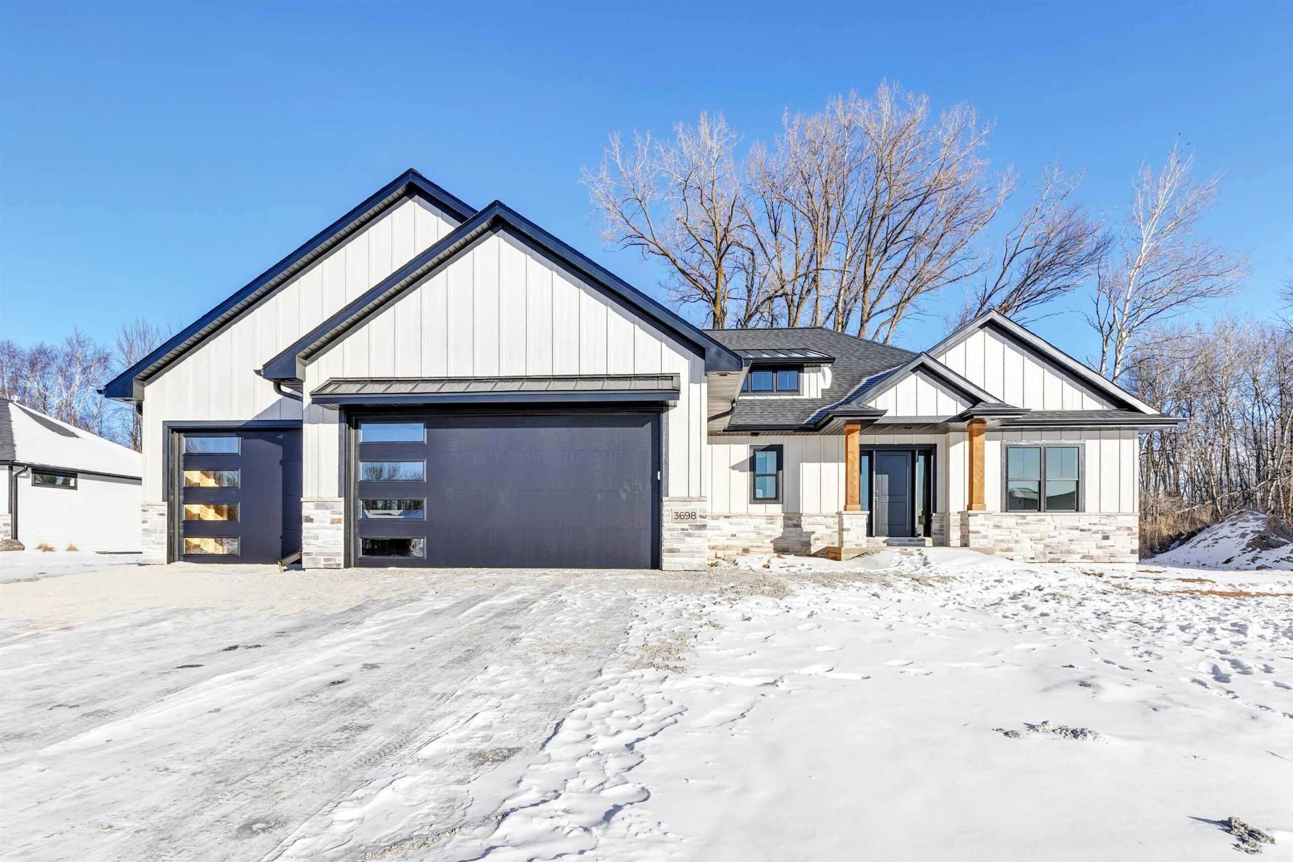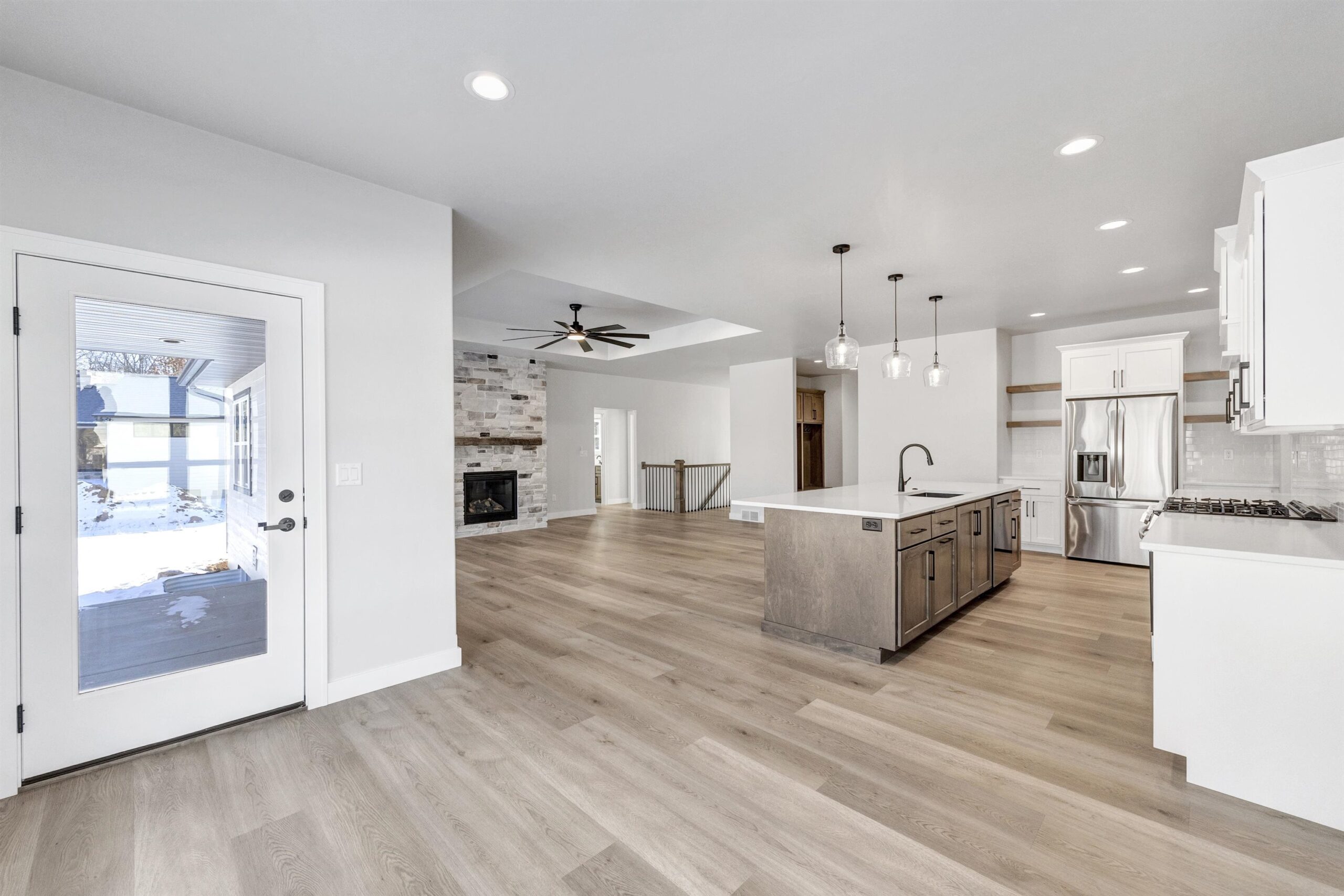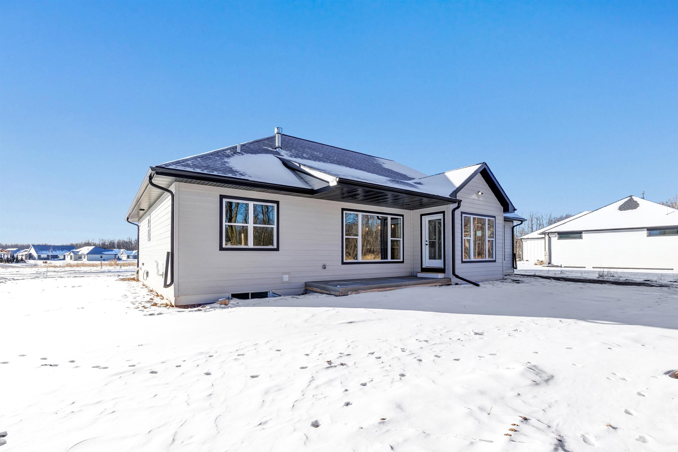 Experience modern living in this brand-new 3 bed, 2.5 bath home located in Howard. The open concept floor plan is filled with high-end finishes and features tray ceilings in both the living room and primary suite. A beautiful stone fireplace anchors the living room, adding character and warmth. The main level includes a spacious primary suite with a tile shower in the en-suite bathroom, convenient first-floor laundry, and a layout perfect for entertaining. The kitchen offers a walk-in pantry for added storage and functionality. Step outside to the covered back patio and enjoy the beautiful lot and 3-stall attached garage. The lower level includes an egress window, allowing for future expansion and added living space! Driveway and final grade to be completed in spring.