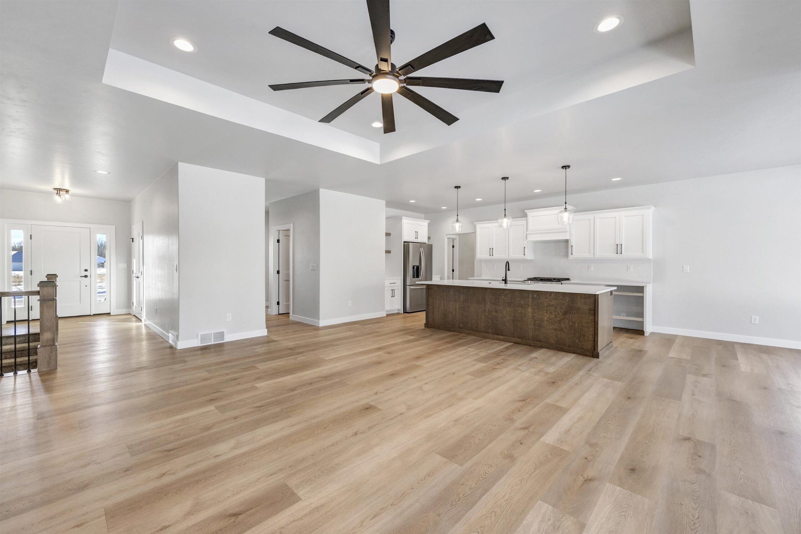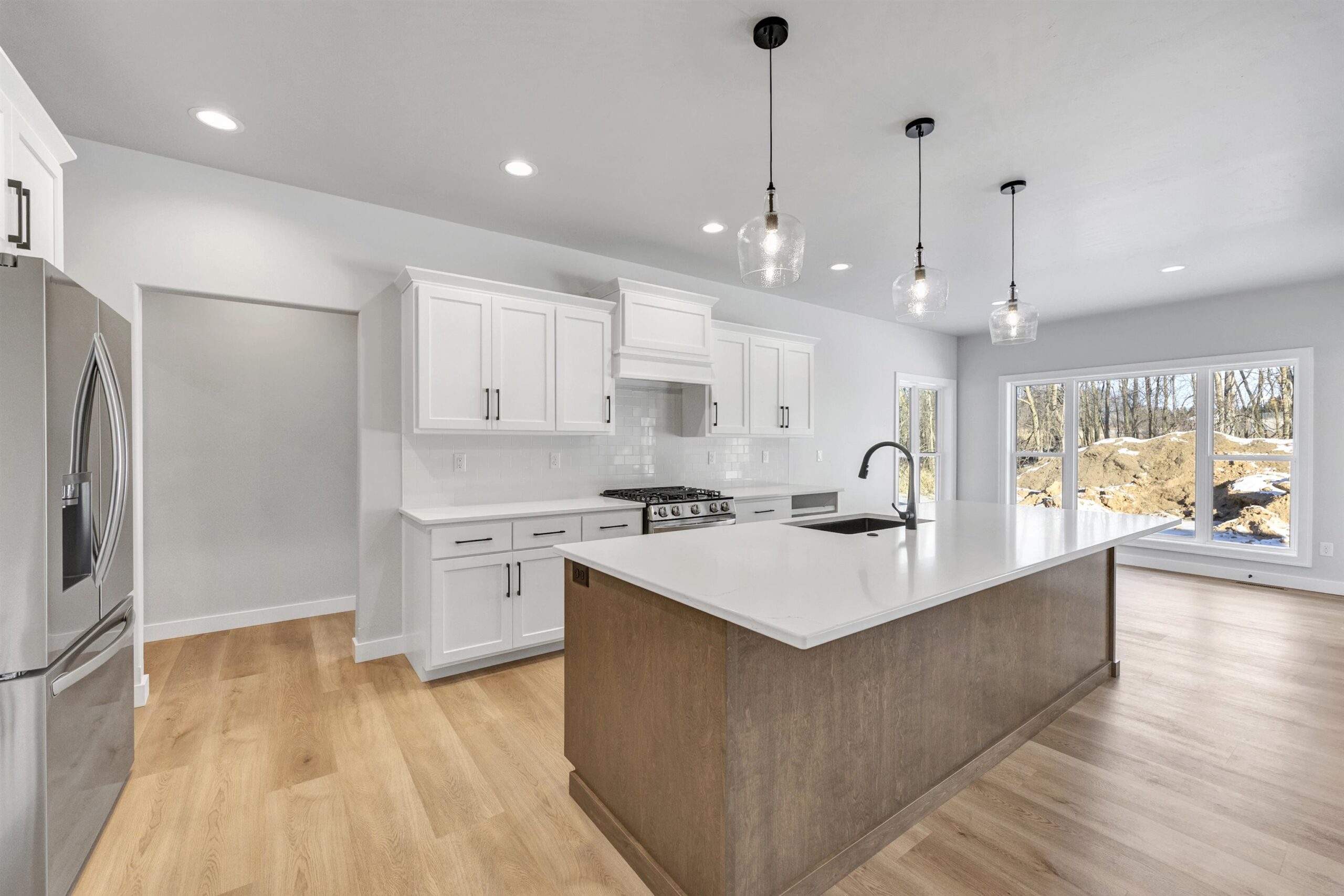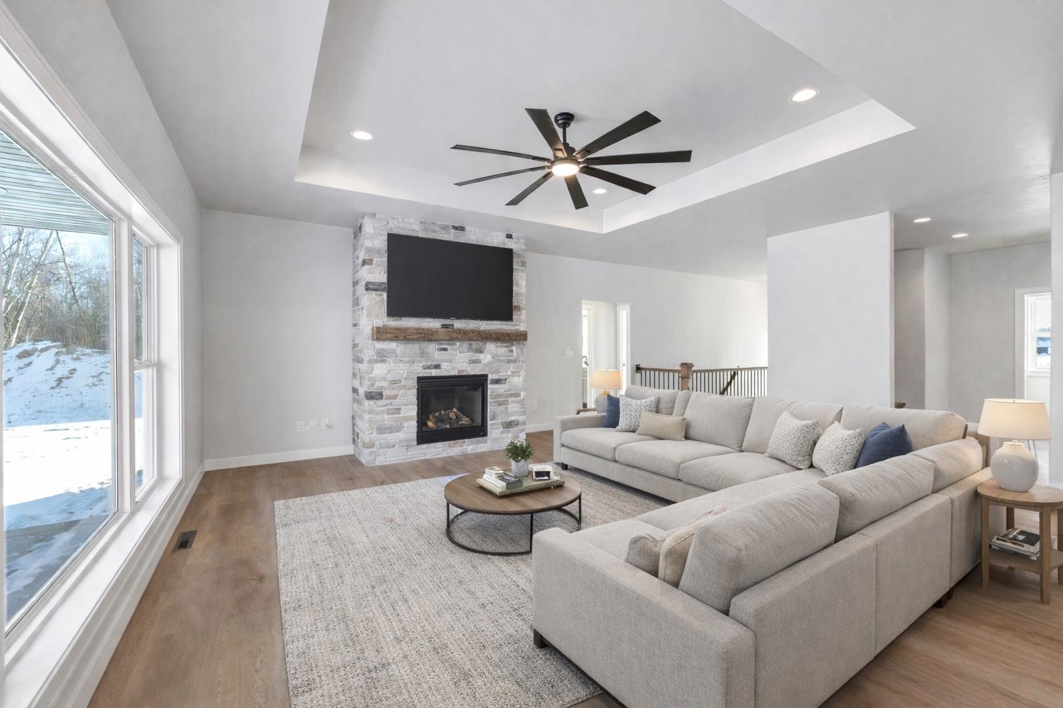 Experience modern living in this brand-new 3 bed, 2.5 bath home located in Howard. The open concept floor plan is filled with high-end finishes and features tray ceilings in both the living room and primary suite. A beautiful stone fireplace anchors the living room, adding character and warmth. The main level includes a spacious primary suite with a tile shower in the en-suite bathroom, convenient first-floor laundry, and a layout perfect for entertaining. The kitchen offers a walk-in pantry for added storage and functionality. Step outside to the covered back patio and enjoy the beautiful lot and 3-stall attached garage. The lower level includes an egress window, allowing for future expansion and added living space! Driveway and final grade to be completed in spring.