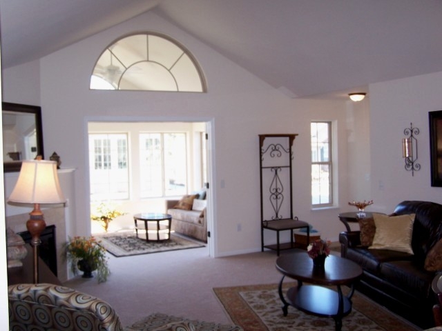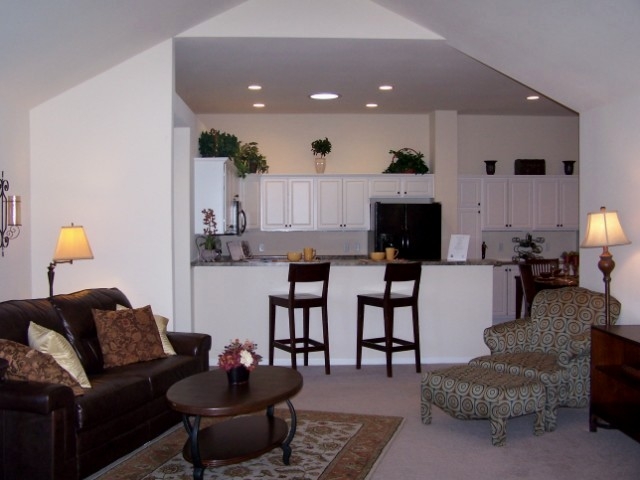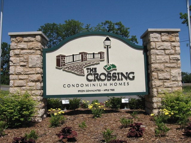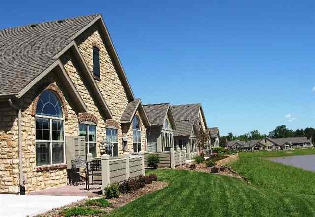 Abbey MODEL with rare FULL BASEMENT! Single-story condo home that is sure to impress. European country stone exterior, cathedral ceilings, 4 season veranda with sunny SW exposure. This home features loads of white cabinetry, tubular skylight, black appliances, pretty two-panel doors with classy matte black door hardware (and faucets), durable VCT "wood" flooring. Walk-thru main bath. Stamped concrete patio. Extra deep garage plus tons of main floor storage closets! Fully equipped clubhouse and pool.