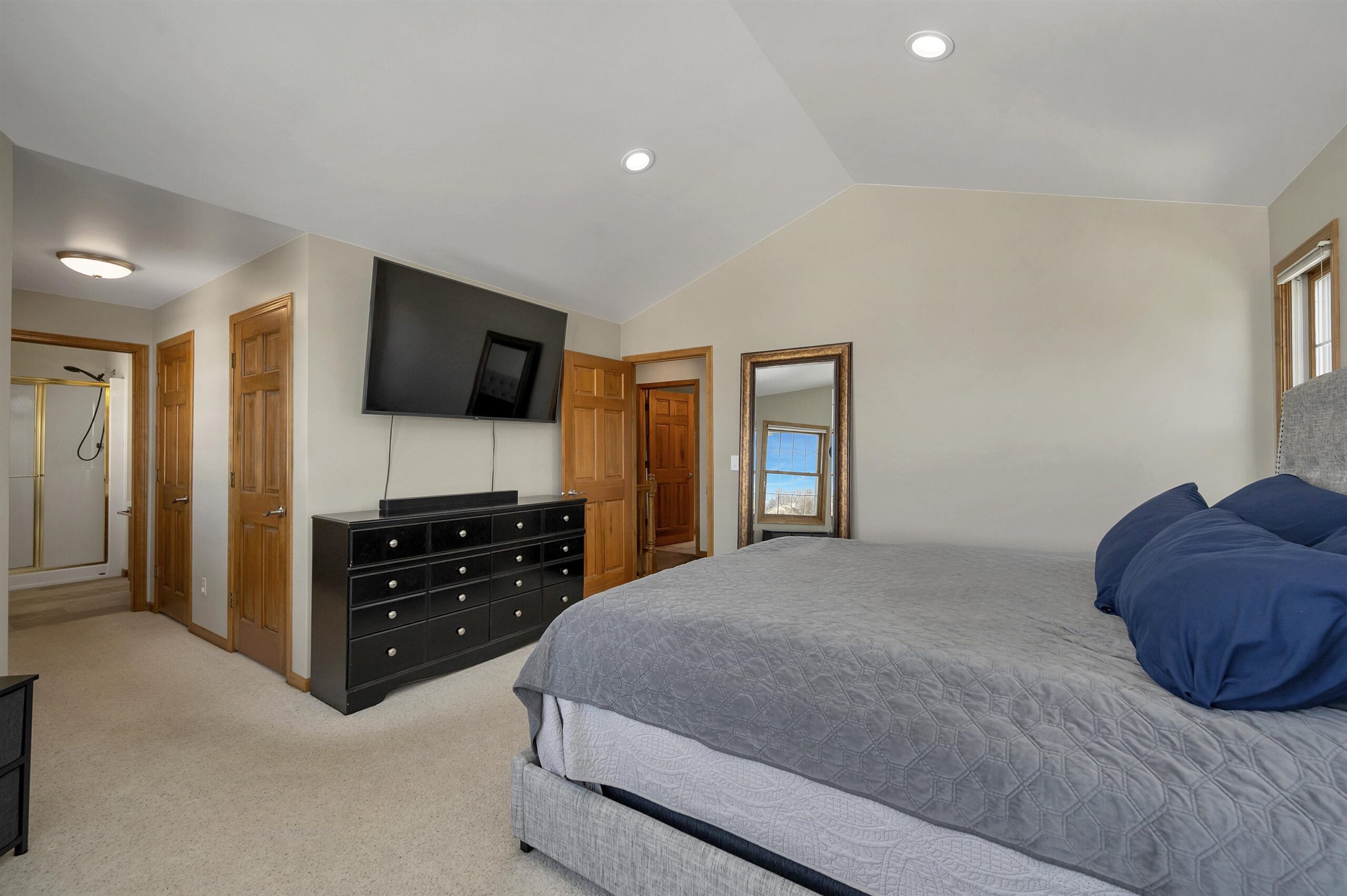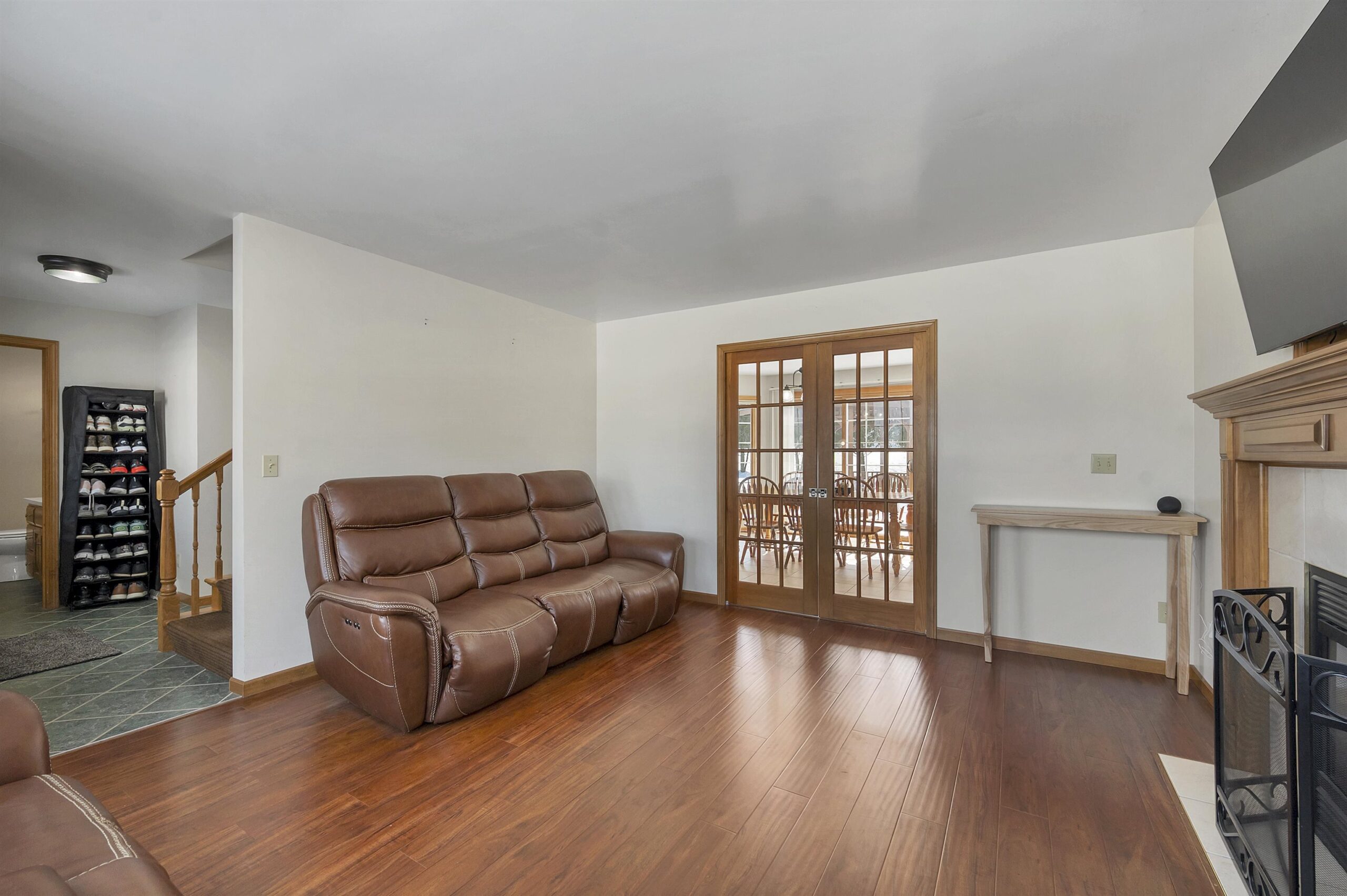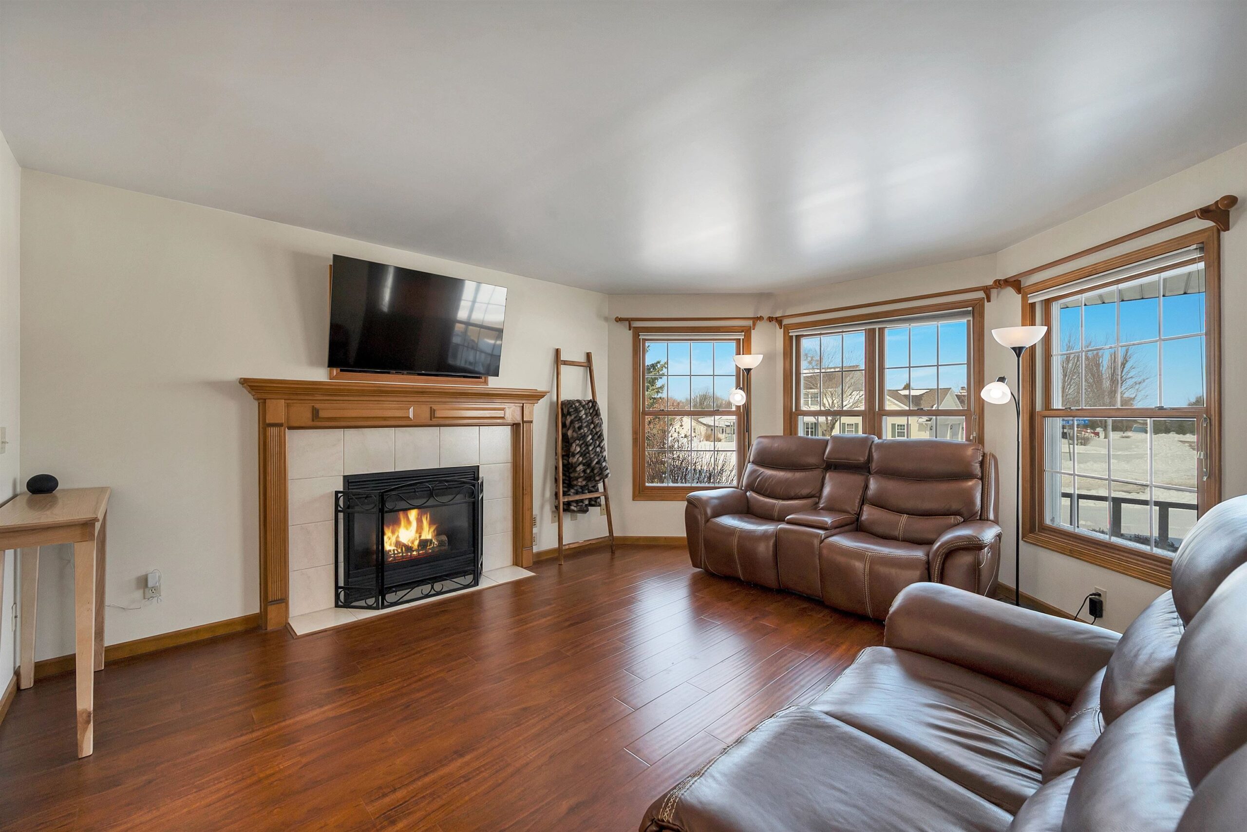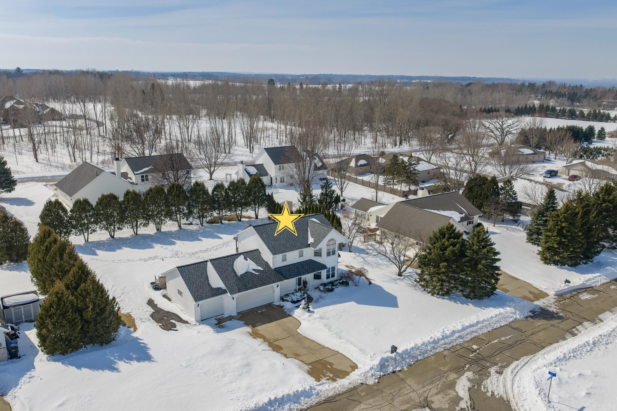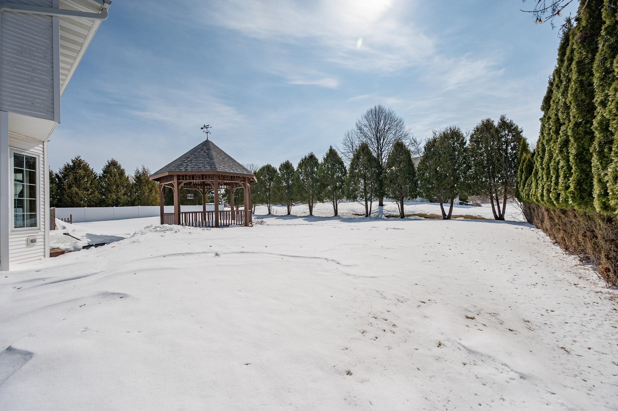 Spacious 2-story home located in a quiet setting! The main level features a large kitchen with a generous dining area, perfect for everyday living and entertaining. The living room offers a cozy fireplace and large windows that fill the space with natural light. Enjoy the convenience of first-floor laundry. The finished lower level includes a large rec room, wet bar, and half bath, ideal for entertaining or relaxing movie nights. Upstairs you’ll find three spacious bedrooms, including a primary suite with a walk-in closet and private ensuite bathroom. Step outside to a beautiful yard with mature trees, a patio, and gazebo, ideal for relaxing or summer gatherings. Additional highlights include a 3-stall garage with basement access. Square footage per Matterport.