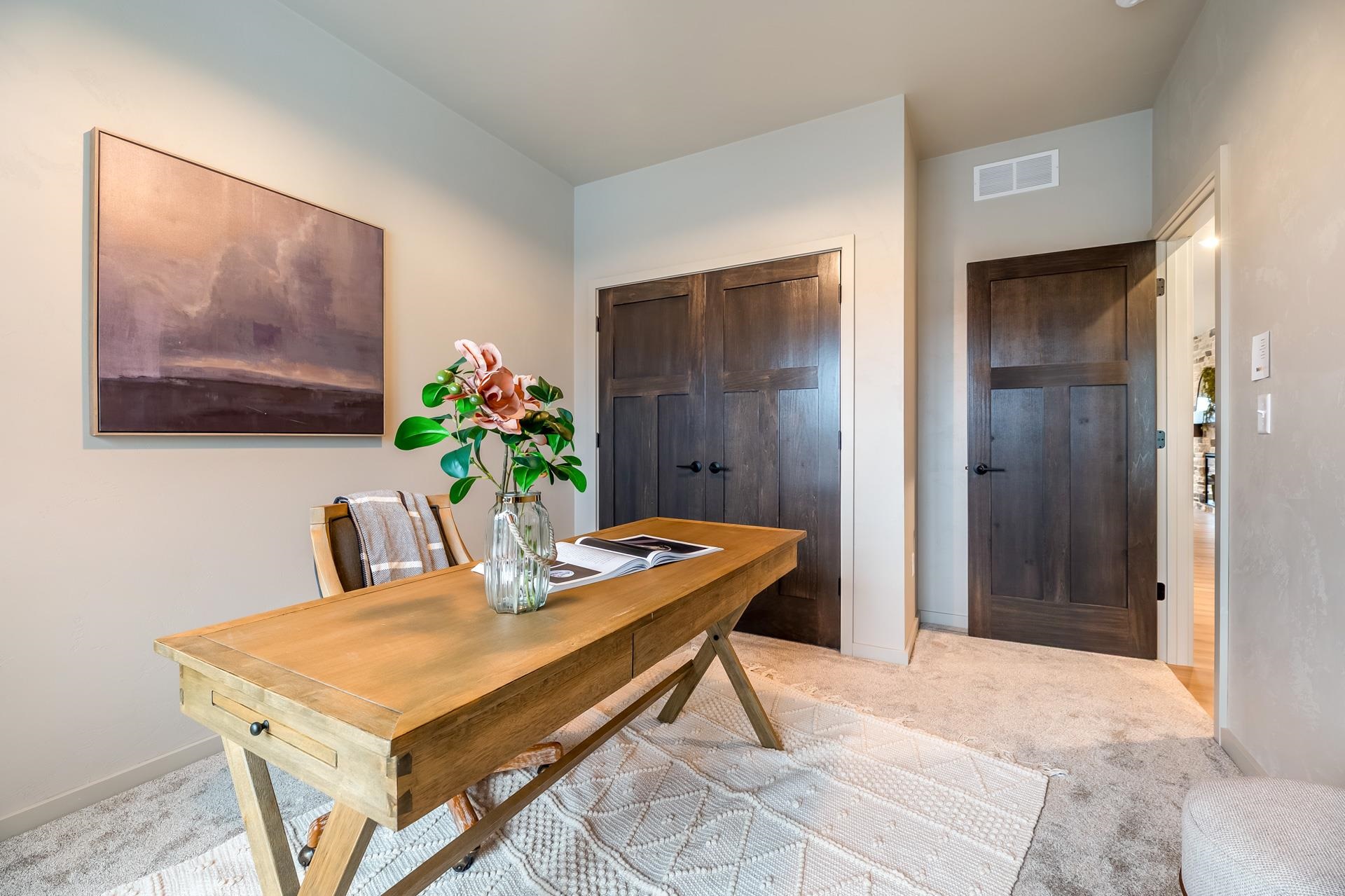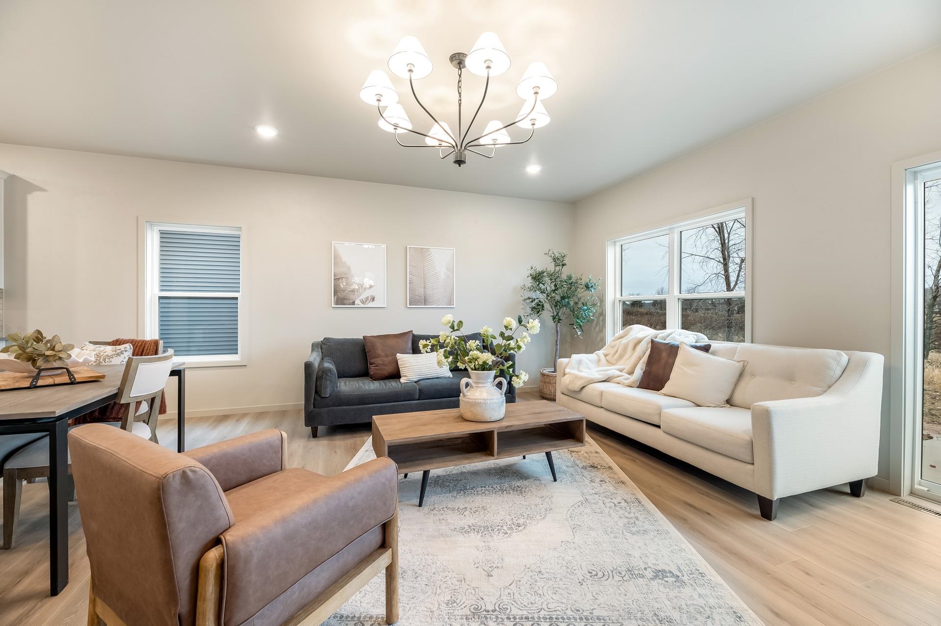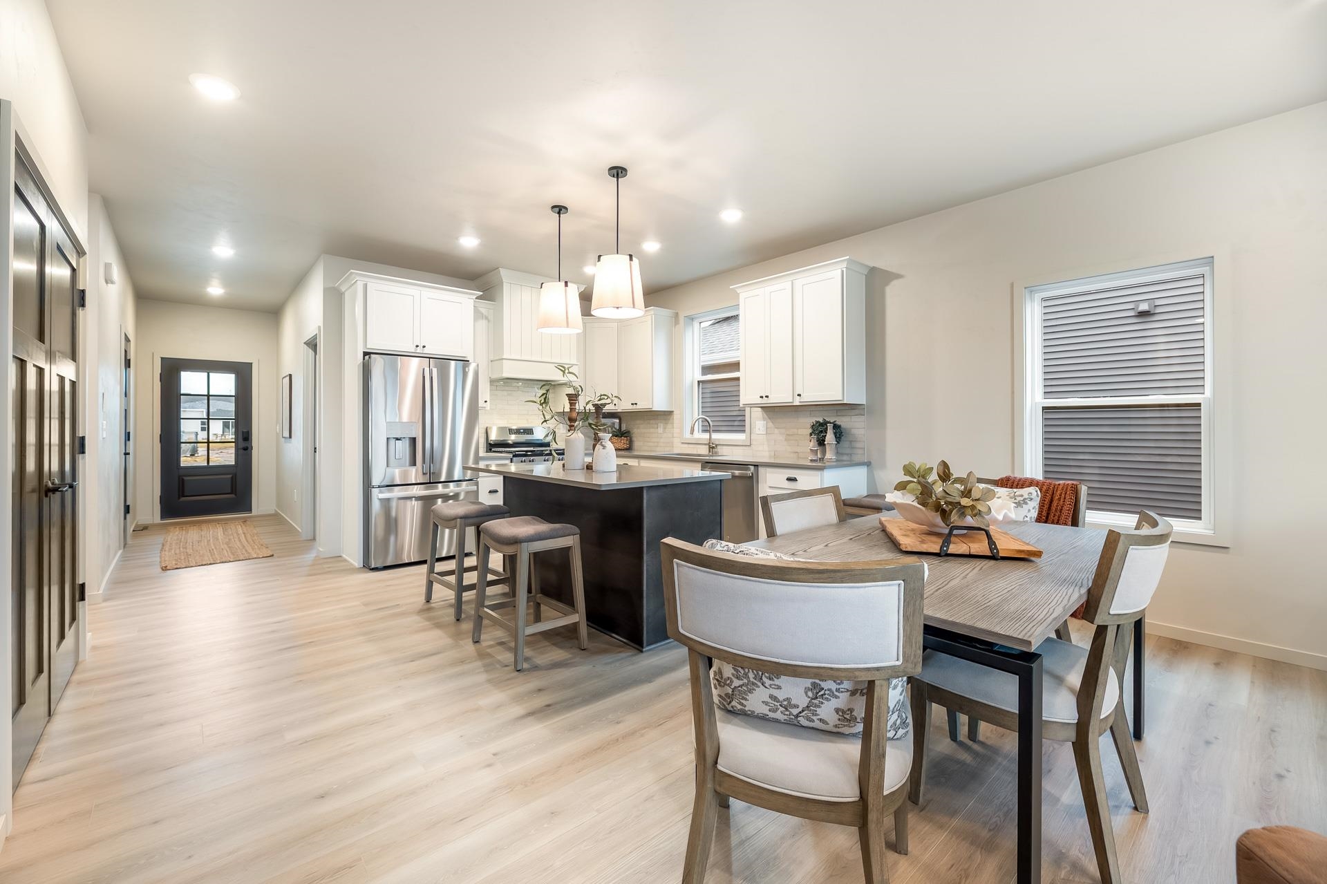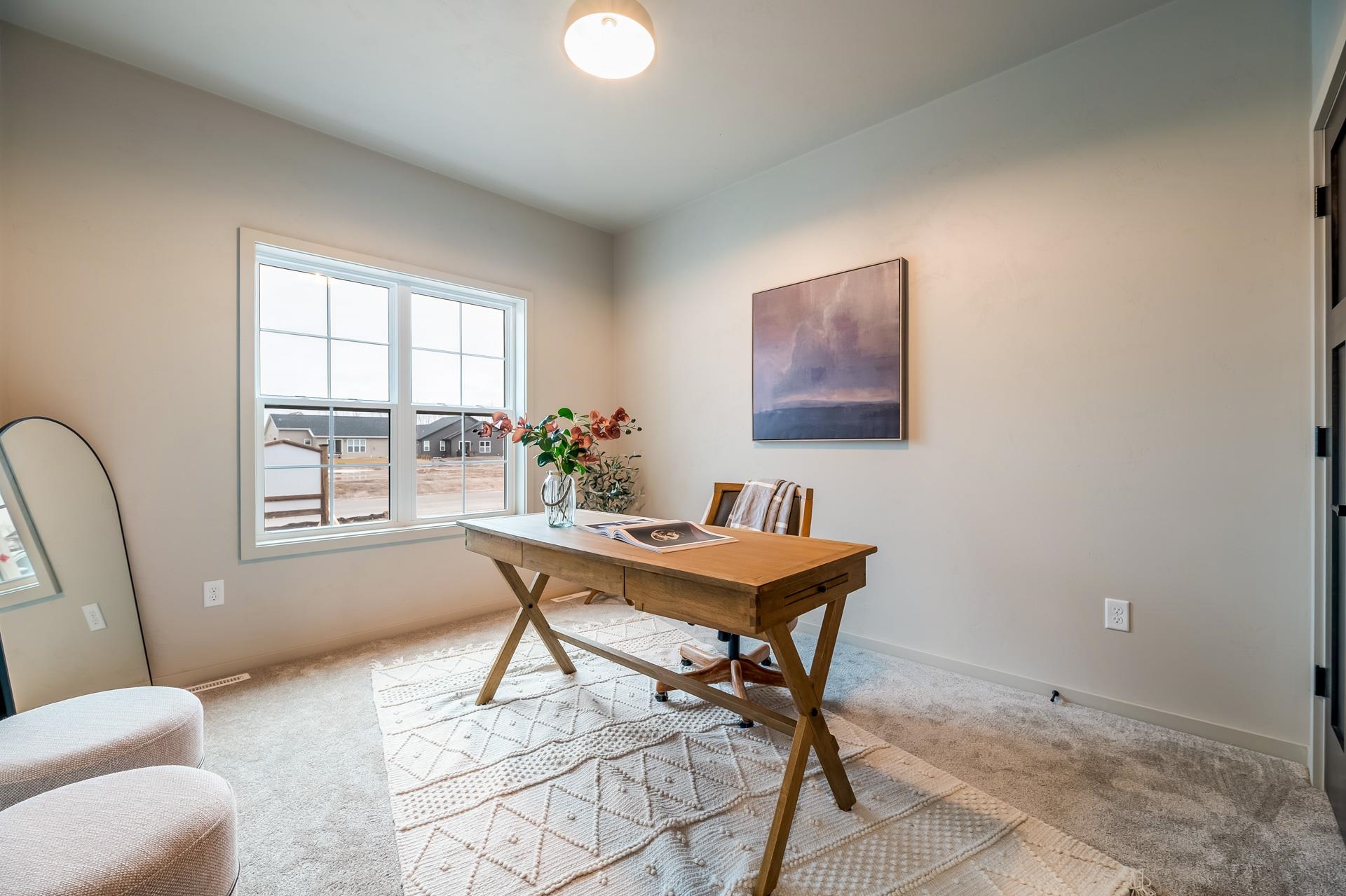 BUILDING A SIMILAR PLAN IN THE AREA, CONSIDER A TOUR! Featuring a beautiful combination of soft beige and grey tones. The primary suite offers a standalone tub and clay tile accents. The open-concept interior boasts LVP flooring, premium carpeting, and a 36" electric fireplace with a stone surround. The gourmet kitchen is equipped with Fossil Grey Quartz countertops, white and graphite cabinetry, and GE stainless steel appliances. Built for efficiency, the home includes 2x6 construction, R-50 insulation, high-efficiency HVAC system and heated garage. Smart home features like a Ring doorbell, smart lock, and programmable thermostat are also included. The design is finished with custom trim and paint. Located near Badger Sports Park, extensive trail system, restaurants, shopping and more!