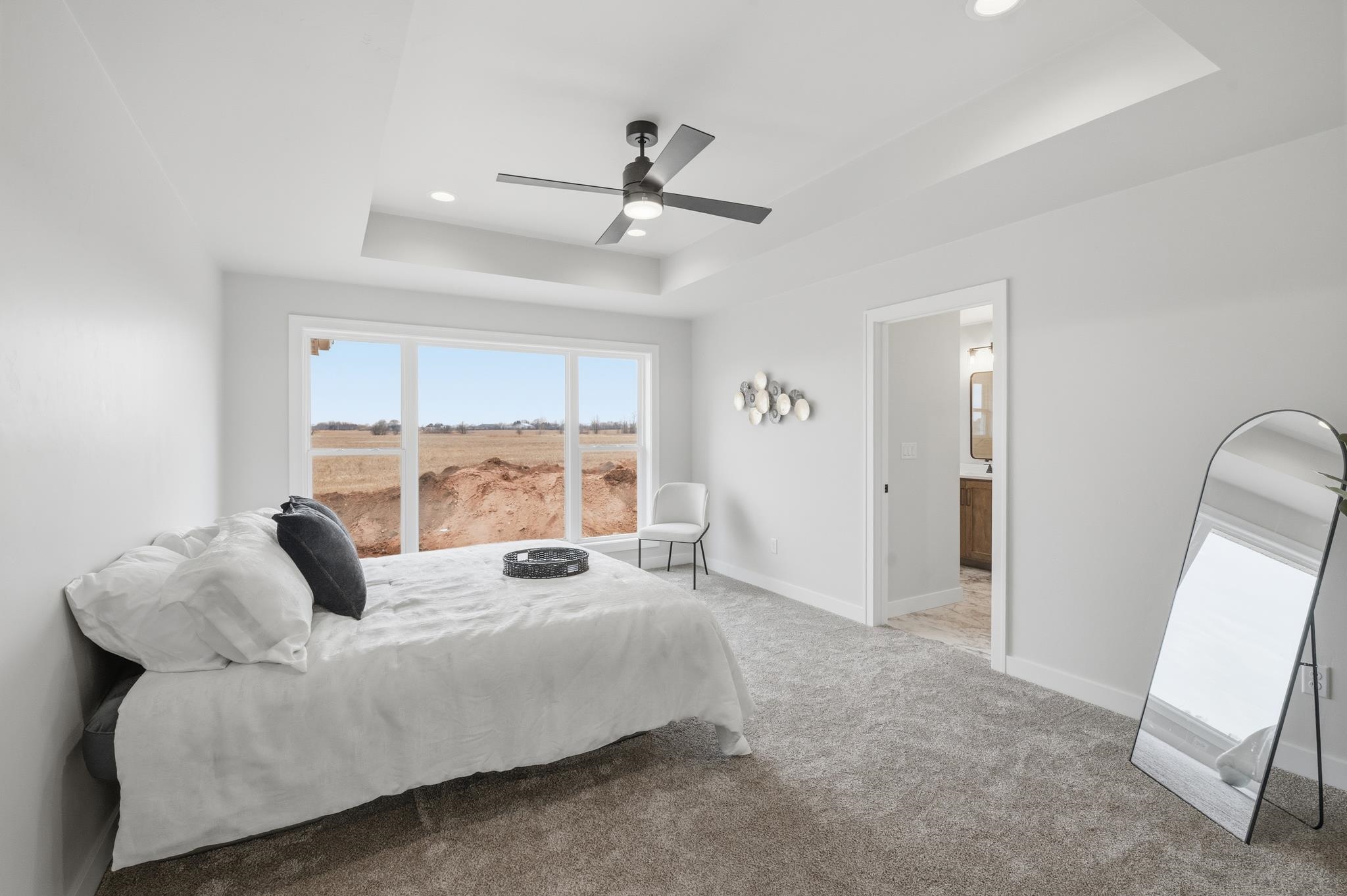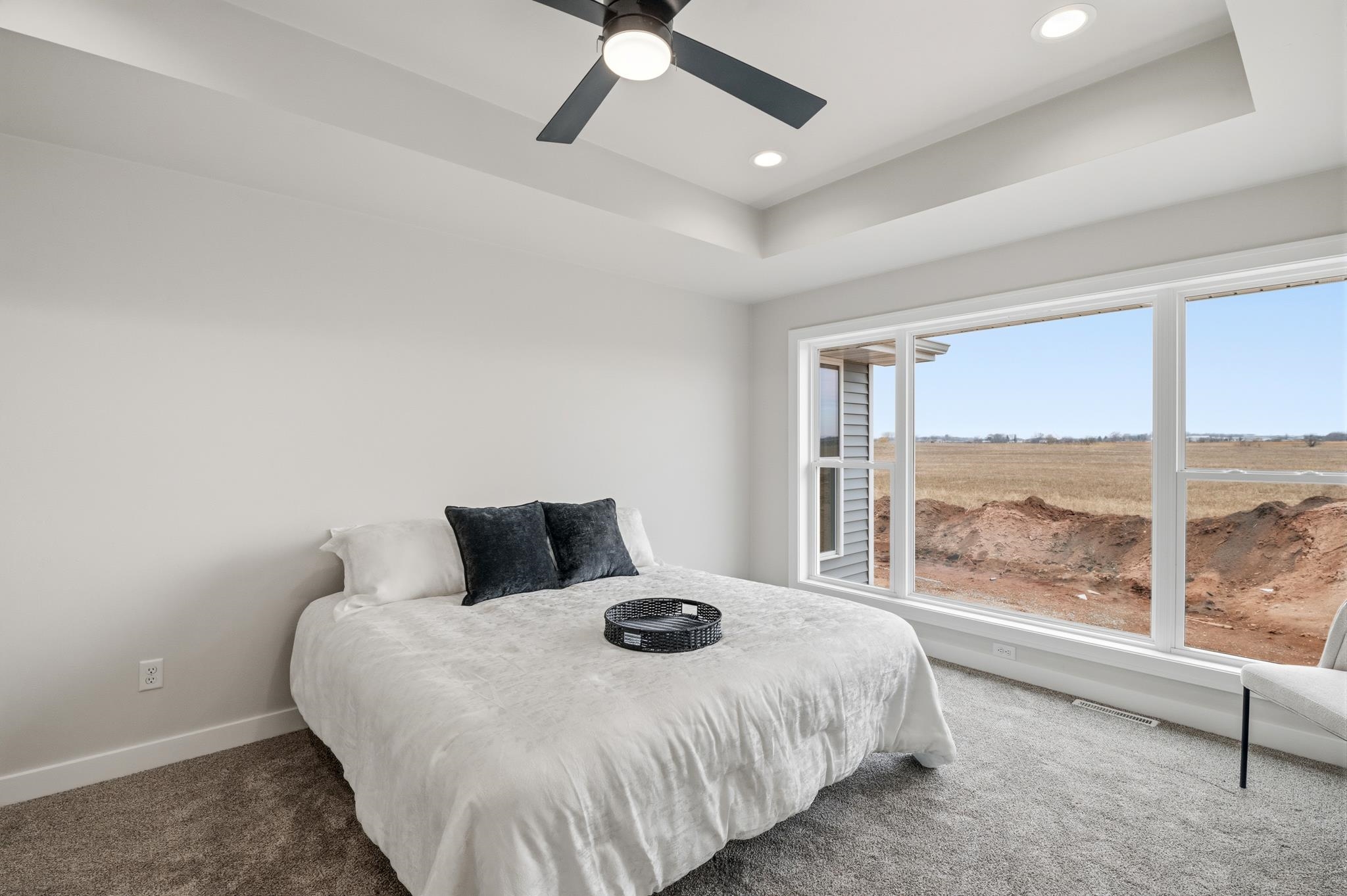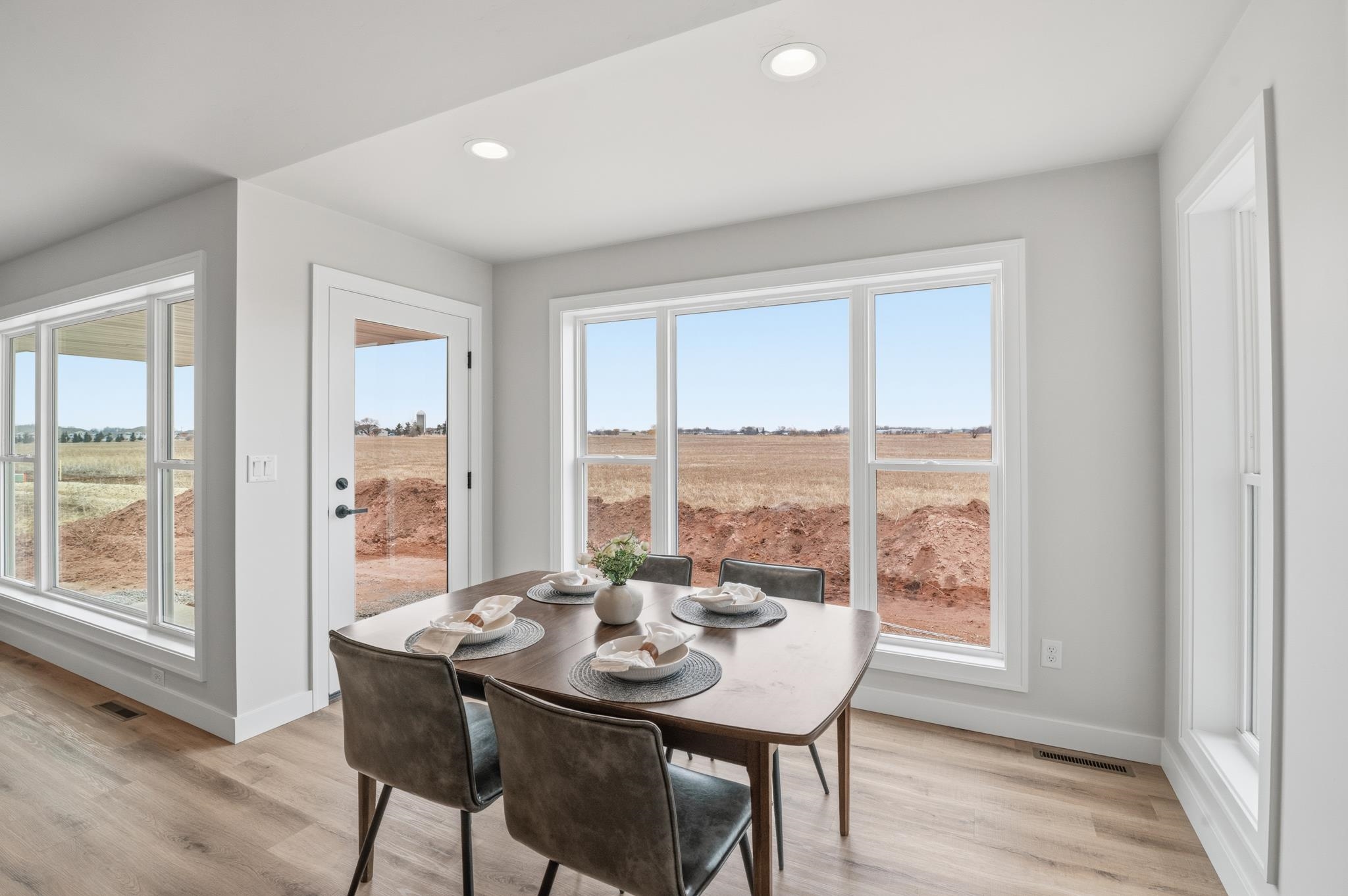 Well-crafted home with an abundance of natural light. This design seamlessly connects the kitchen, dining & great room, making it ideal to enjoy quality time together. The kitchen is a delight, boasting a 10’ island, tiled backsplash, gas range, floating shelves and walk-in pantry. Whether preparing meals or hosting, this space offers functionality & style. Covered patio is perfect for year-round grilling & relaxing. Cathedral ceilings, gas FP w/floor-to-ceiling stone & quartz counter/vanity tops complete this home. Primary suite offers tiled walk-in shower & glass door already installed. Ample space to create the perfect setting for comfort & relaxation. Home currently backs to a farm field. Broker owned.