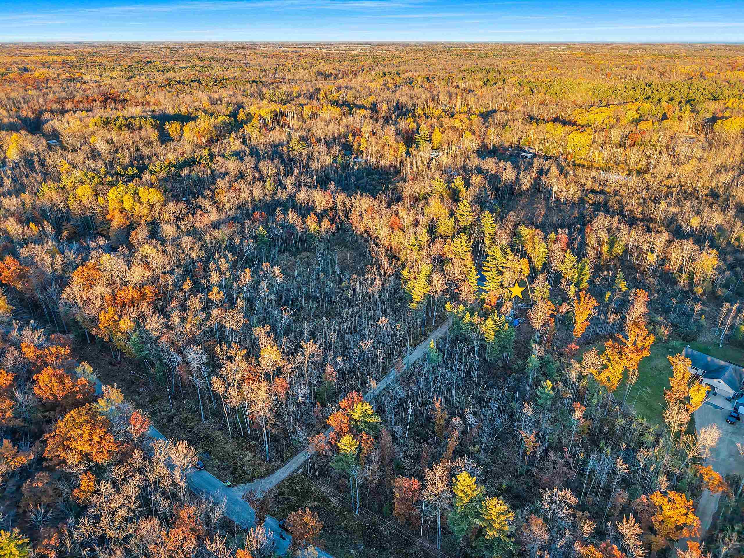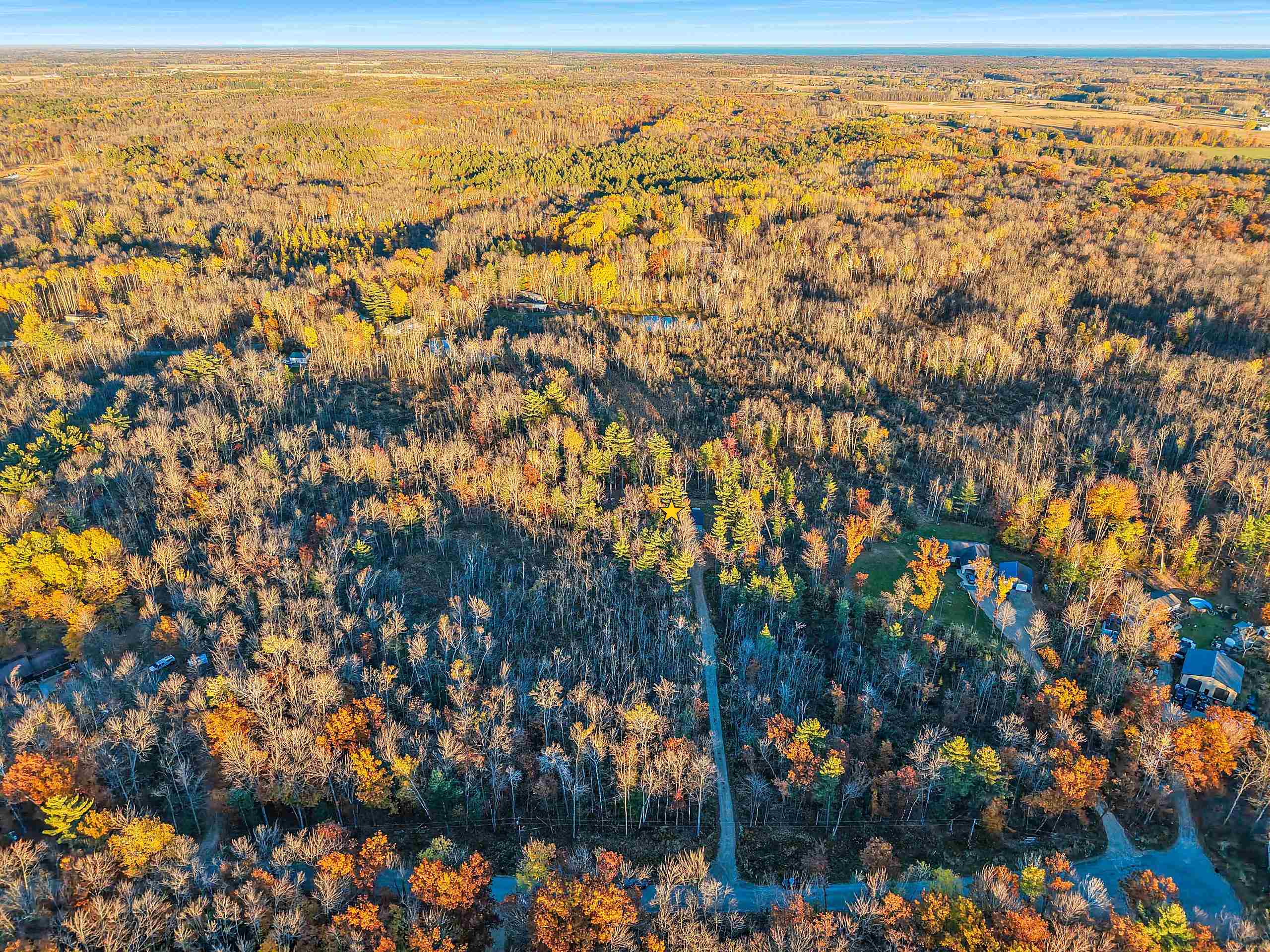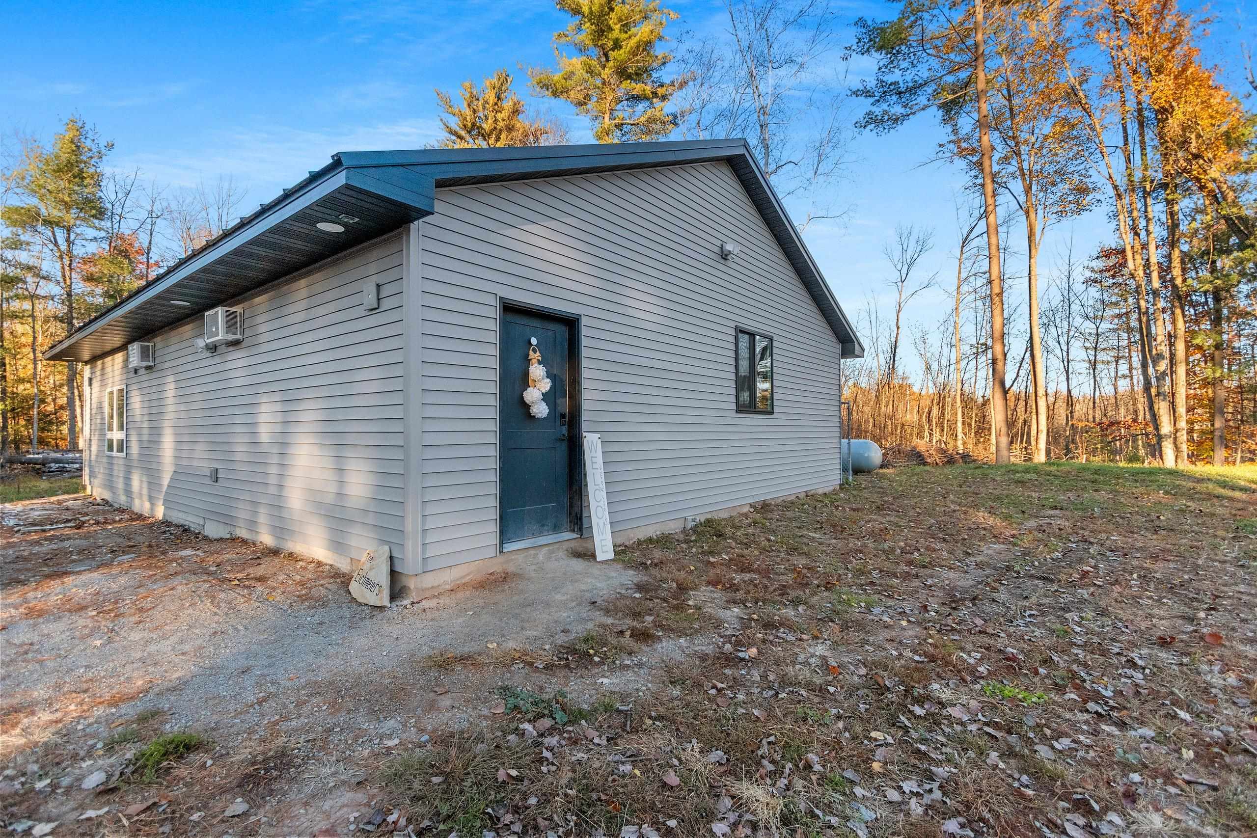 Beautiful 6.5-Acre Wooded Lot featuring a unique garage conversion into a spacious 40x30 studio-style living space. Includes a full kitchen, full bath, well, septic, and heating—all fully insulated and move-in ready. To the northwest, the property has been cleared and prepared for a future single-family home. The existing structure could easily be converted back to a garage, with three front garage door rough-ins and one rear rough-in already in place. A perfect opportunity to live on-site while you build or enjoy as a versatile workshop, garage, guest quarters, or retreat. Flooring is concrete with floor drain.