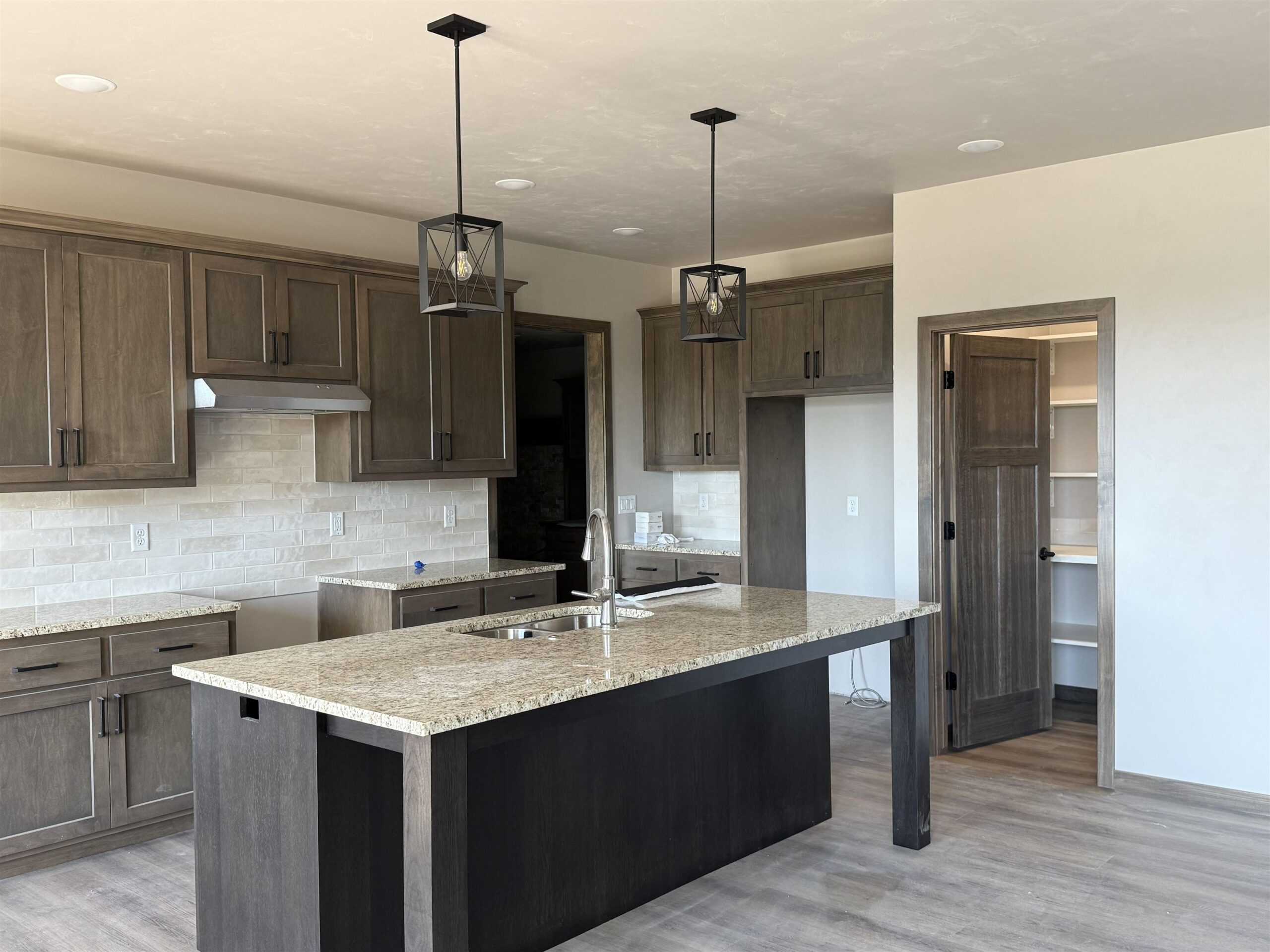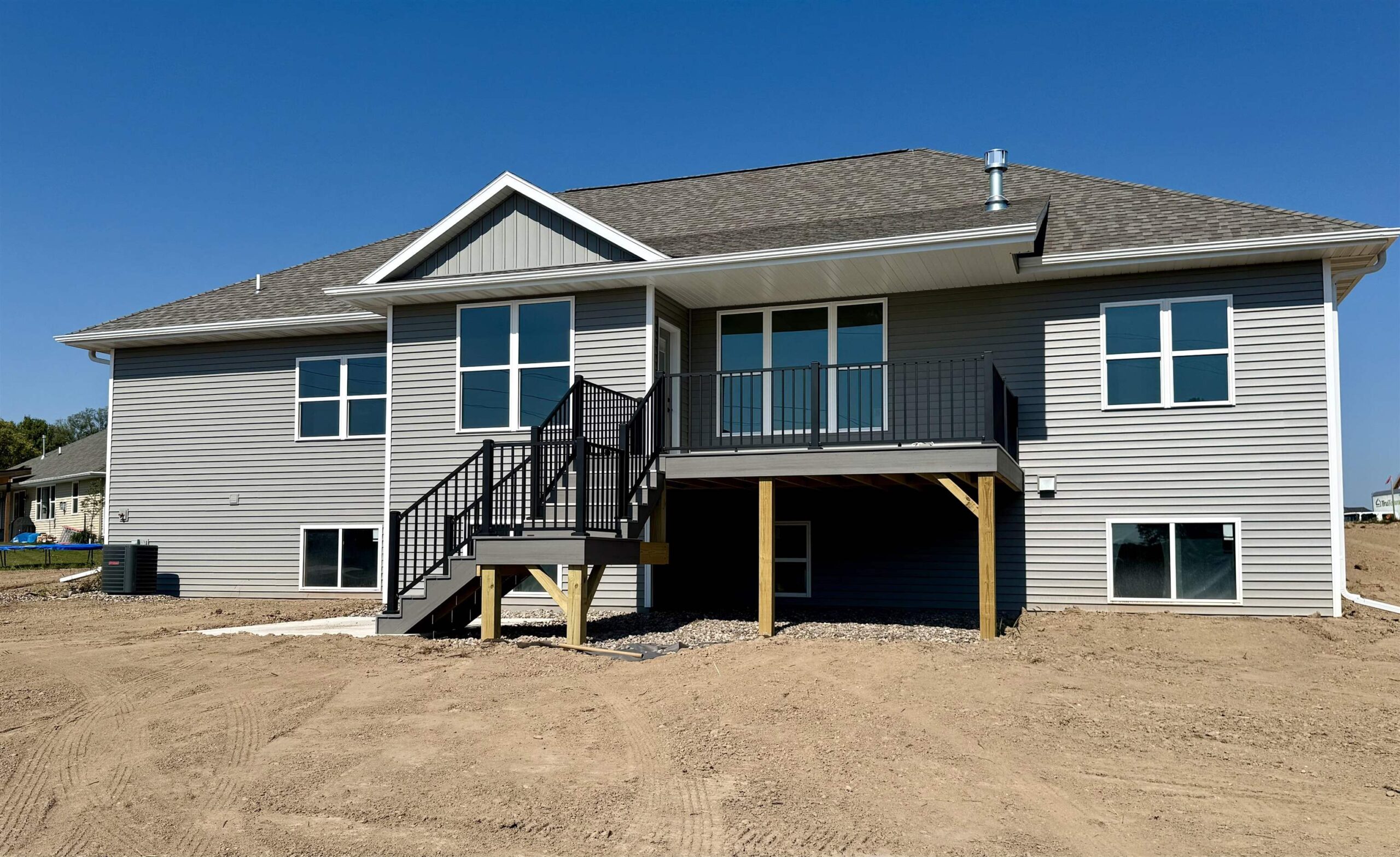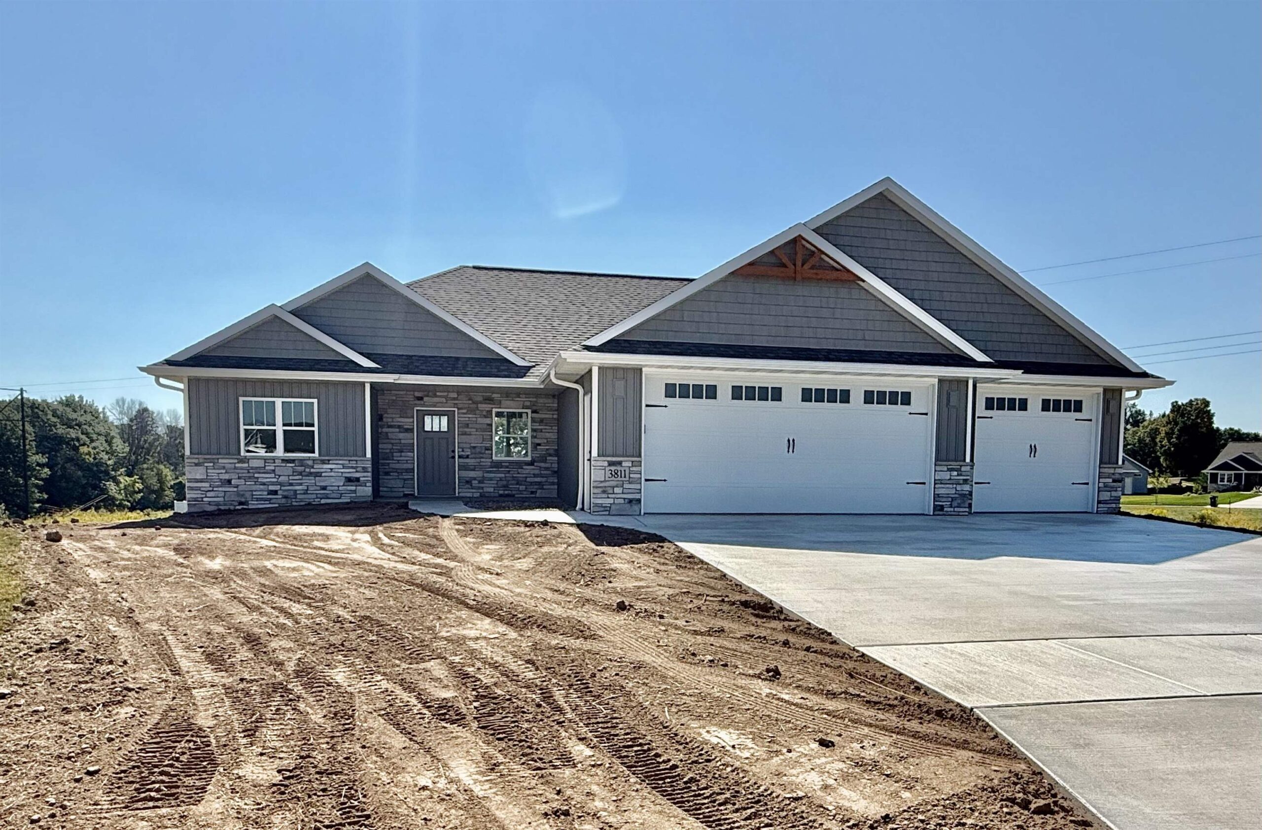 Quality, Focus on Energy, Open concept craftsman style Ranch. Split Bed. Coffered ceiling with wood beams. All no step entries. LVP floors. Granite countertops and lg. island. Walk in pantry. Backsplash tile. Under cabinet lites Step tray in Mast.Bedroom. Lg. walk in closet. Dual sinks mast. bath featuring walk in tile shower. Gas log fireplace with floor to ceiling stone. 9' ceilings. Lg. partially covered deck 12x16 made from PVC composite. Aluminum Rail. Poured concrete patio at bottom of deck steps. 8" floor trusses. 4 lg. exposed windows in lower. Bathroom and 2nd zone heat duct Rough in for future finishing. Electric hybrid hot water heater for energy efficiency. Finished garage, plastered, painted and trimmed. Lg 3/4 acre lot on cul-de-sac backing up to trail. Seeded lawn.