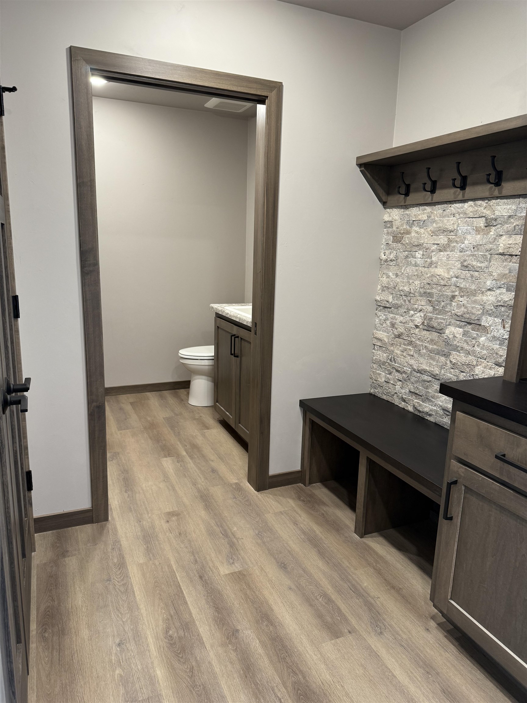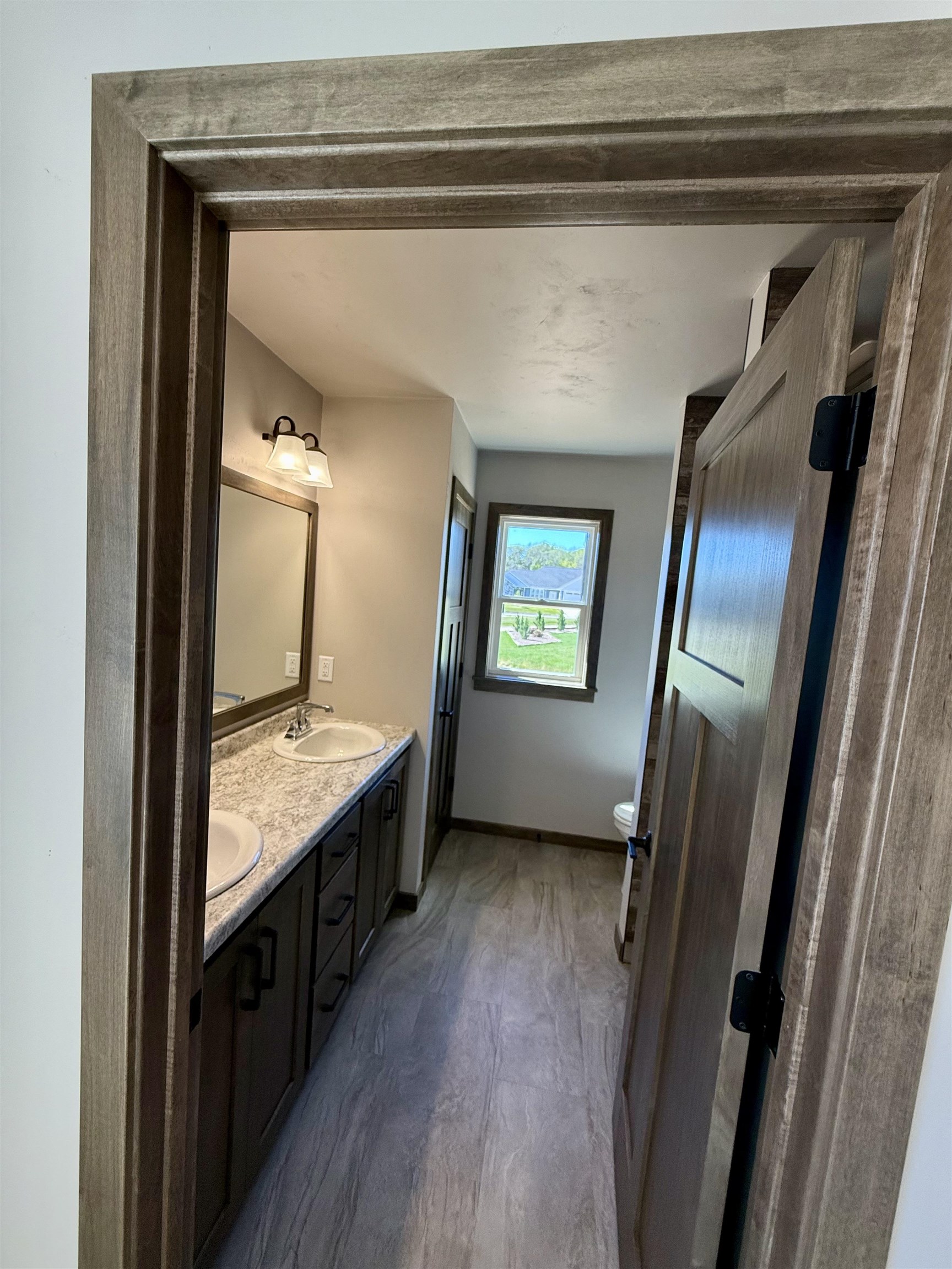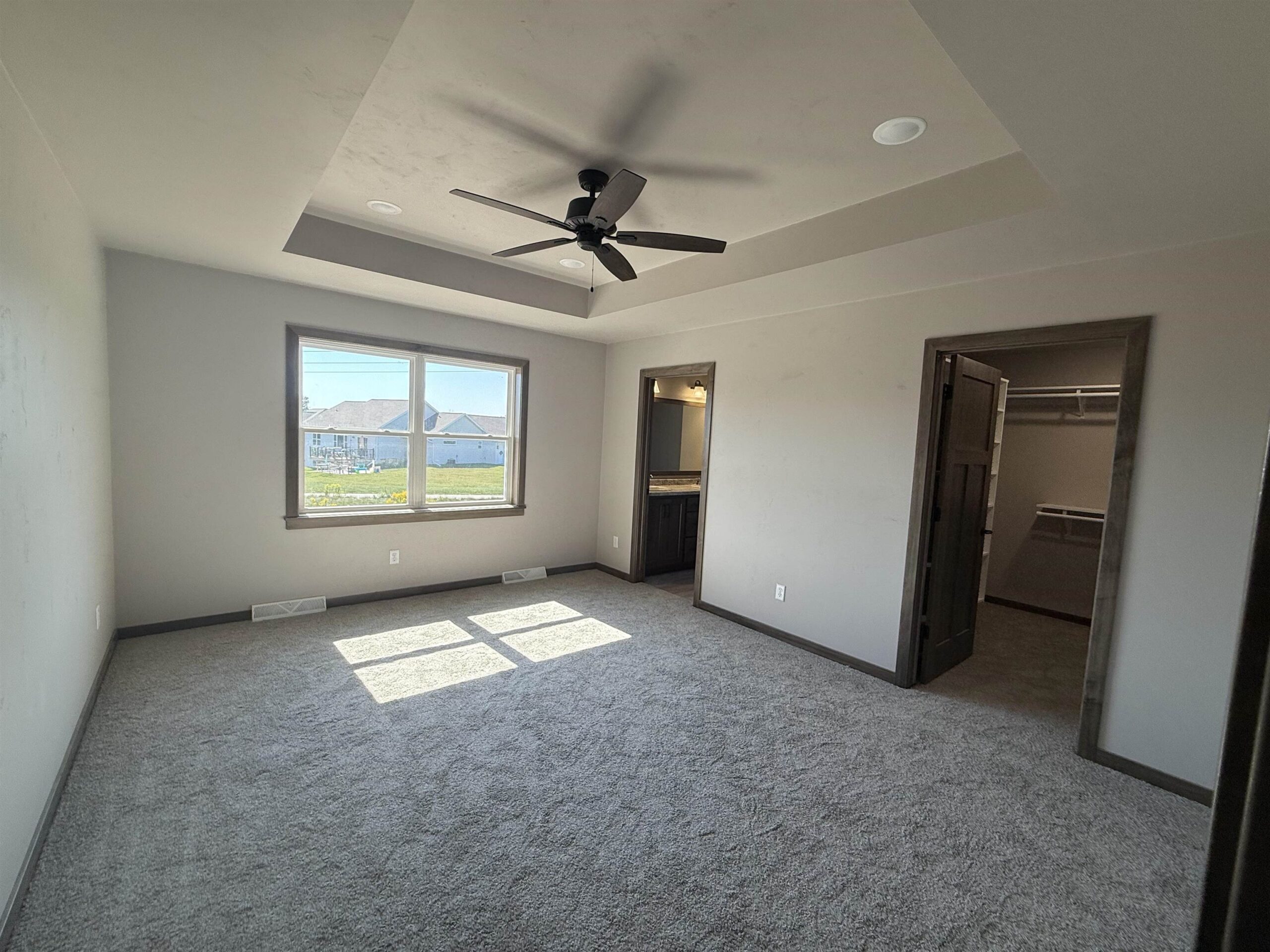 Quality, Focus on Energy, Open concept craftsman style Ranch. Split Bed. Coffered ceiling with wood beams. All no step entries. LVP floors. Granite countertops and lg. island. Walk in pantry. Backsplash tile. Under cabinet lites Step tray in Mast.Bedroom. Lg. walk in closet. Dual sinks mast. bath featuring walk in tile shower. Gas log fireplace with floor to ceiling stone. 9' ceilings. Lg. partially covered deck 12x16 made from PVC composite. Aluminum Rail. Poured concrete patio at bottom of deck steps. 8" floor trusses. 4 lg. exposed windows in lower. Bathroom and 2nd zone heat duct Rough in for future finishing. Electric hybrid hot water heater for energy efficiency. Finished garage, plastered, painted and trimmed. Lg 3/4 acre lot on cul-de-sac backing up to trail. Seeded lawn.