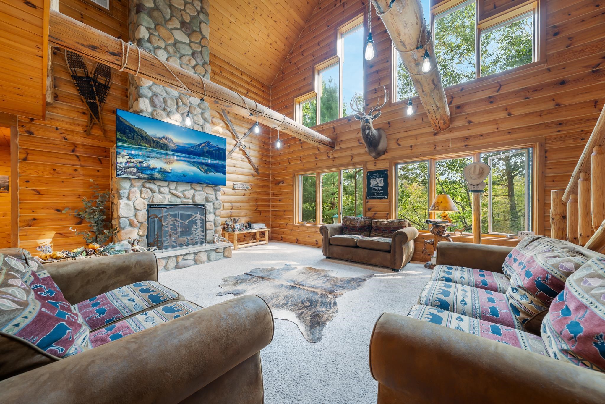 Rustic log cabin just 17 miles from Green Bay! Tucked on a wooded lot bordering county forest, this retreat feels worlds away yet is a quick drive to city conveniences. Enjoy direct ATV & snowmobile trail access plus a firepit ready for post-ride stories. Inside: soaring ceilings, a loft, gas fireplace, walk-in shower, and an 8’+ walk-out basement ready to finish and stubbed for an additional bathroom. Host Packer game weekends, trail-riding trips, Friendsgiving gatherings, or cozy holiday mornings by the fire. A secluded haven with easy city access—or a prime short-term rental investment—this cabin delivers adventure and charm in every season.