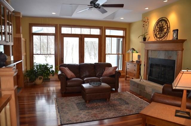 Stunning Craftsman style spacious 5 BR, 4.5+ bath home on 1.29 acres! Quality, custom built home w/premium features such as cherry floors & cabinetry, granite counters, stylish arches, transom windows, etc. GR has wall of windows, FP, great details & sky lites! Fabulous kitchen, brkfst bar, great for entertaining! 4 season porch! 1st fl luxury mstr suite w/sitting area & FP! UL has 2 J&J suites, bonus room! Large rec room in LL & full bath! New carpet! Beautiful landscaping & mature tree line! 4 car!