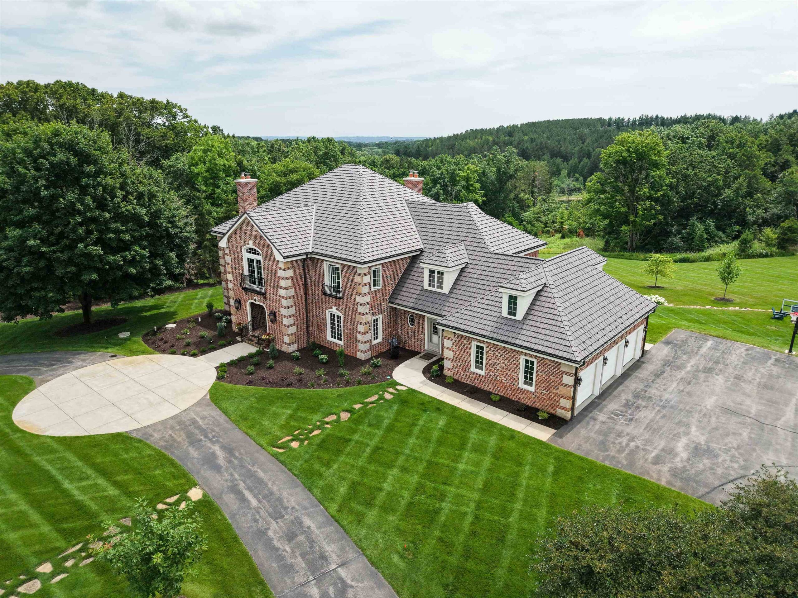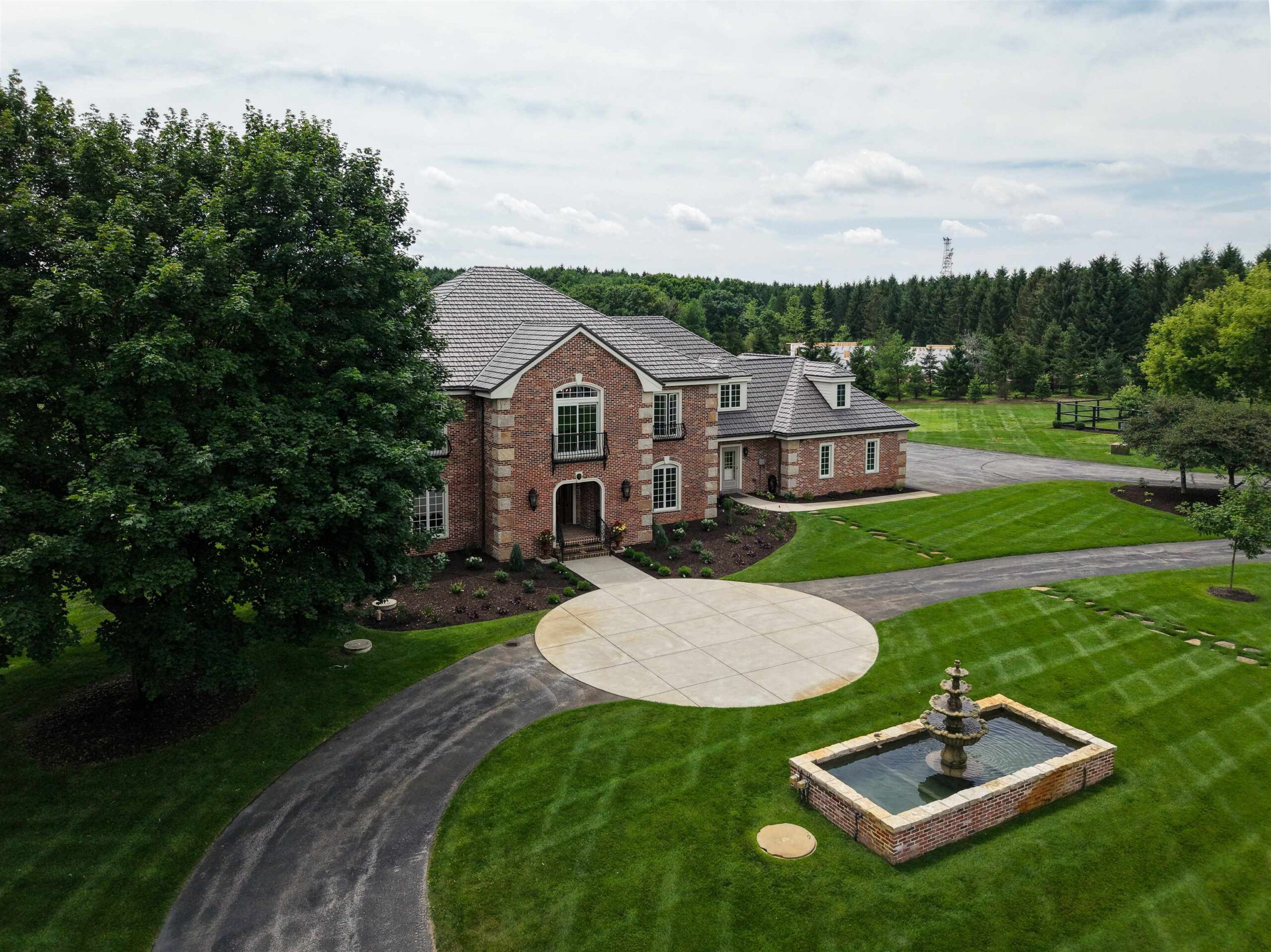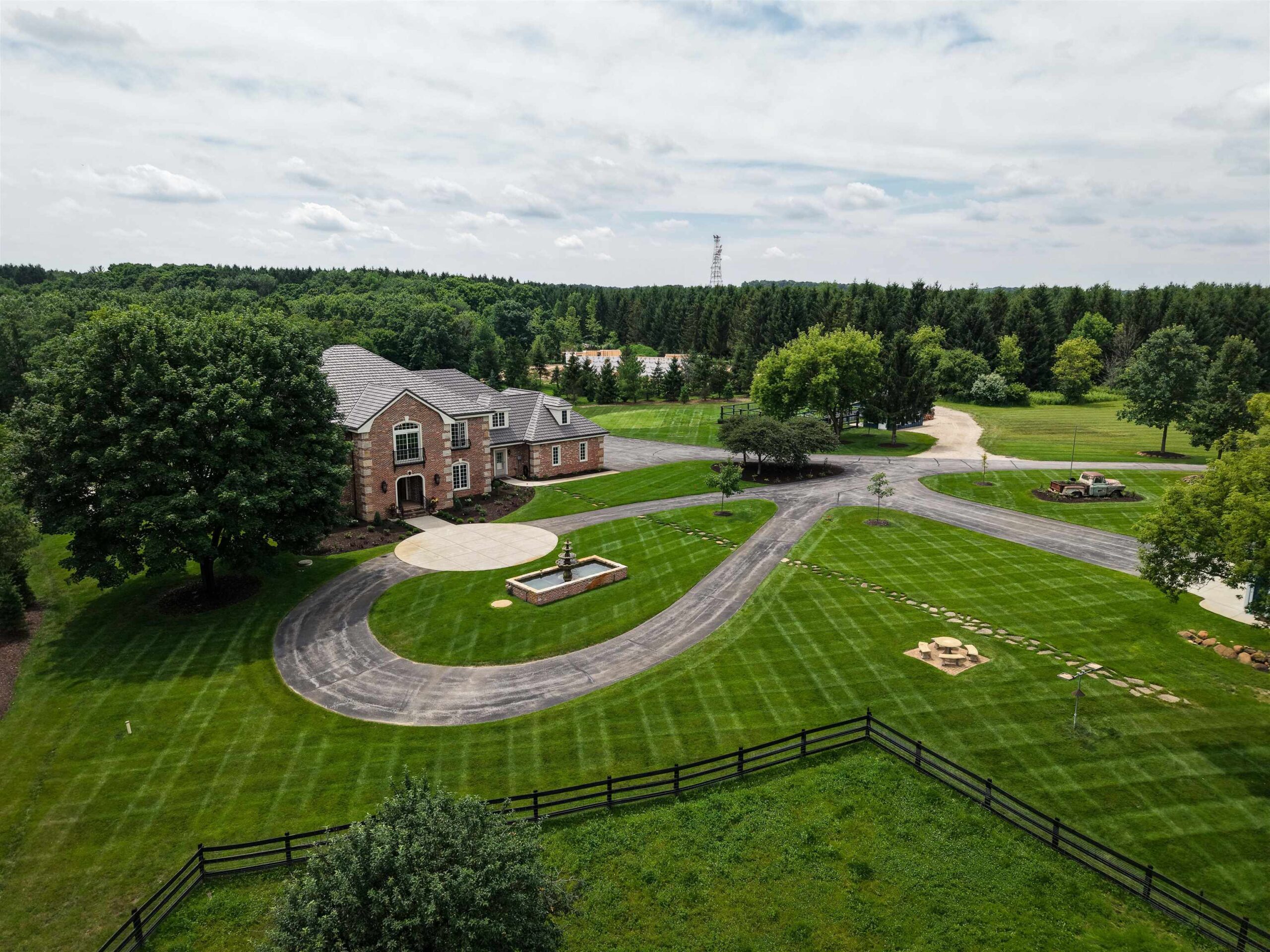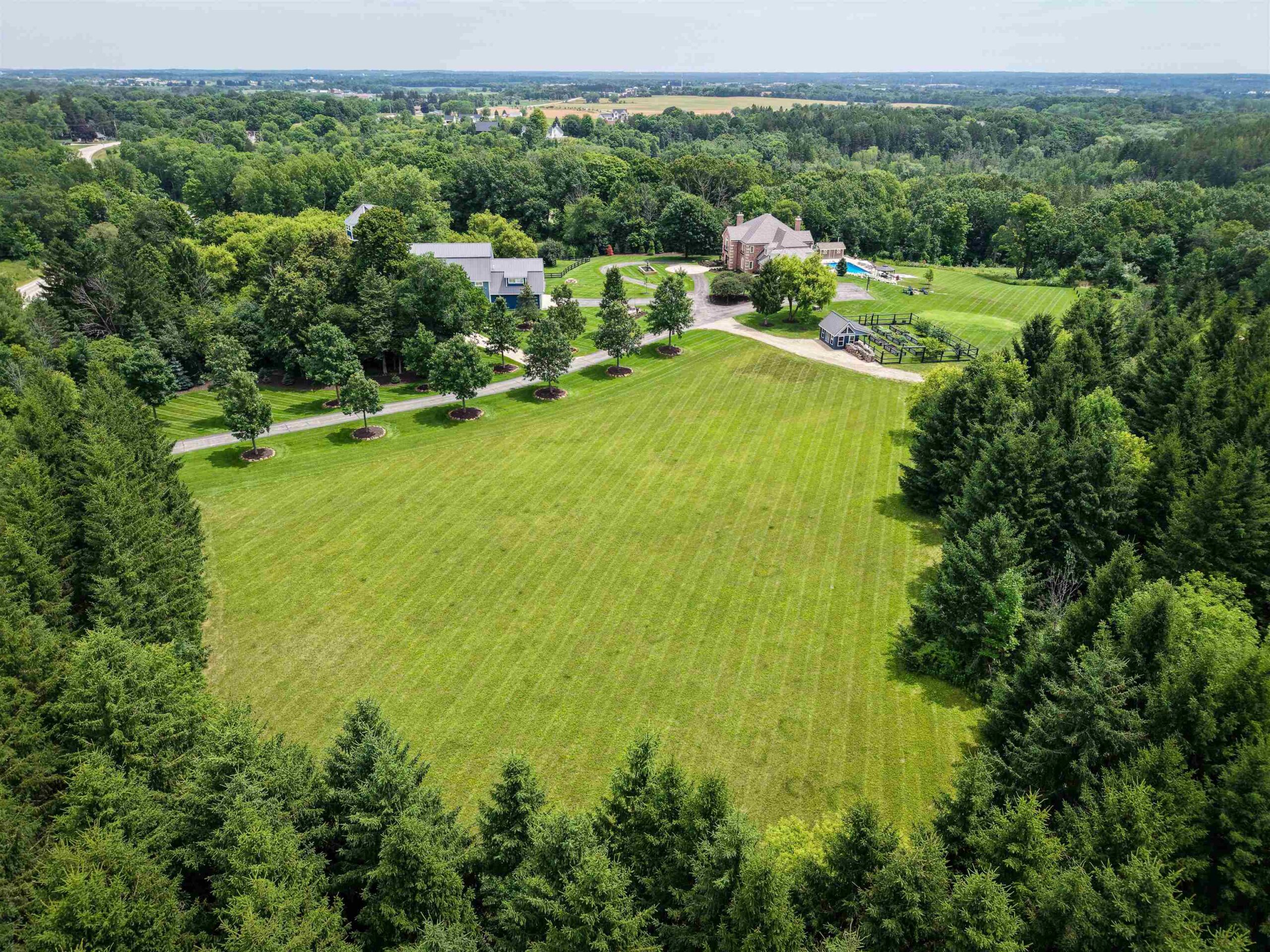 Experience luxury country living in this exceptional estate located in the Slinger School District. Behind a gated fence, this remarkable property offers 7 bedrooms and 7.5 baths with a sophisticated 5-zone heating and cooling system for year-round comfort. Outdoors, enjoy a resort-style heated salt water pool, a beautifully maintained garden supported by an 18-zone sprinkler system, 3 stalls and open pasture with automatic waterers—perfect for hobby farming or animals. A charming guest house provides private accommodations for visitors, while all-metal roofs ensure long-term durability and low maintenance. With a 6-stall garage and space to spread out, this estate blends elegance with function. Seller relocating—rare opportunity to own a premier property of this caliber.
