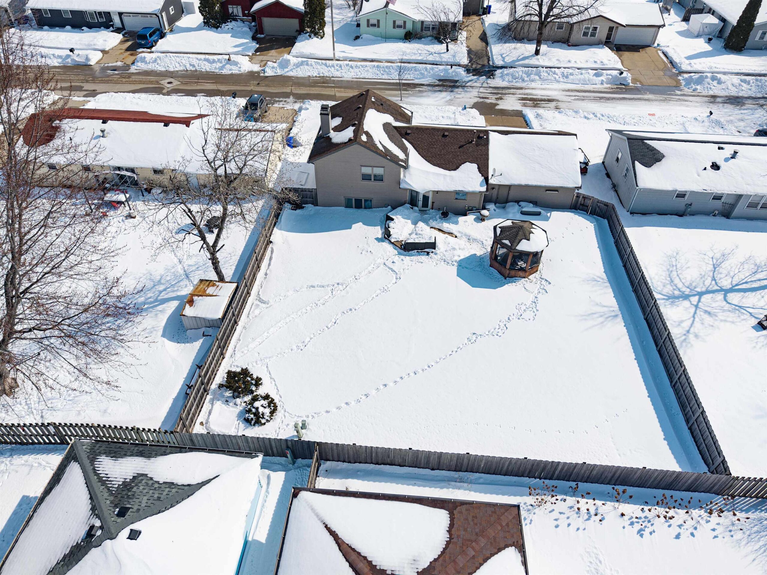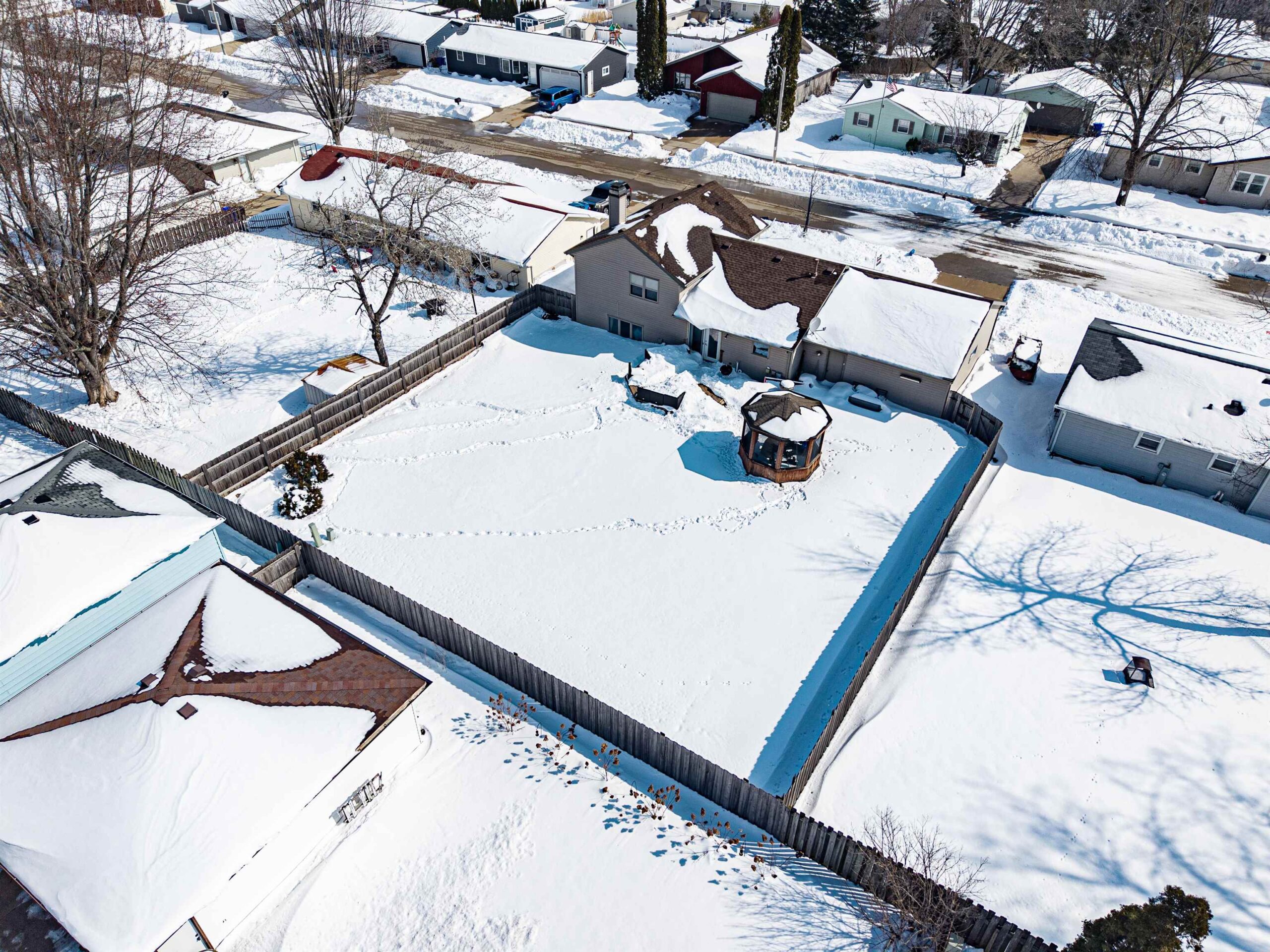 Experience the perfect blend of style and practicality in this 3BD/2BA Quad Level. The open-concept main floor flows seamlessly from the living area to the kitchen and dining area, while the upper-level sleeping quarters offer peace and privacy. The primary bedroom hosts a dual-entry bathroom access and a walk-in closet, and a second upper-level bedroom with walk-in closet. In the lower level is a large family room with wood fireplace (Sellers have never used the fireplace), plus a third bedroom and full bath with a walk-in shower. Complete with an attached 2-car garage, fenced in backyard, and gazebo. This home is designed with great usable space! Per Seller: New A/C and Furnace (2019), Fenced Yard (2021)