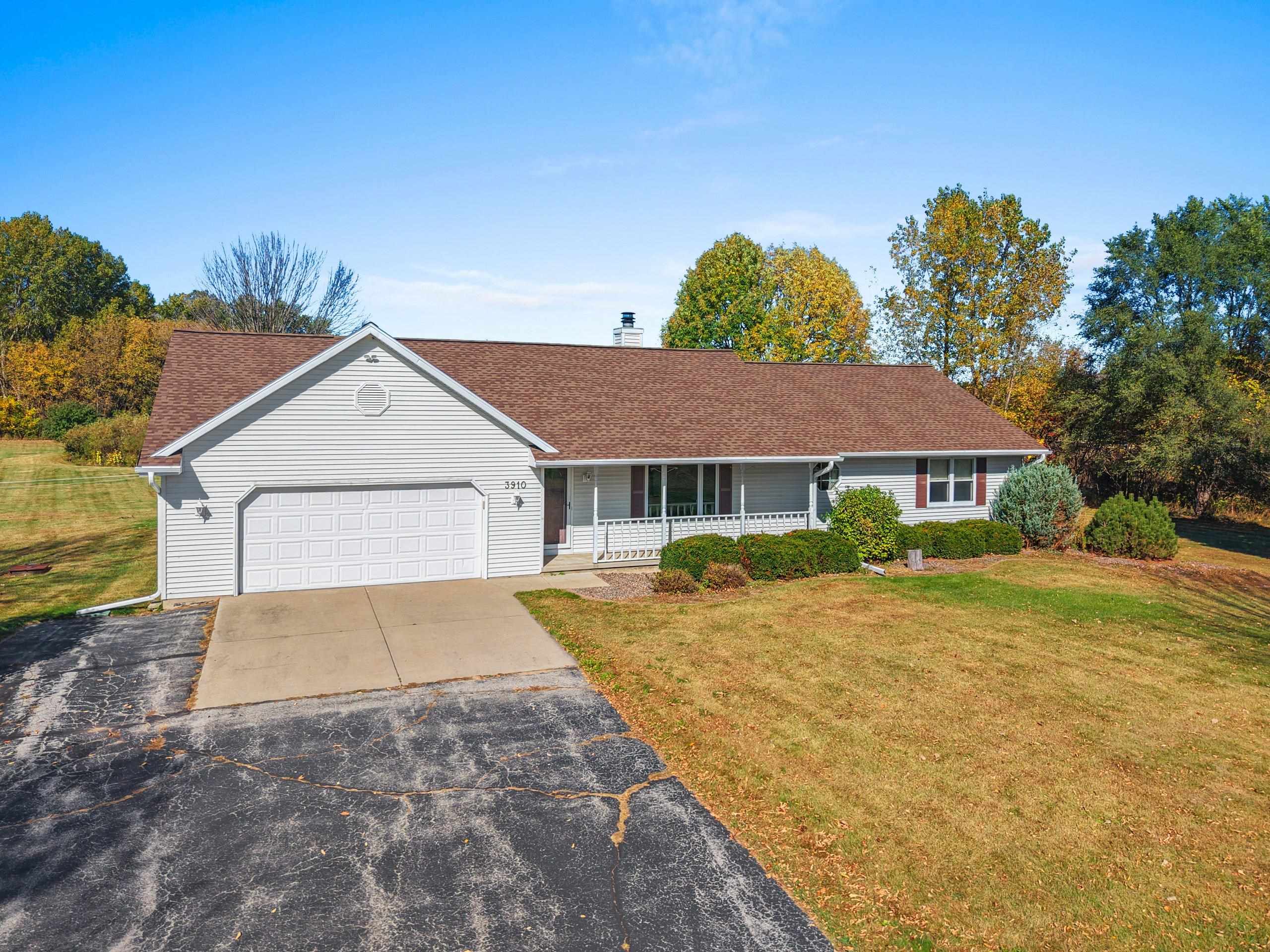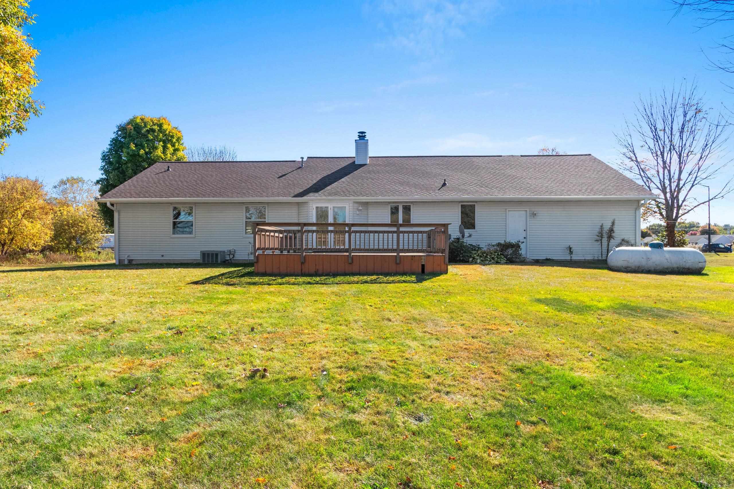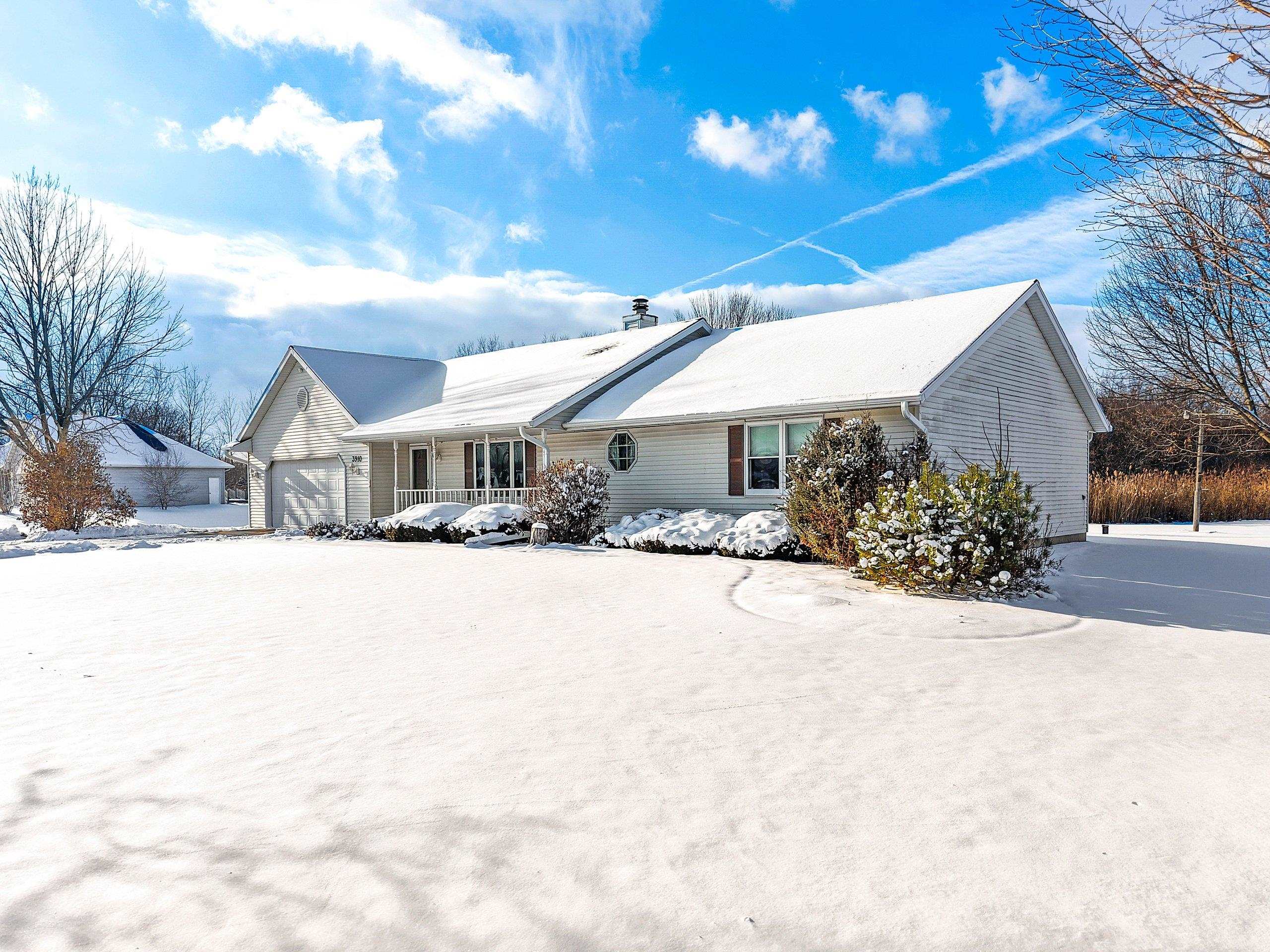 Custom-Built One-Owner Ranch on Nearly 2 Acres with Pond! Enjoy peaceful living in this beautifully maintained home featuring a cathedral ceiling between the kitchen and dinette, and a cozy two-way fireplace. The kitchen offers raised panel cabinets, a center island snack bar, and plenty of workspace. The spacious primary suite includes a walk-in closet and full bath. The professionally finished lower level is perfect for entertaining, with a large rec room, gas fireplace, bar area, and half bath. Convenient first-floor laundry. Recent updates include a new roof in 2023. A truly special property offering comfort, quality, and space inside and out.