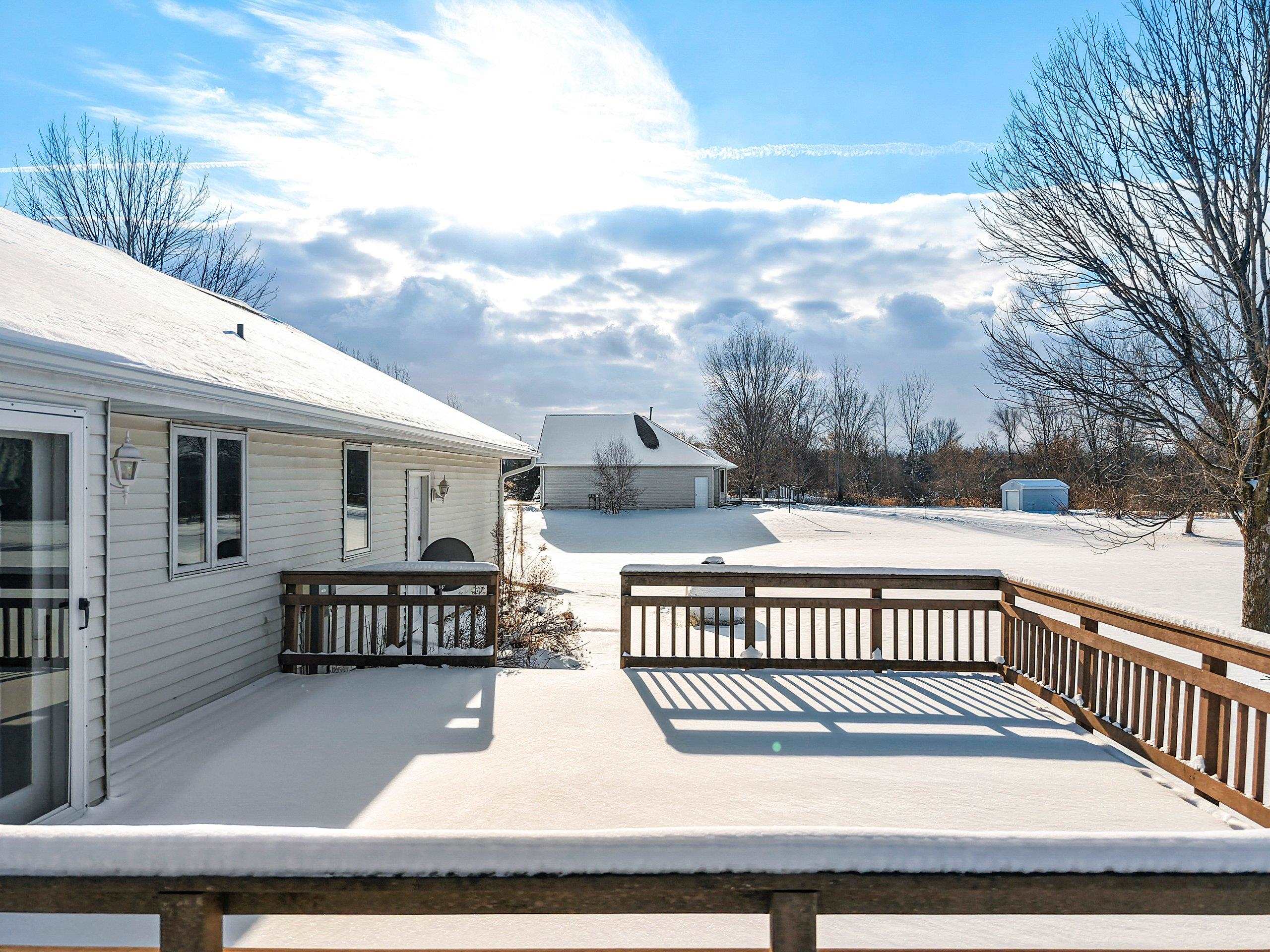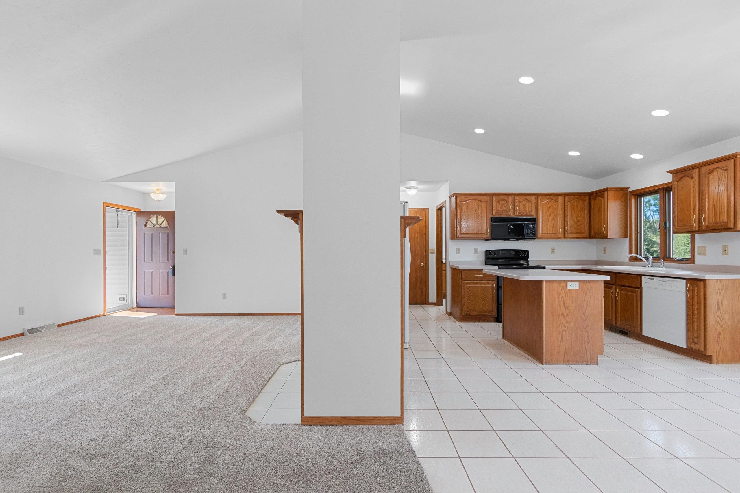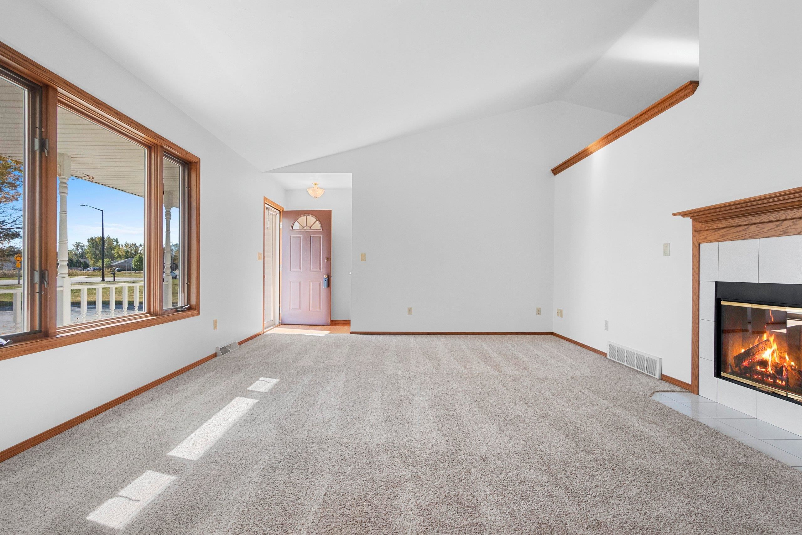 Custom-Built One-Owner Ranch on Nearly 2 Acres with Pond! Enjoy peaceful living in this beautifully maintained home featuring a cathedral ceiling between the kitchen and dinette, and a cozy two-way fireplace. The kitchen offers raised panel cabinets, a center island snack bar, and plenty of workspace. The spacious primary suite includes a walk-in closet and full bath. The professionally finished lower level is perfect for entertaining, with a large rec room, gas fireplace, bar area, and half bath. Convenient first-floor laundry. Recent updates include a new roof in 2023. A truly special property offering comfort, quality, and space inside and out.