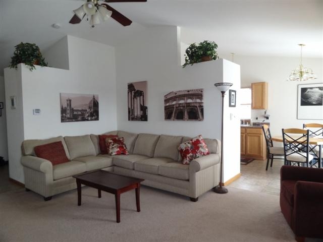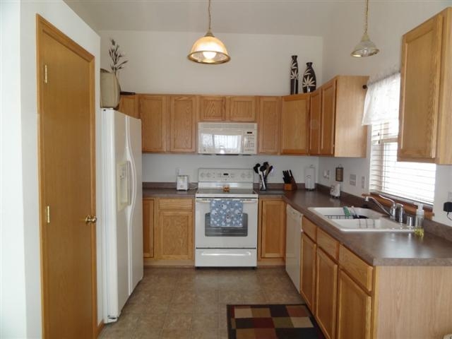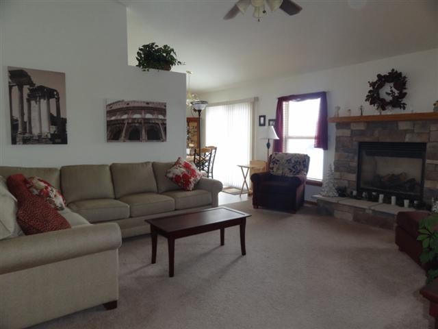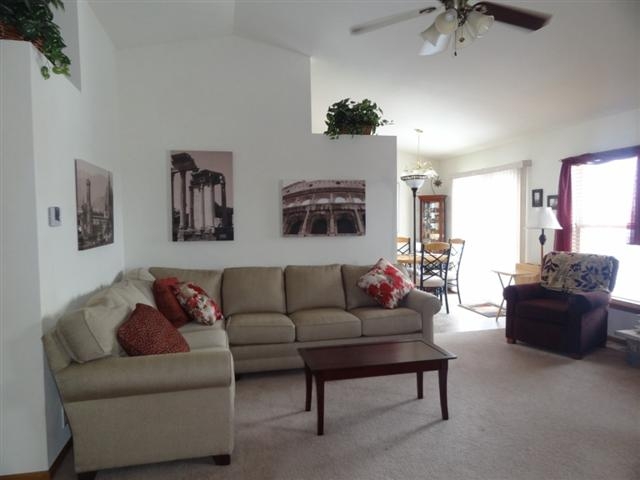 Like new home, but with all the extras like professional landscaping & appliances already in place for you! Great South side location making commuting very easy. The home features cathedral ceilings, main floor laundry right off the attached 2-car garage, gas fireplace & split bedroom design with a spacious master boasting a private full bath & walk-in closet. Both of the other bedrooms also have walk-in closets. Lower level can be finished for additional living space & is already plumbed for a bath.
