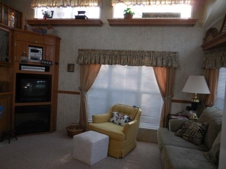 Best Deal in the Park! 2007 Park model with Fireplace, 2 sleeping lofts and large family room addition. Neutral color scheme - Clean & Bright! All furnishings and Full size appliances included plus golf cart, mower and motorcycle! Large exterior deck and private yard with storage shed. Enjoy all this beautifully maintained park has to offer - pools, tennis courts, fishing pond and MORE! Nothing to do but move in and ENJOY! ( 2nd & 3rd bedrooms are sleeping lofts)
