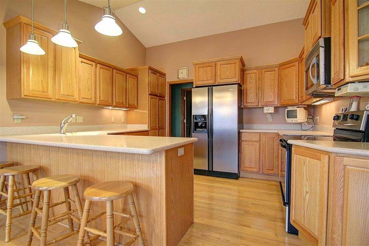 4 bdrm, 2 BA, 3+ car garage w/12ft door on 3rd stall on 1/2 acre lot. 6 panel doors, WB fireplace, vaulted ceiling & upgraded counters. Kitchen has abundant counter space & cabinetry, breakfast bar, Trillium counters, stainless appliances, crown molding & under cabinet lighting. Dining area w/patio doors leading to over sized deck w/hot tub & gazebo. Unfinished L/L has 9ft ceiling, radiant flr heating (not connected), full bath rough-in w/surround for 5ft shower included. VRP: $325,000-350,000.