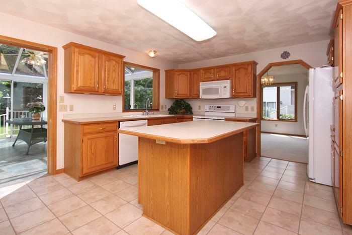You'll be impressed! SUN-FILLED 2-story home w/open floor plan+newer 4-season SUN ROOM/Observatory room! 3 large bedrooms, 2.5 baths, 1st floor laundry+2 1/2 car garage! Bright living room+huge 1st floor family room w/fireplace! Huge kitchen w/work island, breakfast bar, upscale appliances, dinette+formal dining room! Master suite w/walk-in closet, vaulted ceilings & private bath. NEW SIDING, NEW DOWNSPOUTS & NEW ROOF-2012. New front door & garage door! Seller to credit $2000 for carpet or closing costs.