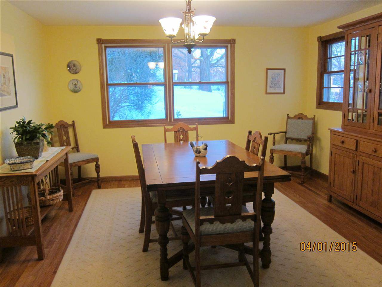 2.38 acres. Country in the city. Mature shade trees. 6 blks from schools. Huge deck w/6 person hot tub. 3.5 car garage, 2 storage sheds & playhouse. 3 bdrm, 2 ba. Open, airy layout w/lots of natural light. Main floor sunny eat-in kitchen w/maple cupboards, formal dining room, living room, 4 season sun porch, office & family room w/a romantic fireplace. 1st floor laundry & bath. Oak floor in kitchen & dining room. Great views. New roof '98/'13, furnace '07, hot water heater '13. UHP included.