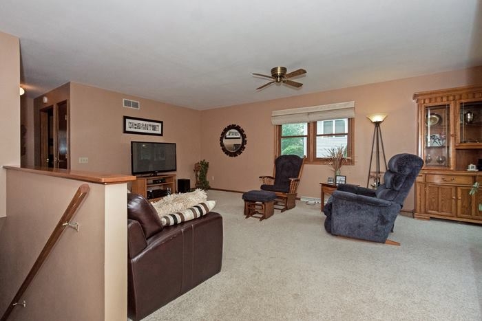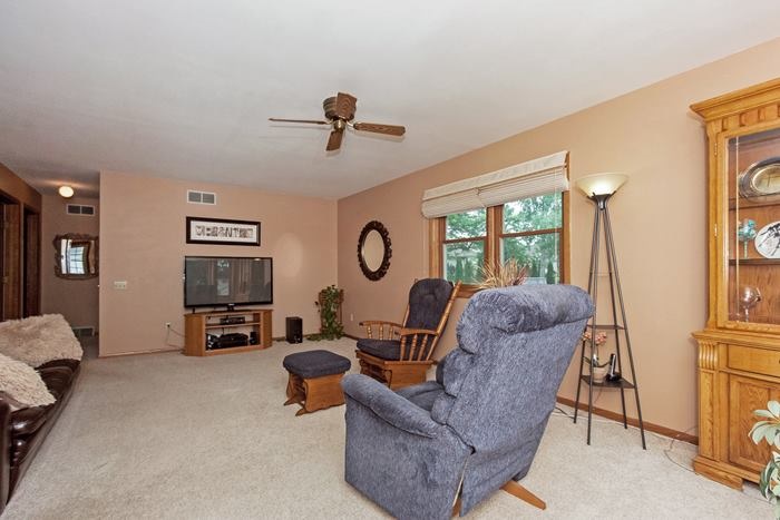 WELCOME HOME! 3 bedroom & 3 bath ranch home backing park! Large living room + family room in lower level! Bright kitchen & dinette w/tile floors! Master bedroom w/private bathroom. All new windows-2011, new furnace-2011, central air-2008, roof-2006, water heater-2013 & water softener-2008! 2 car attached garage w/new door-2011! Deck in fenced backyard overlooking park! Walking distance to school!