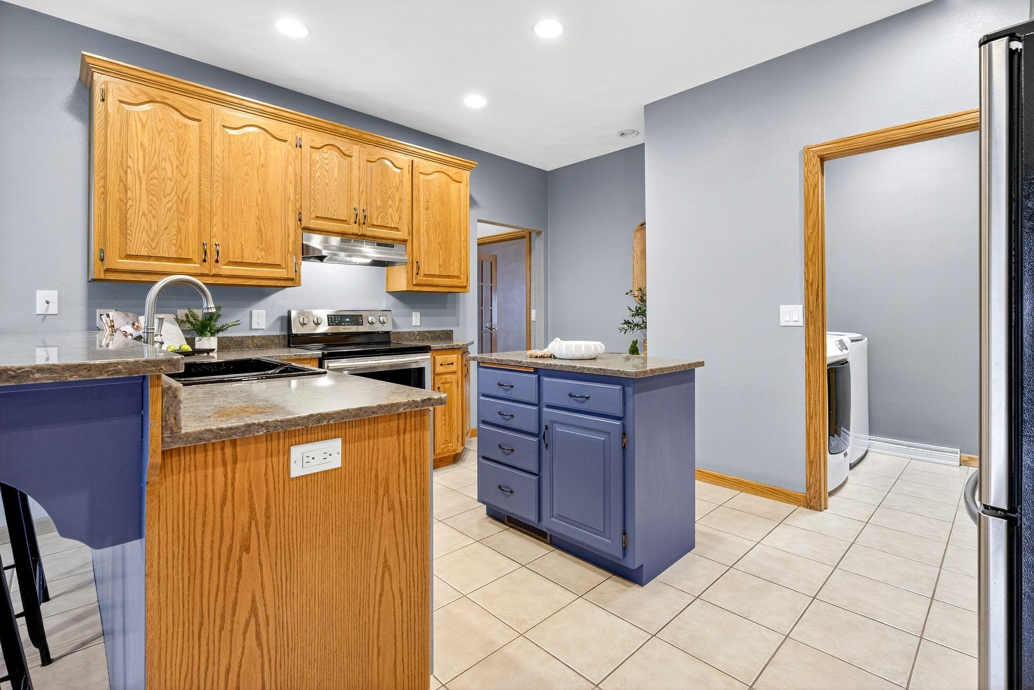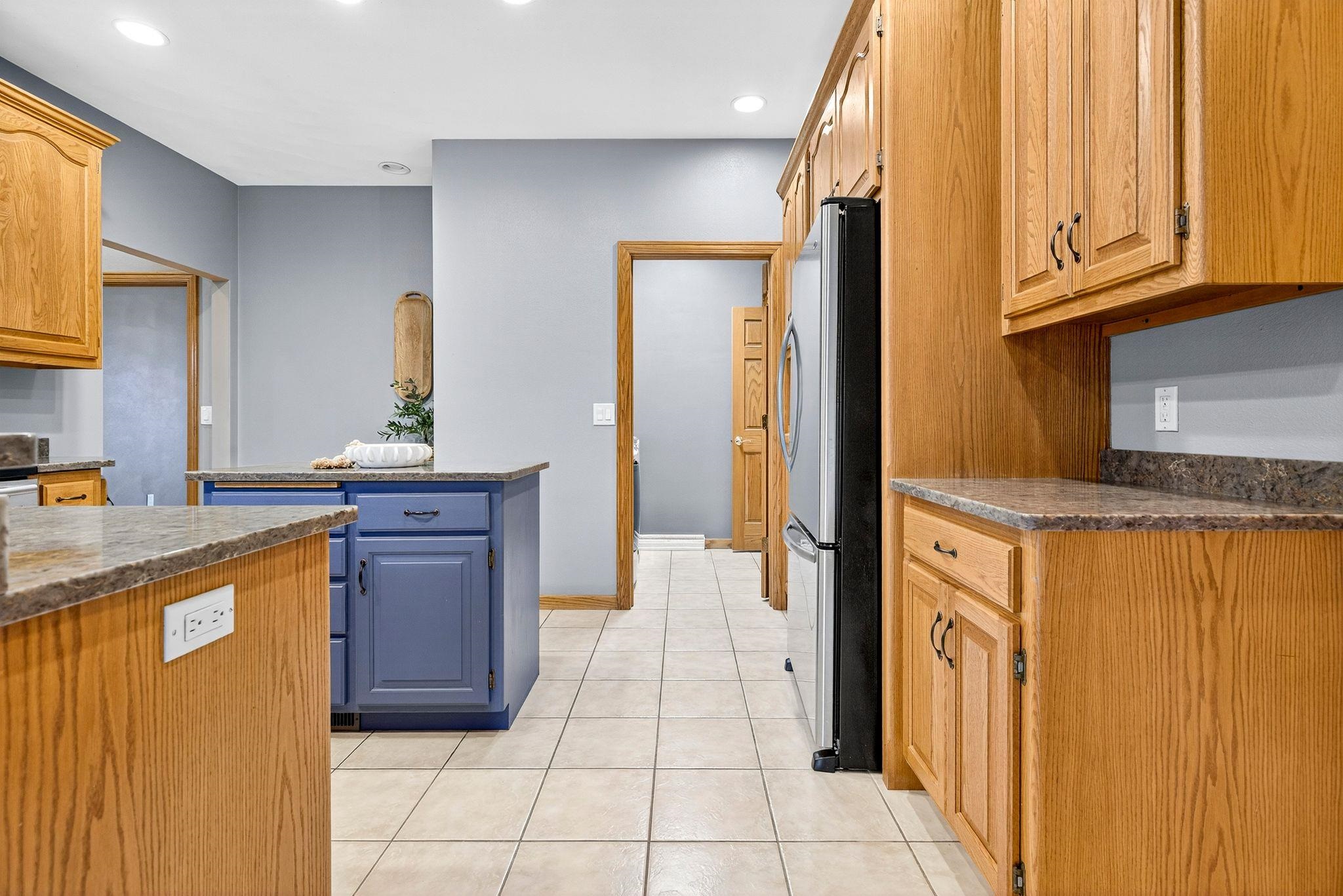 Rare opportunity to own this executive-style, king-sized ranch in the sought-after Janet Berry School District! This move-in ready home is meticulously maintained and offers three bedrooms, an office, and a versatile upper-level bonus room for a bedroom, playroom, or office. The open-concept kitchen showcases quartz countertops, sleek cabinetry, and newer appliances, flowing into expansive living areas with a cozy gas fireplace. A spacious lower-level rec room is designed for entertaining, while updated mechanicals provide peace of mind. The oversized 3.5-car garage with epoxy floors adds function and style. Outdoors, enjoy a fully fenced-in yard with room for relaxation, play, or pets. Excellent location near restaurants, parks, schools, and shopping!