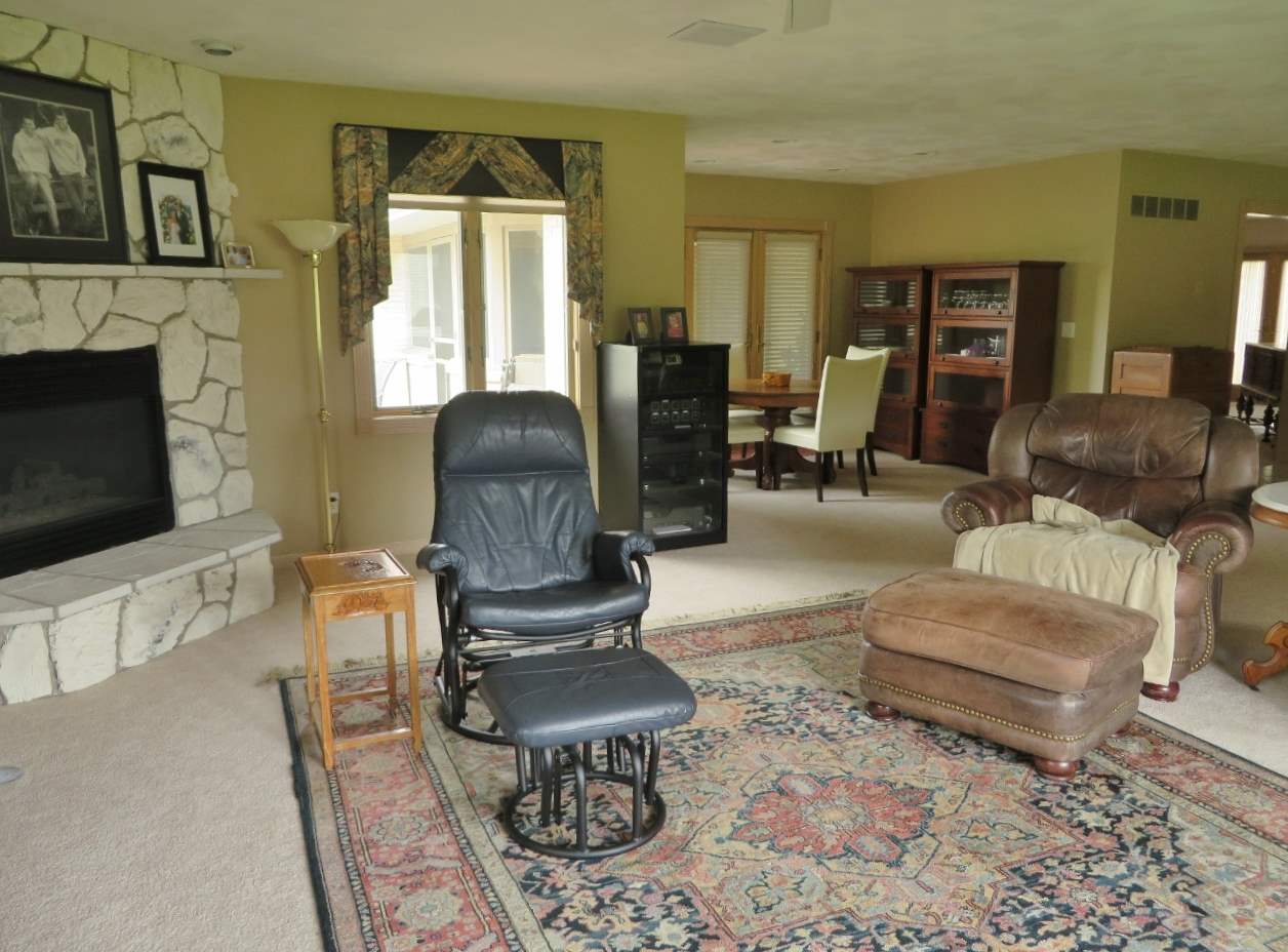 All brick 3 bedroom, 3 bath ranch on Greenbelt lot! Living-dining combo, large family room w/gas FP open to the large kitchen w/island, breakfast nook, pantry & SS counters. Living/family/master all have access to 3-season room. Master suite w/huge master bath, WIC & adjoining nursery/office. Central vac, 3-zoned heating/cooling. Elevator & garage access to LL. 3-car garage finished & hot/cold water. LL rec room & 3/4 bath. Tile in entry/hall/kitchen/laundry/baths. Irrigation. Surround sound. Newer roof.