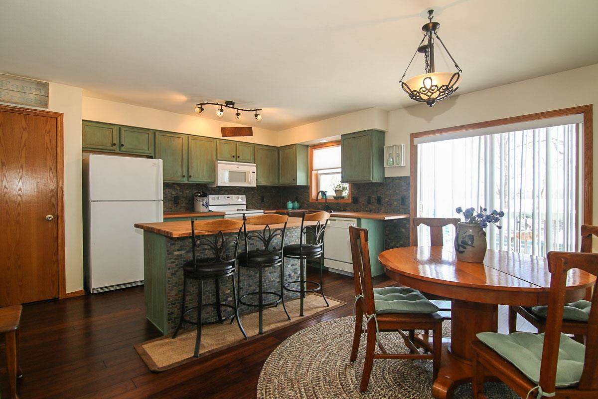 3 BED/2 BATH SHOWPLACE! Custom Painted Great Room w/vaulted ceilings and skylights- Kitchen w/new butcher blk counters, Copper Farmer's Sink, Chalk-Painted Cabinets, Extended Kitchen Island w/slate & Slate backsplash. Dining area w/patio door to deck overlooking beautifully landscaped yard with fabulous views! Master Bed w/Walk-In closet & freshly pntd. bedrooms! New flooring throughout. Spacious, Versatile lower level w/family room, bedroom, 2nd full bath-lg laundry w/loads of storage.