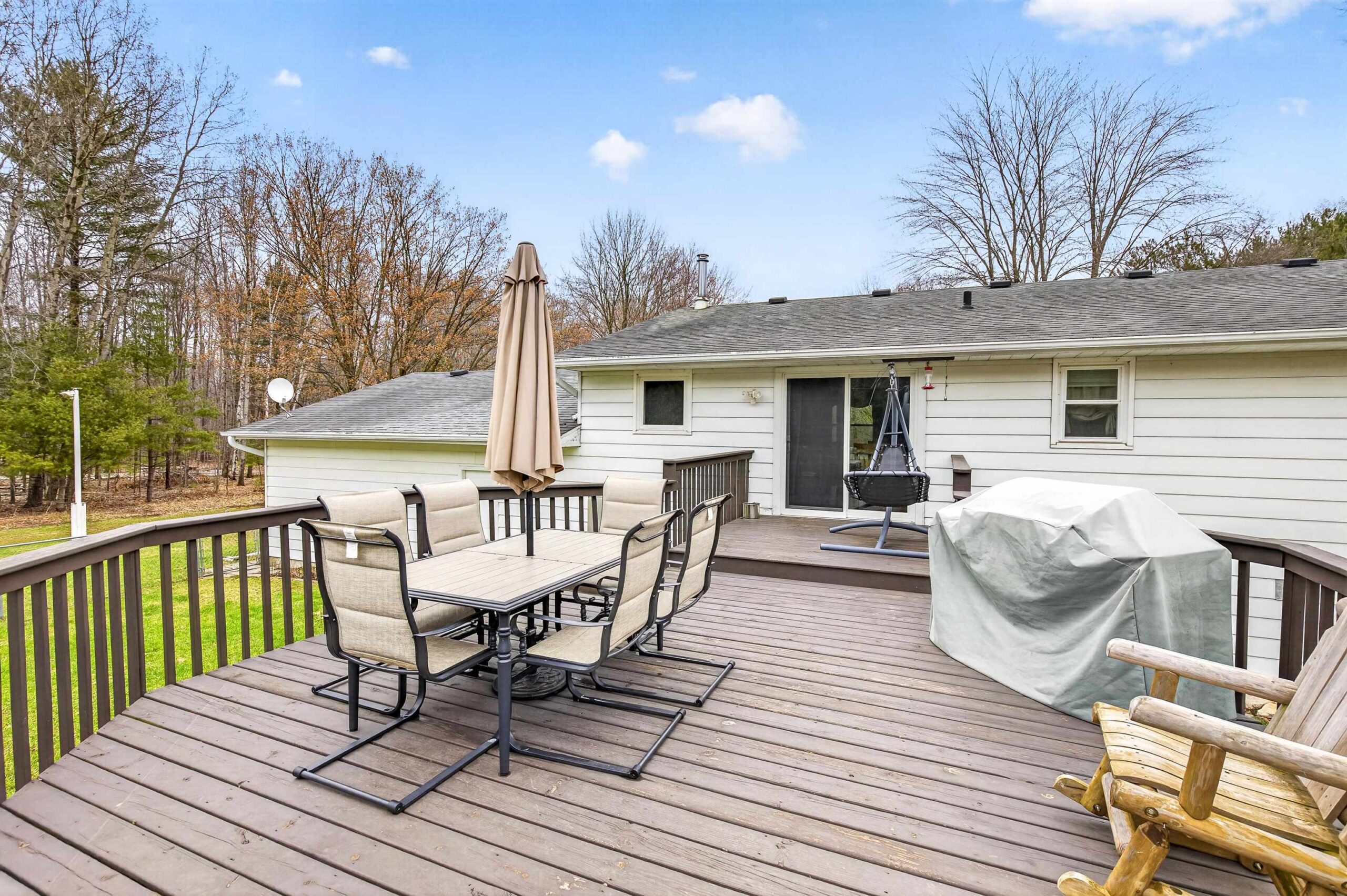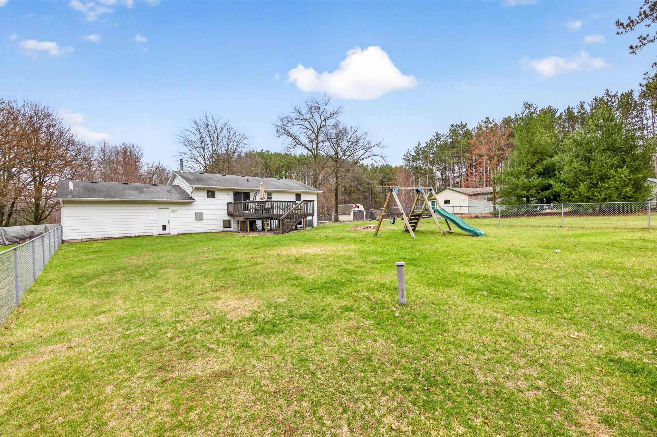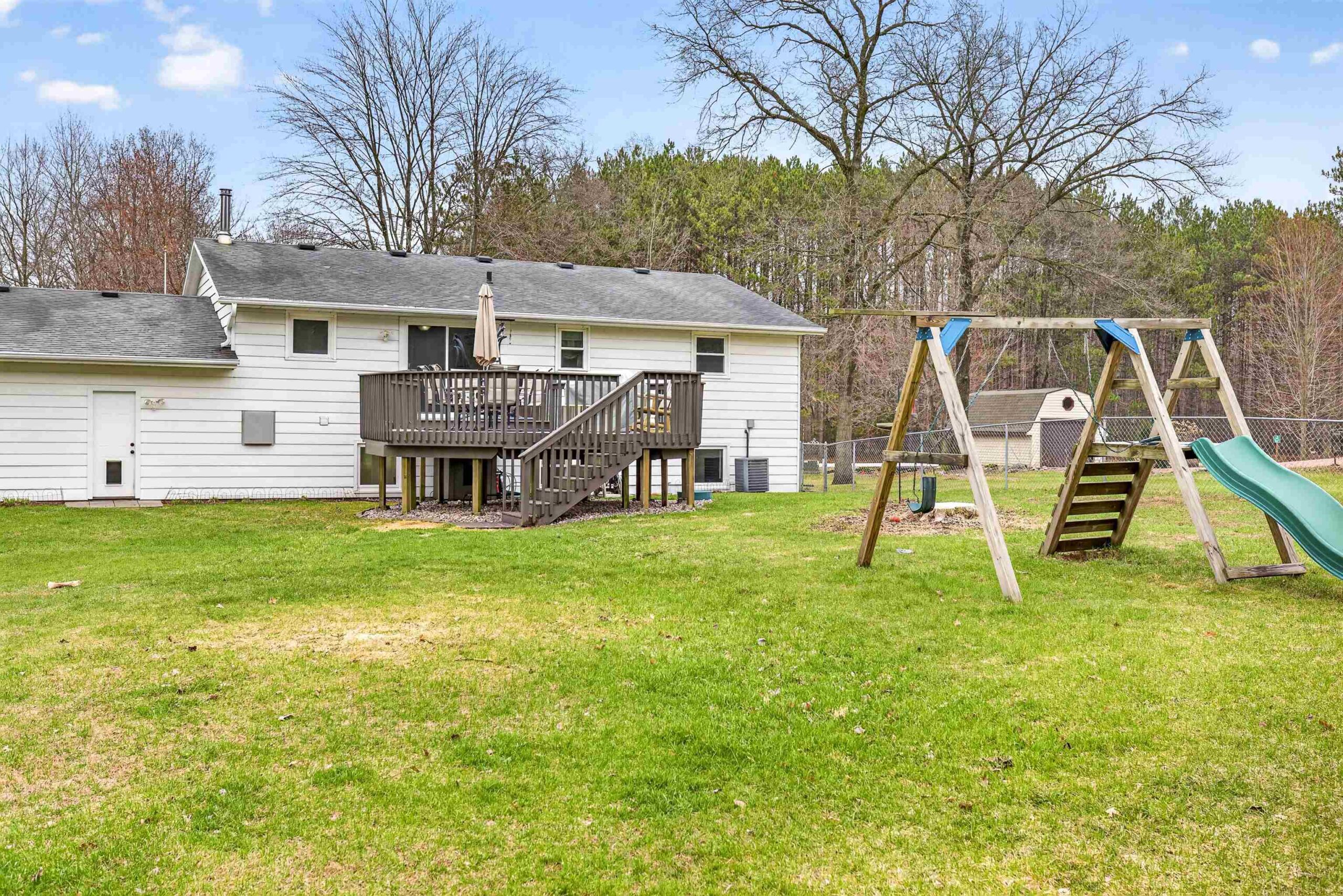 Nestled on a generous 1.03-acre lot in the serene Village of Suamico, this charming bi-level home offers thoughtfully designed living space, featuring 4 bedrooms and 2 full baths. Step inside to discover a warm and inviting interior with a finished lower level, complete with a cozy wood-burning fireplace and a versatile den or office space—perfect for work or relaxation. The upper level boasts a well-appointed kitchen with a snack counter island, ideal for casual meals or entertaining. Outside, enjoy a fenced backyard and a spacious deck overlooking the lush, landscaped grounds—an ideal setting for gatherings or peaceful solitude. Located in a quiet, family-friendly neighborhood, this property offers easy access to Green Bay, nearby schools, and local amenities.