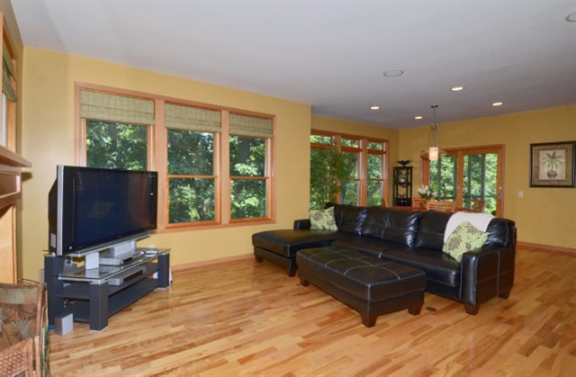 Secluded, inviting, tranquil - all describe this lovely condo nestled against conservancy land & miles of walking trails! Open floor plan w/hardwd floors, large windows, screen porch, main level master suite w/shower & separate soaking tub, dbl vanities & huge walk-in closet; main level laundry. Walk-out lower level w/family room, large bdrm & bath. 2 fireplaces, built-in audio, 2-car garage. Great location - walk to coffee, library, restaurants & Farmer's Market! 1-yr warranty for peace of mind!