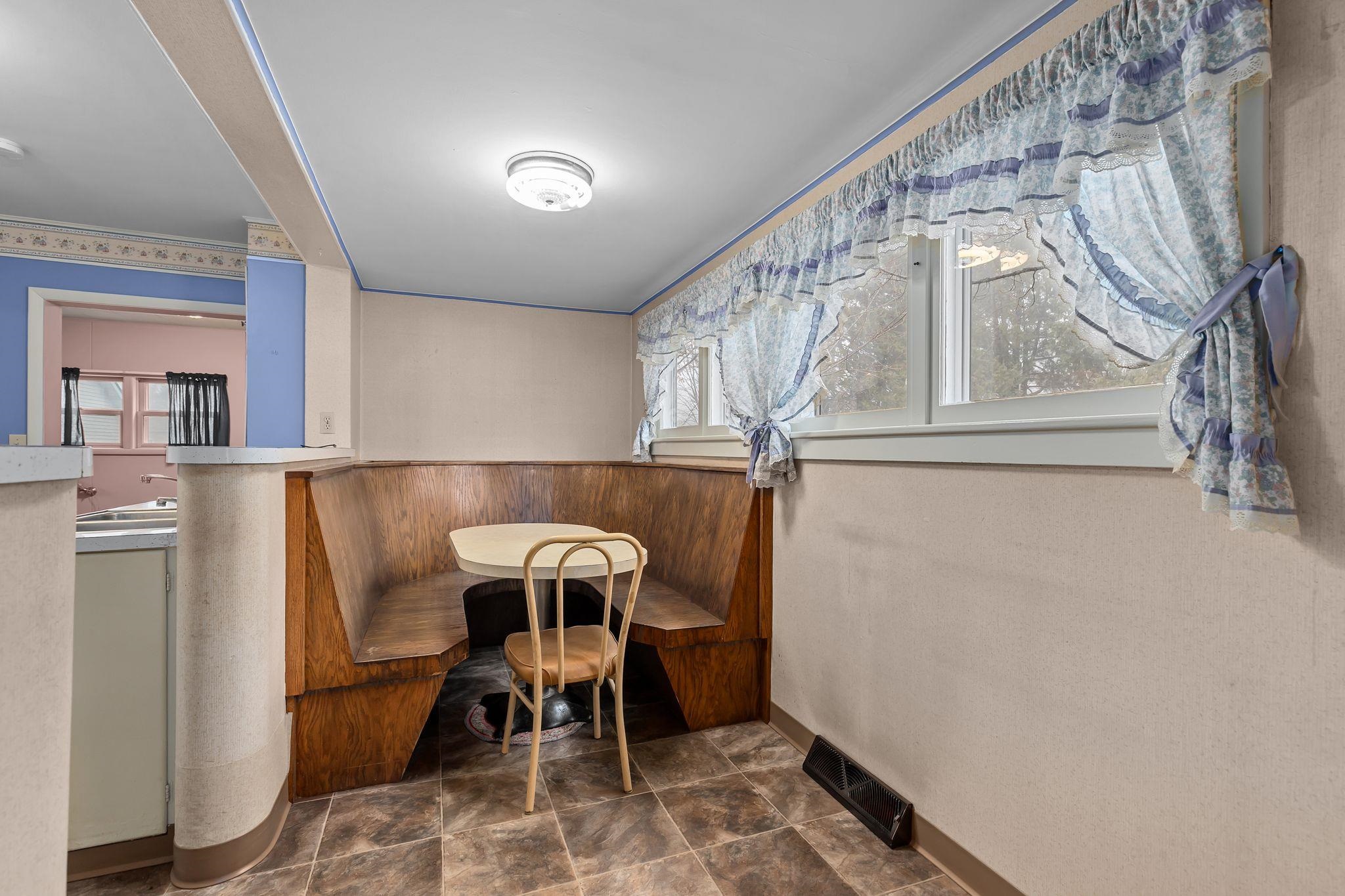 Welcome to this well maintained home brimming with character and charm. Located near downtown and schools this home is perfectly situated in peaceful Iola. The home offers a variety of spaces and plenty of storage. Main level features a cozy kitchen where you can enjoy meals from the build in banquette. A spacious dining room with build in cabinetry, both a living and family room and a 3 seasons room. Full bathroom located on main level along with main floor laundry featuring a walk-in shower. 2 bedrooms located upstairs with a 1/2ba and large open landing area. The large lot offers plenty of room for outdoor activities along with a nice 24x28 garage with bonus trusses for additional storage. Blacktop driveway and standing seam steel roof. Property sold as-is