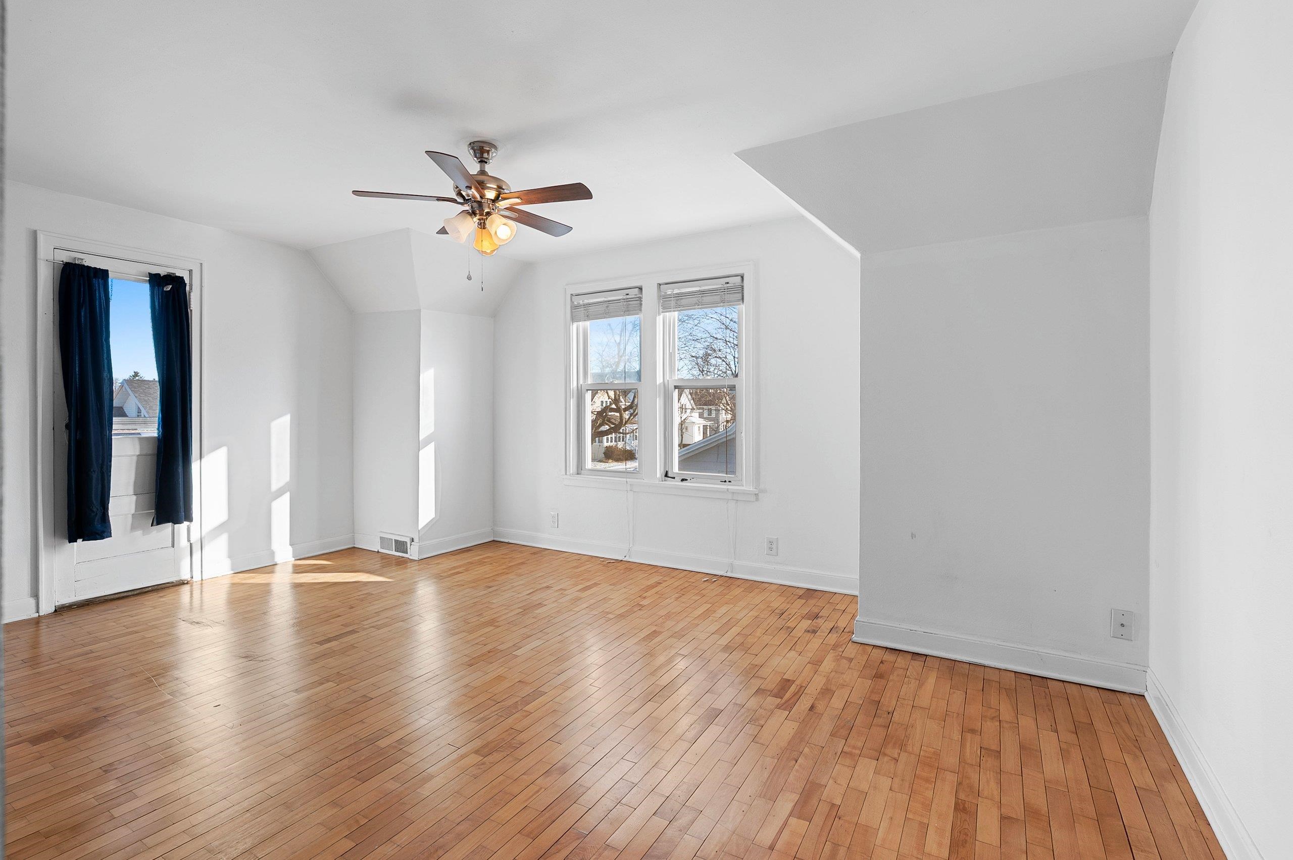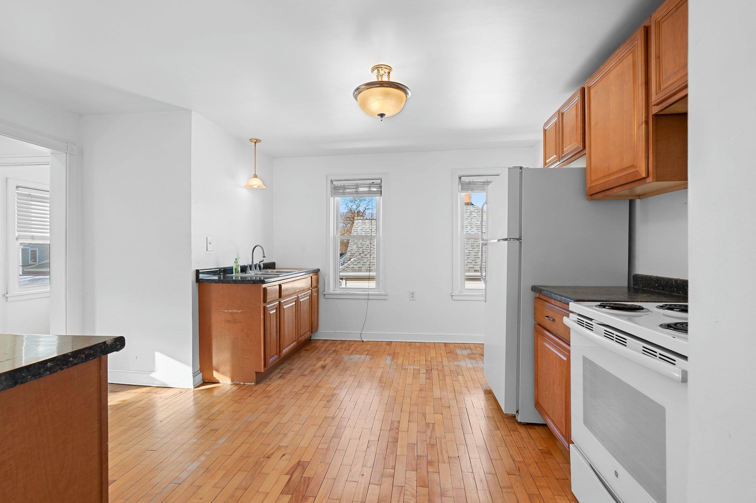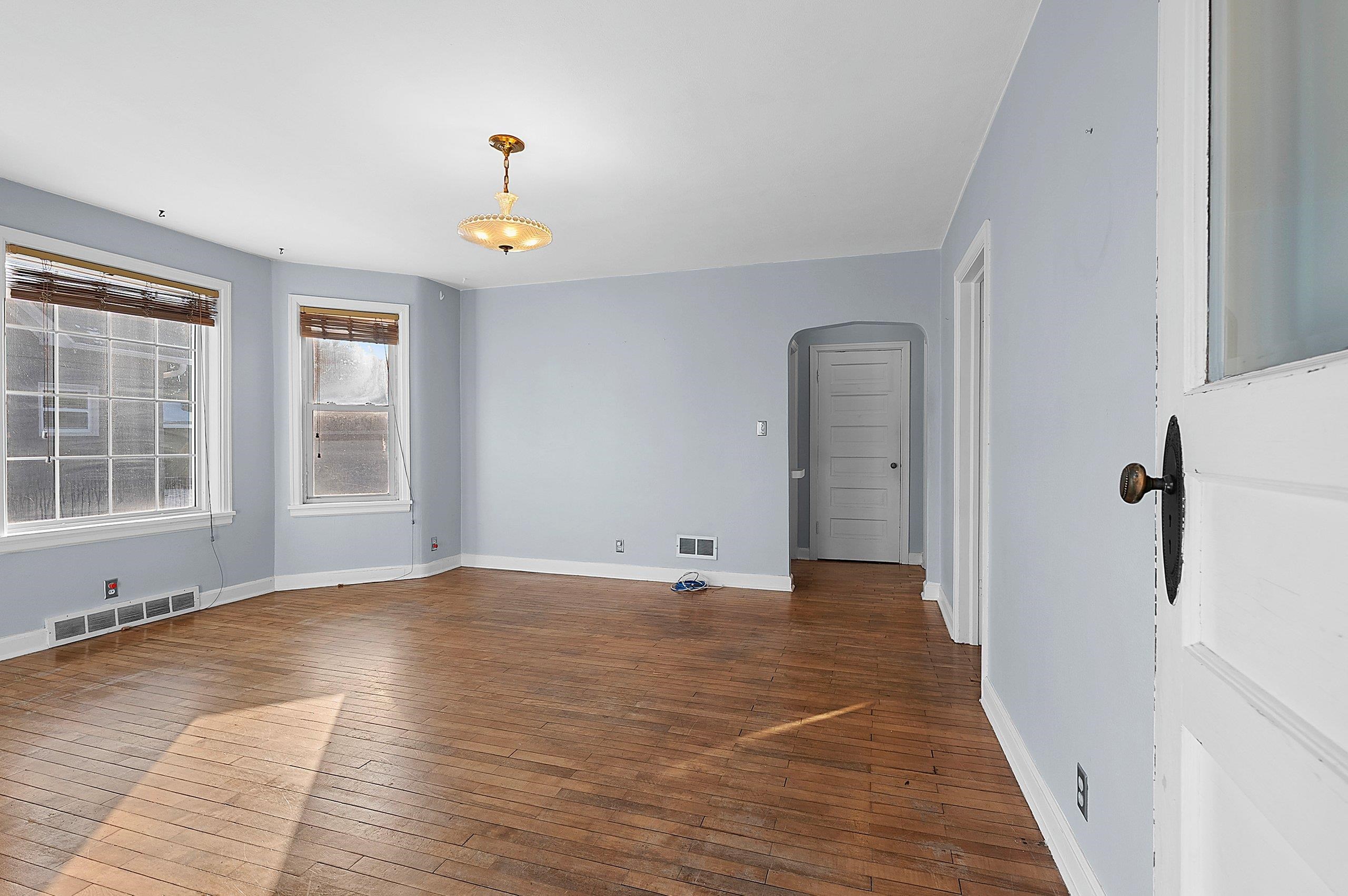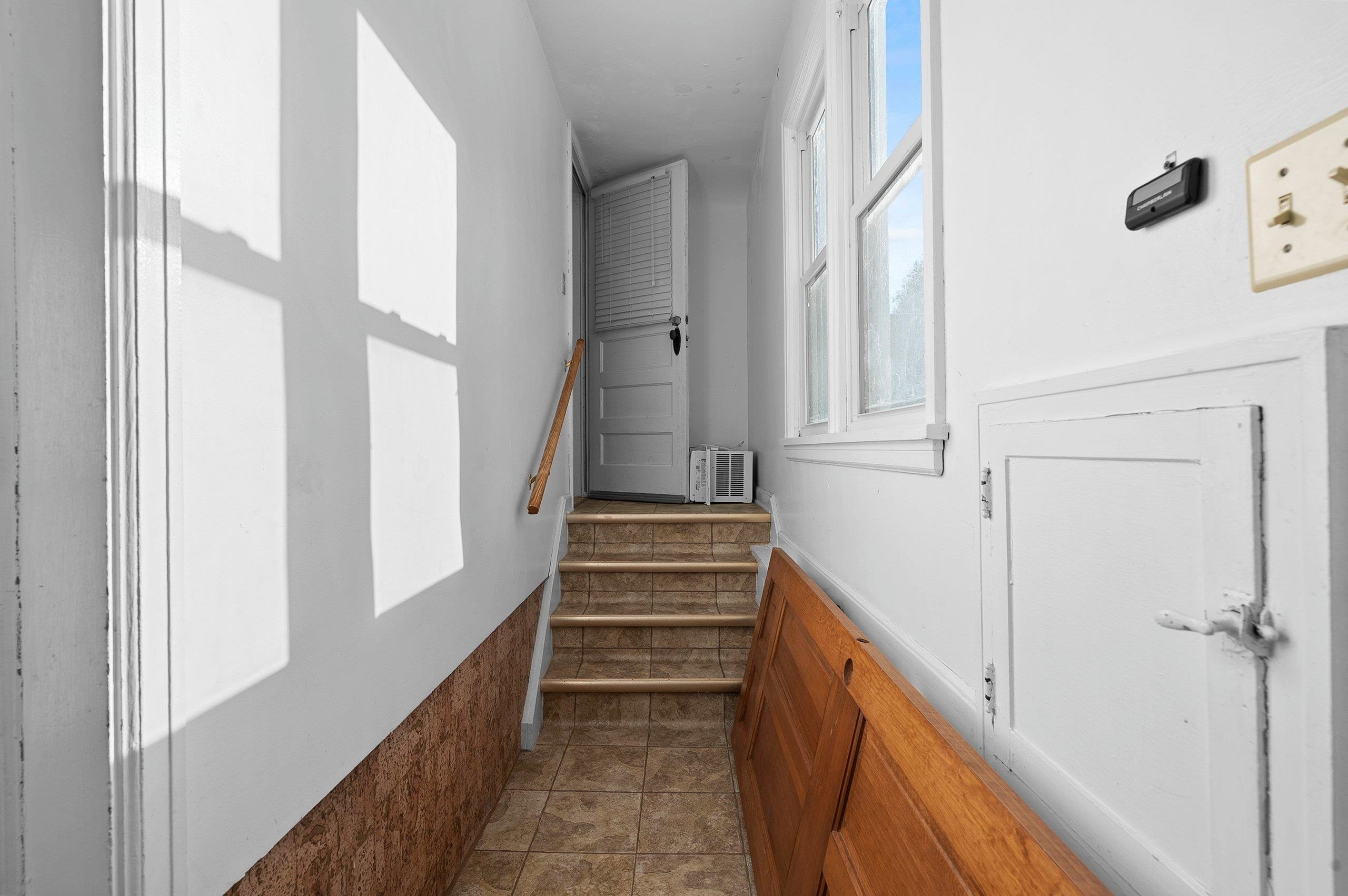 Opportunity for owner-occupants or investors alike. This upper/lower duplex offers two spacious 2-bed, 1-bath units featuring hardwood floors and original character throughout. Each unit has its own private entrance, plus a shared entry that provides access to the basement/lower level. An enclosed interior stairway leads to the upper unit for added convenience and privacy. A 3-car garage offers excellent storage and parking, with additional driveway parking available. Siding = painted "slate" asbestos.