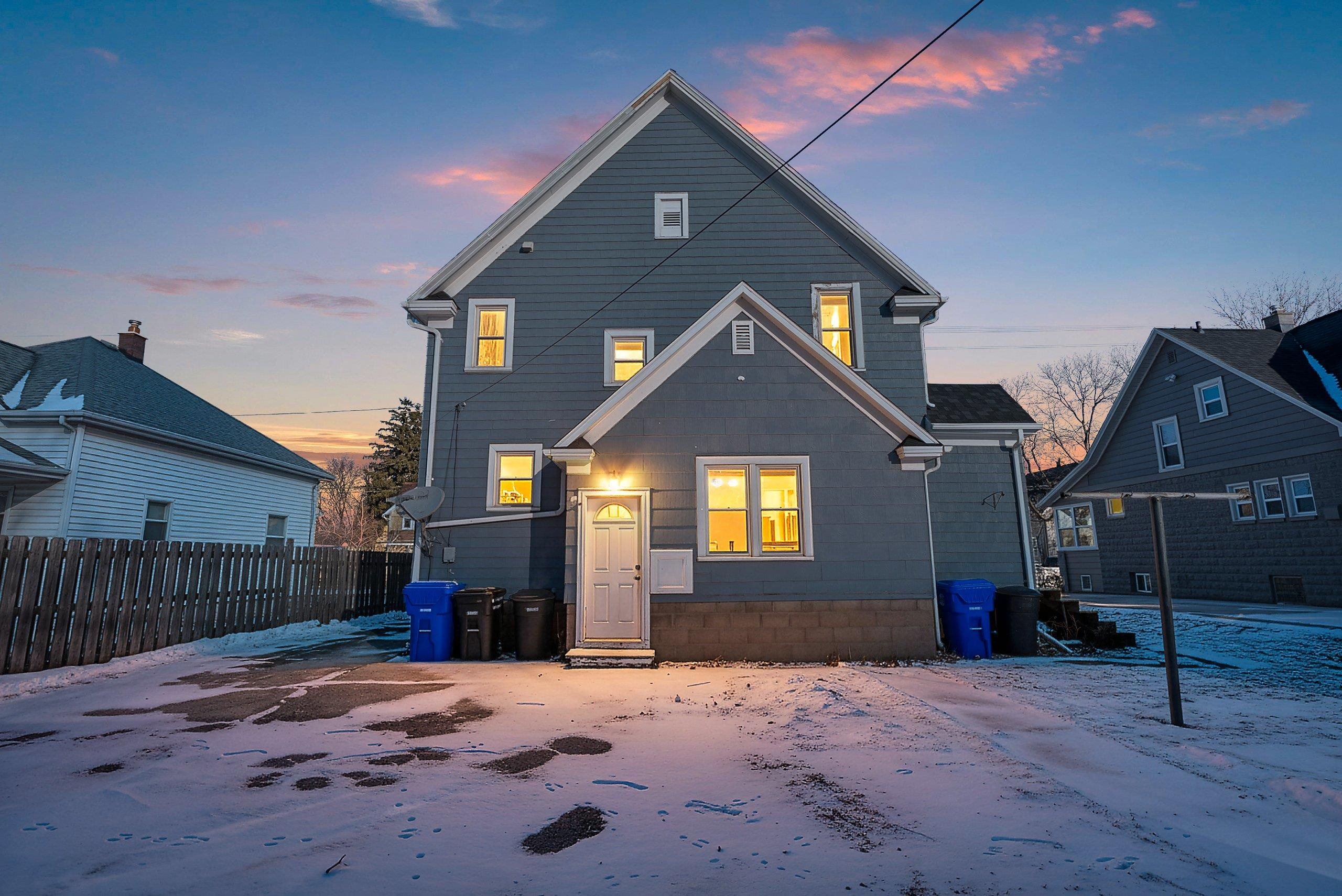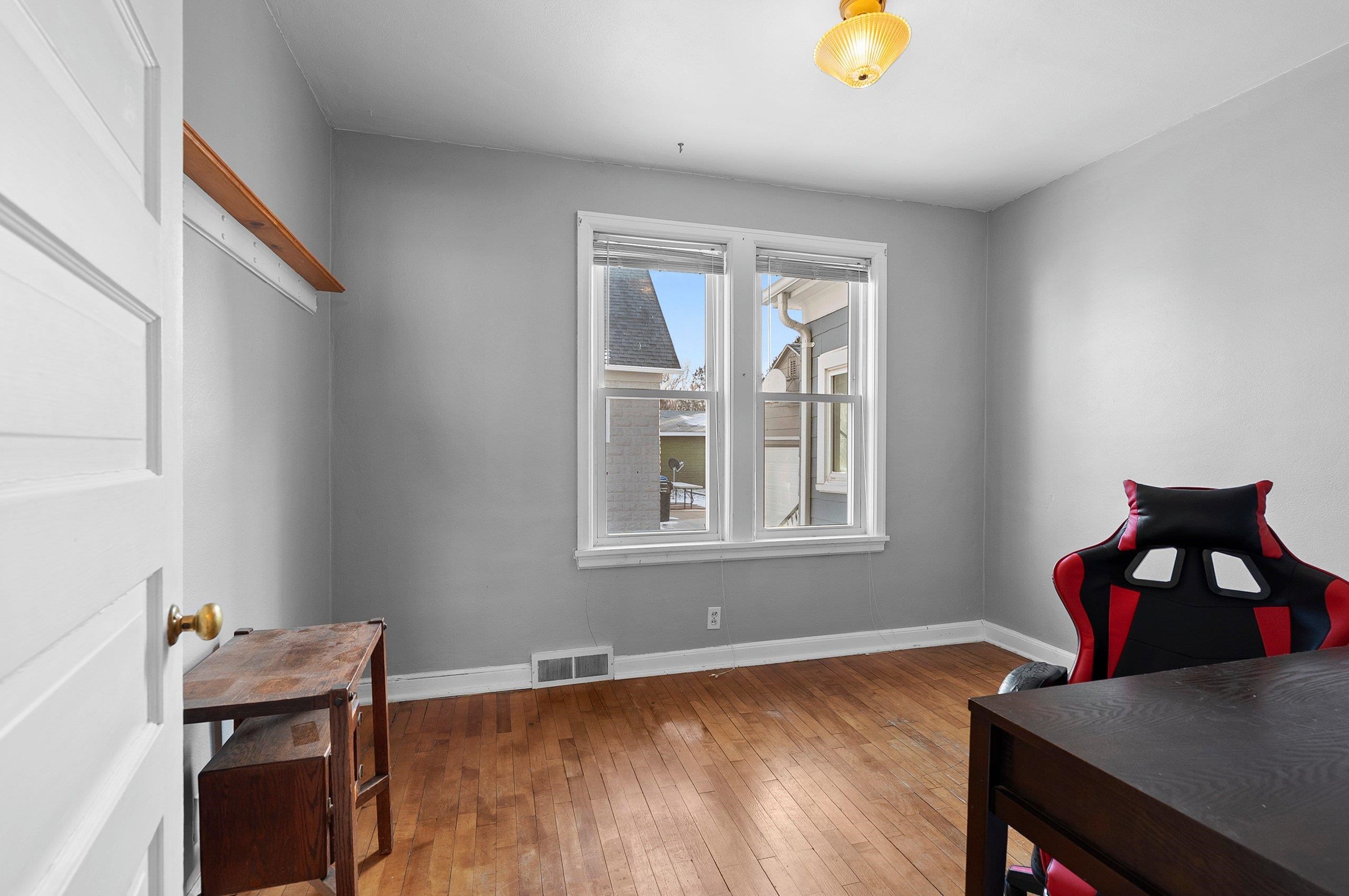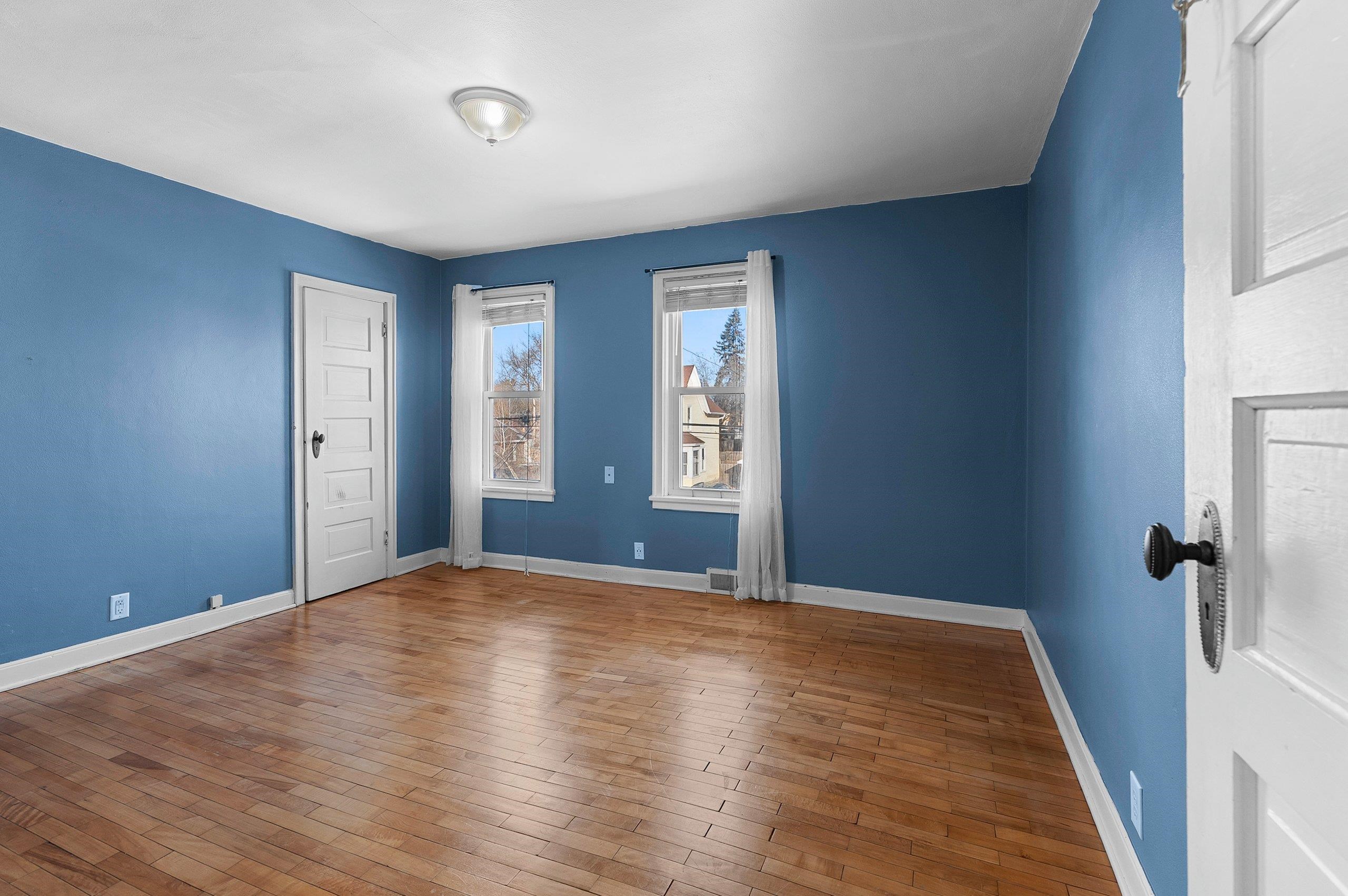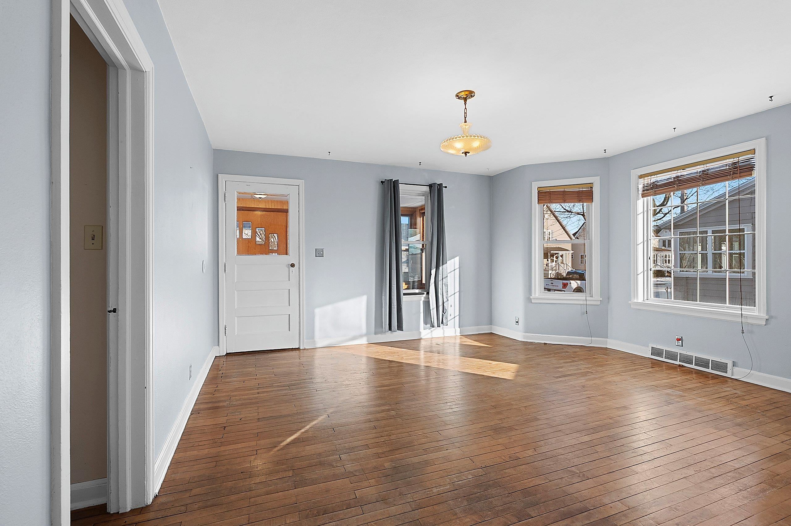 Opportunity for owner-occupants or investors alike. This upper/lower duplex offers two spacious 2-bed, 1-bath units featuring hardwood floors and original character throughout. Each unit has its own private entrance, plus a shared entry that provides access to the basement/lower level. An enclosed interior stairway leads to the upper unit for added convenience and privacy. A 3-car garage offers excellent storage and parking, with additional driveway parking available. Siding = painted "slate" asbestos.